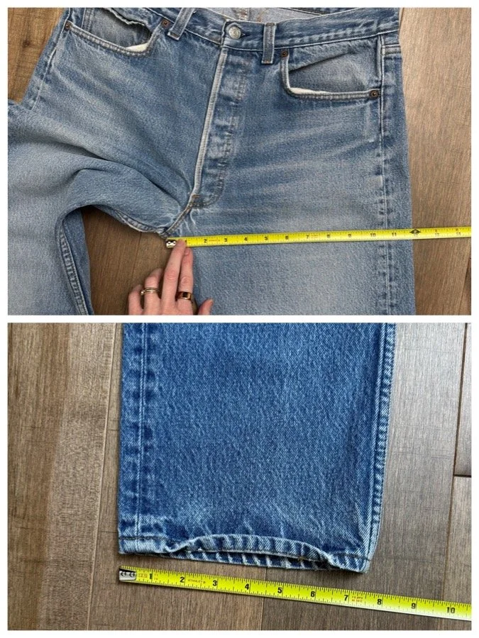 Sold as is. Keep in mind, vintage jeans are not new jeans. Every pair is at least 20 years old, most are older. This means they’ve been worn and likely have signs of wear - i.e. thinning areas, loose threads, signs of previous repair work, discolorations, faint (or not so faint stains), organic distressing, wear at the rivets, wear at the button holes. I do my best to describe these areas/signs of wear&tear, so please - before you buy - understand that you may receive your jeans and there will be signs of aging. Most buy vintage jeans wanting this, but if you want pristine new looking jeans, vintage likely isn’t for you. And that’s A-OK! Also note, the word “vintage” is not synonymous with super worn & faded. Vintage means over 20 years old. An item can be both vintage and still be new or like new condition.