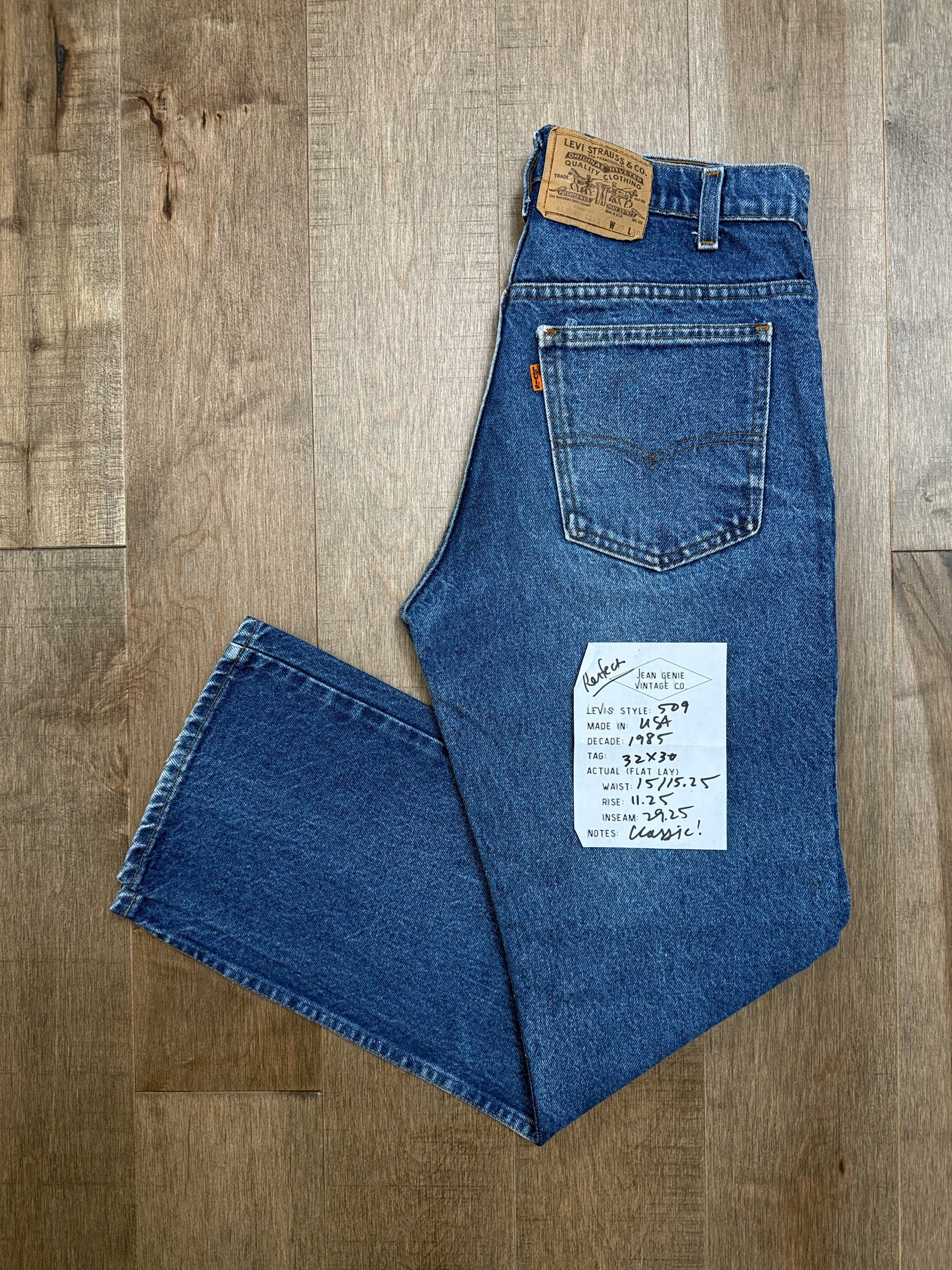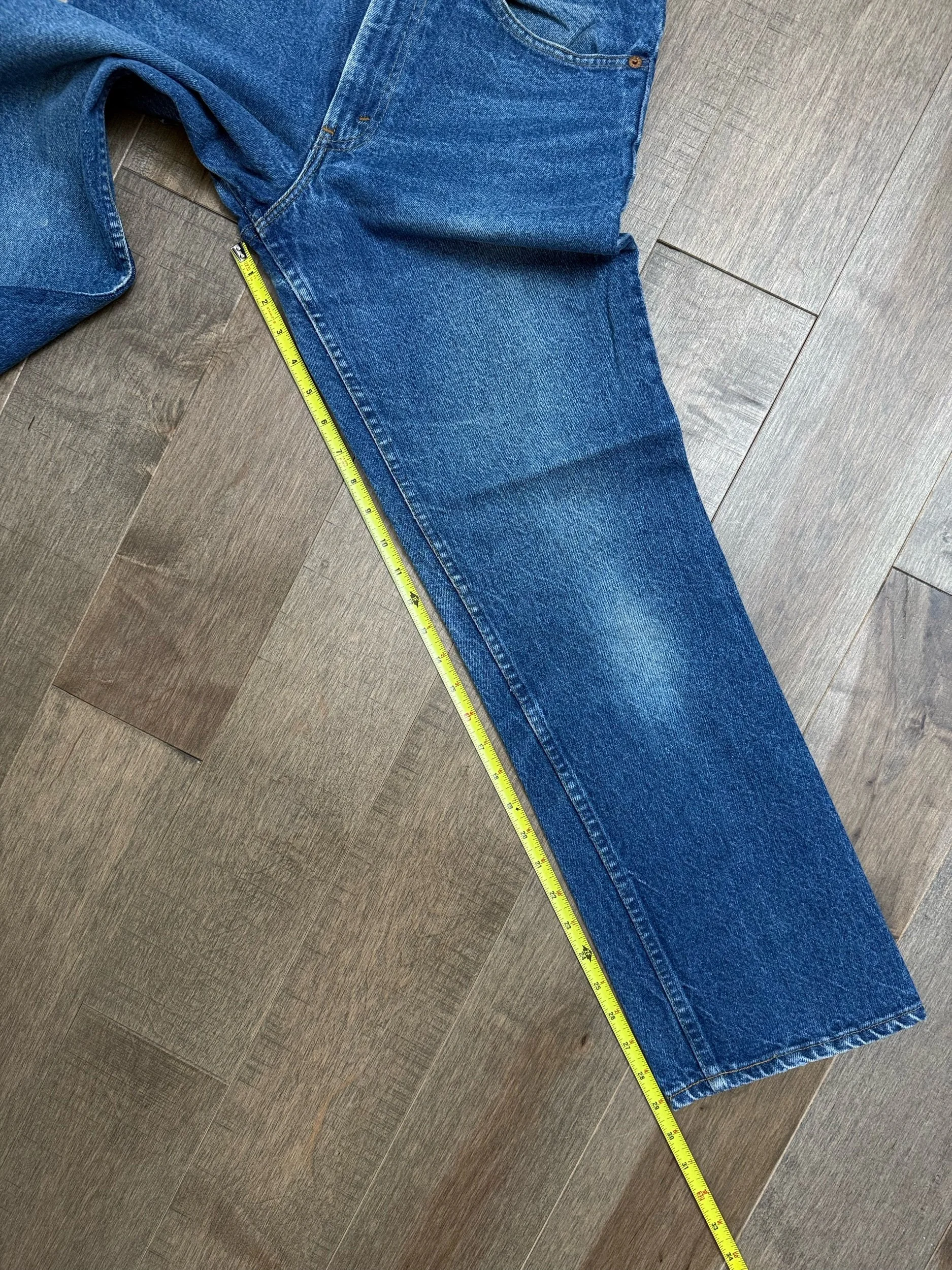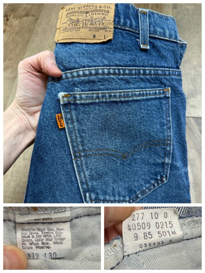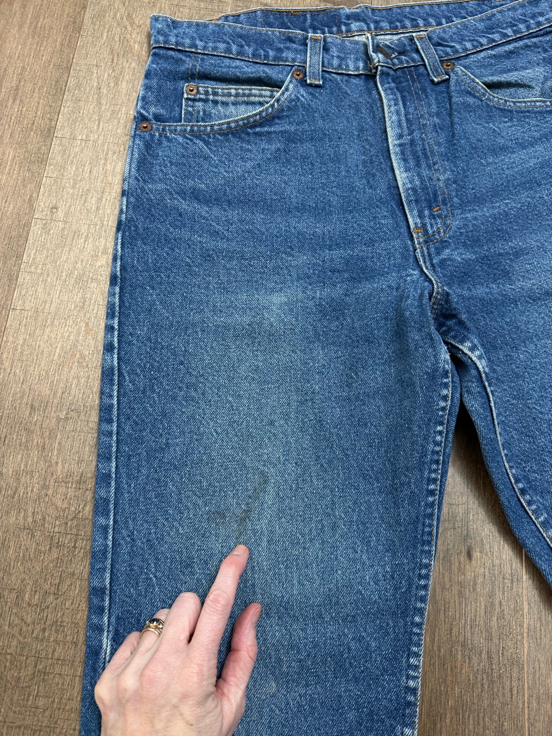 Keep in mind, vintage jeans are not new jeans. Every pair is at least 20 years old, most are older. This means they’ve been worn and likely have signs of wear - i.e. thinning areas, loose threads, signs of previous repair work, discolorations, faint (or not so faint stains), organic distressing, wear at the rivets, wear at the button holes. I do my best to describe these areas/signs of wear&tear, so please - before you buy - understand that you may receive your jeans and there will be signs of aging. Most buy vintage jeans wanting this, but if you want pristine new looking jeans, vintage likely isn’t for you. And that’s A-OK! Also note, the word “vintage” is not synonymous with super worn & faded. Vintage means over 20 years old. An item can be both vintage and still be new or like new condition.