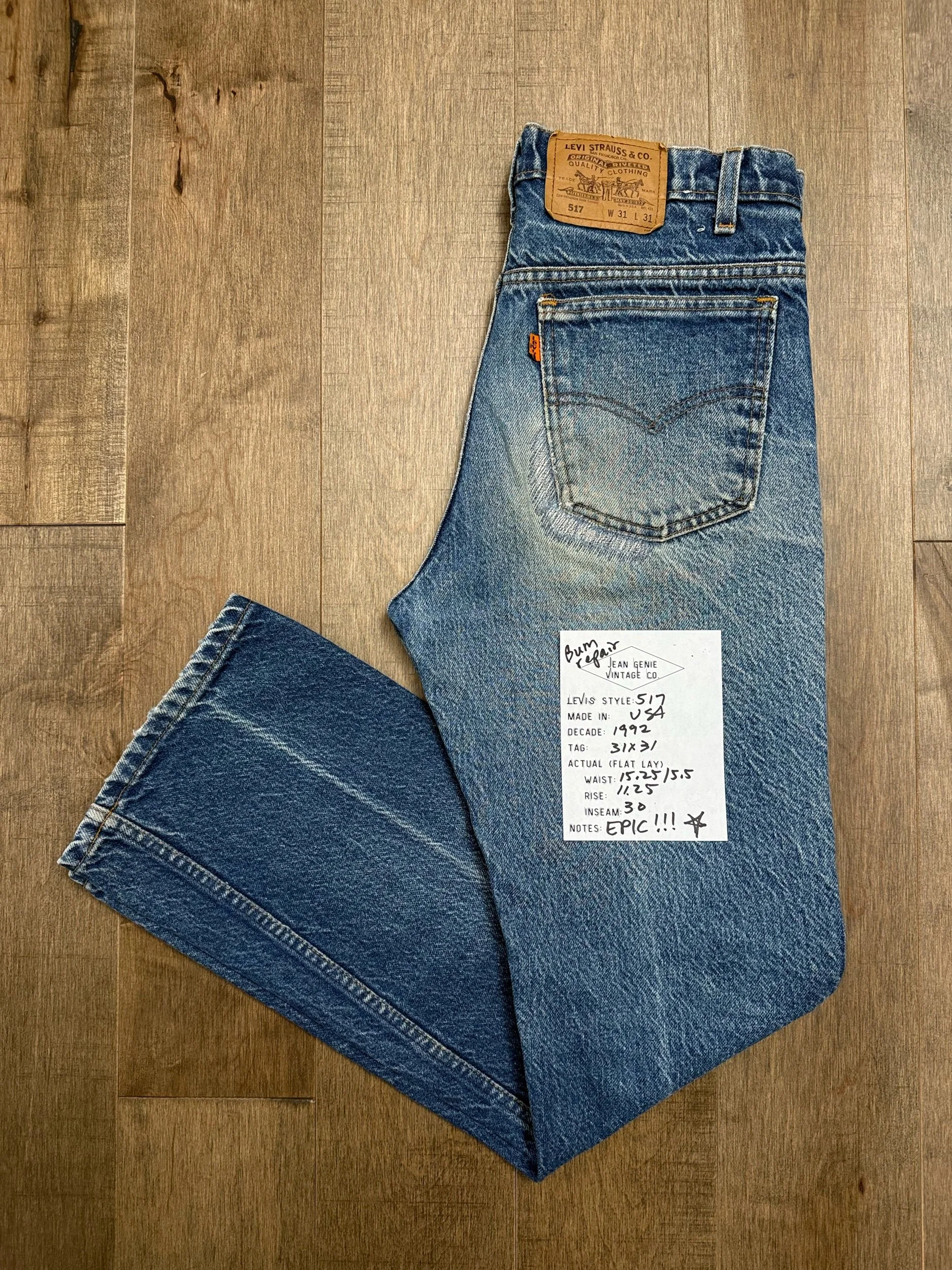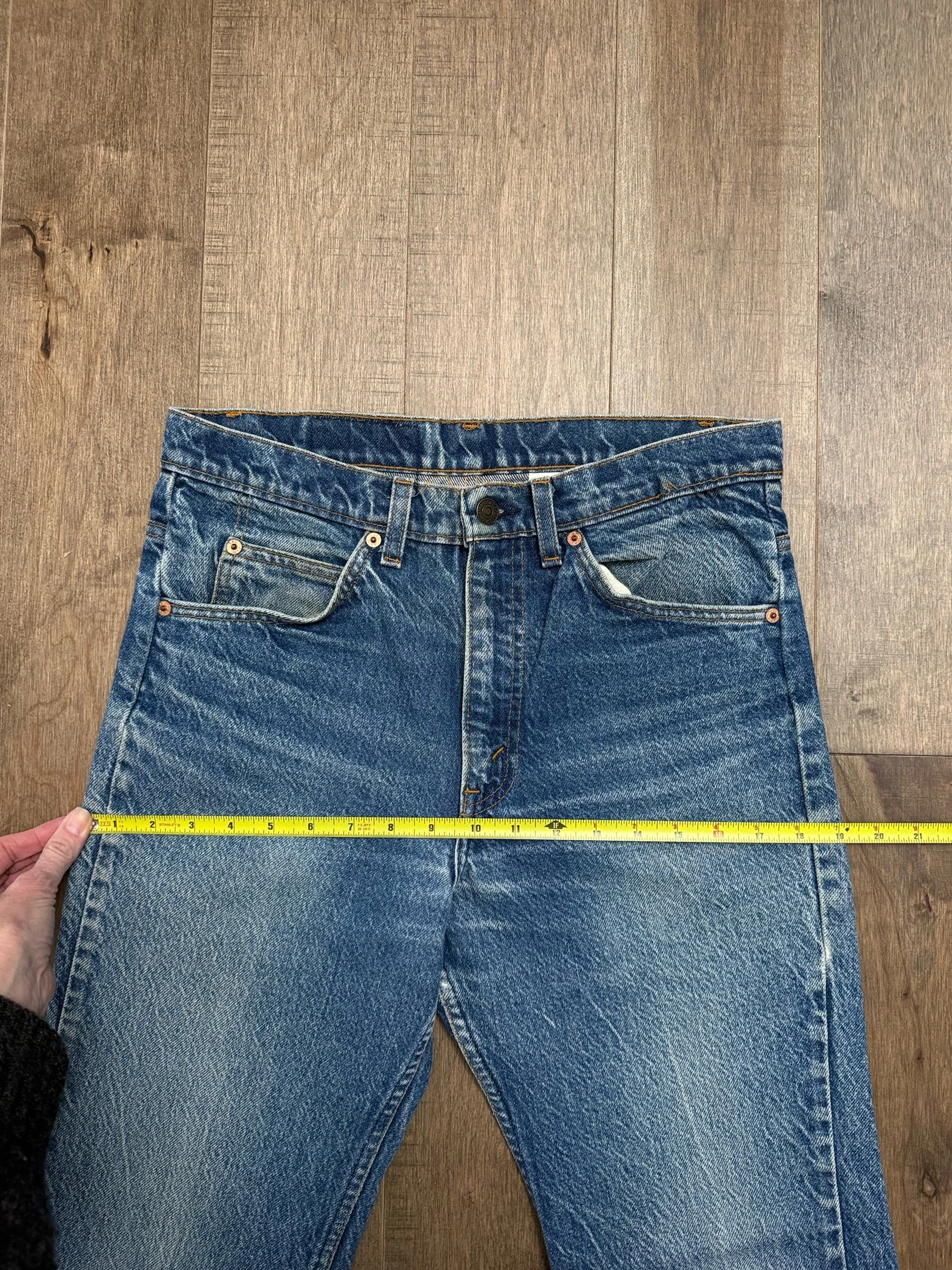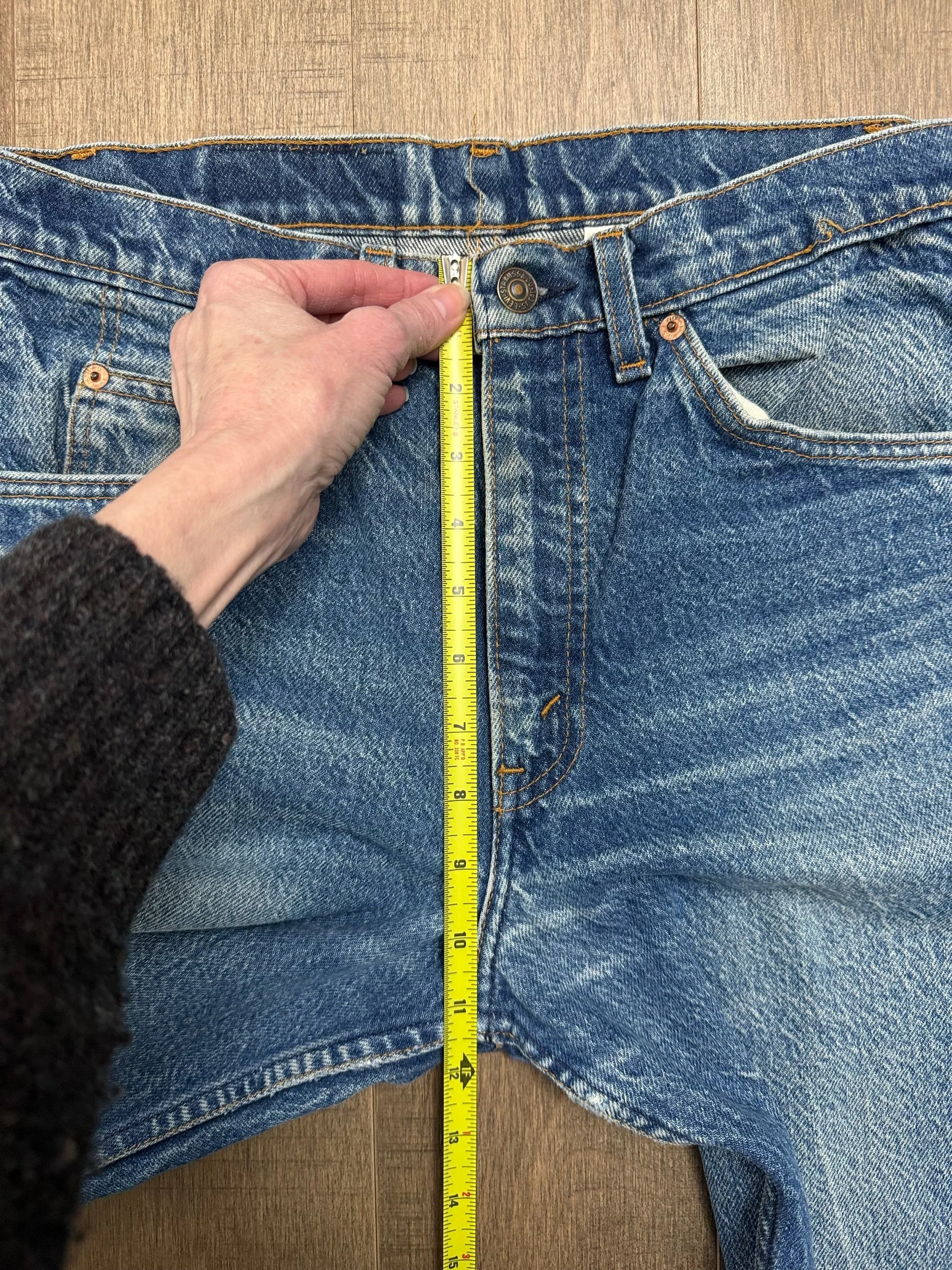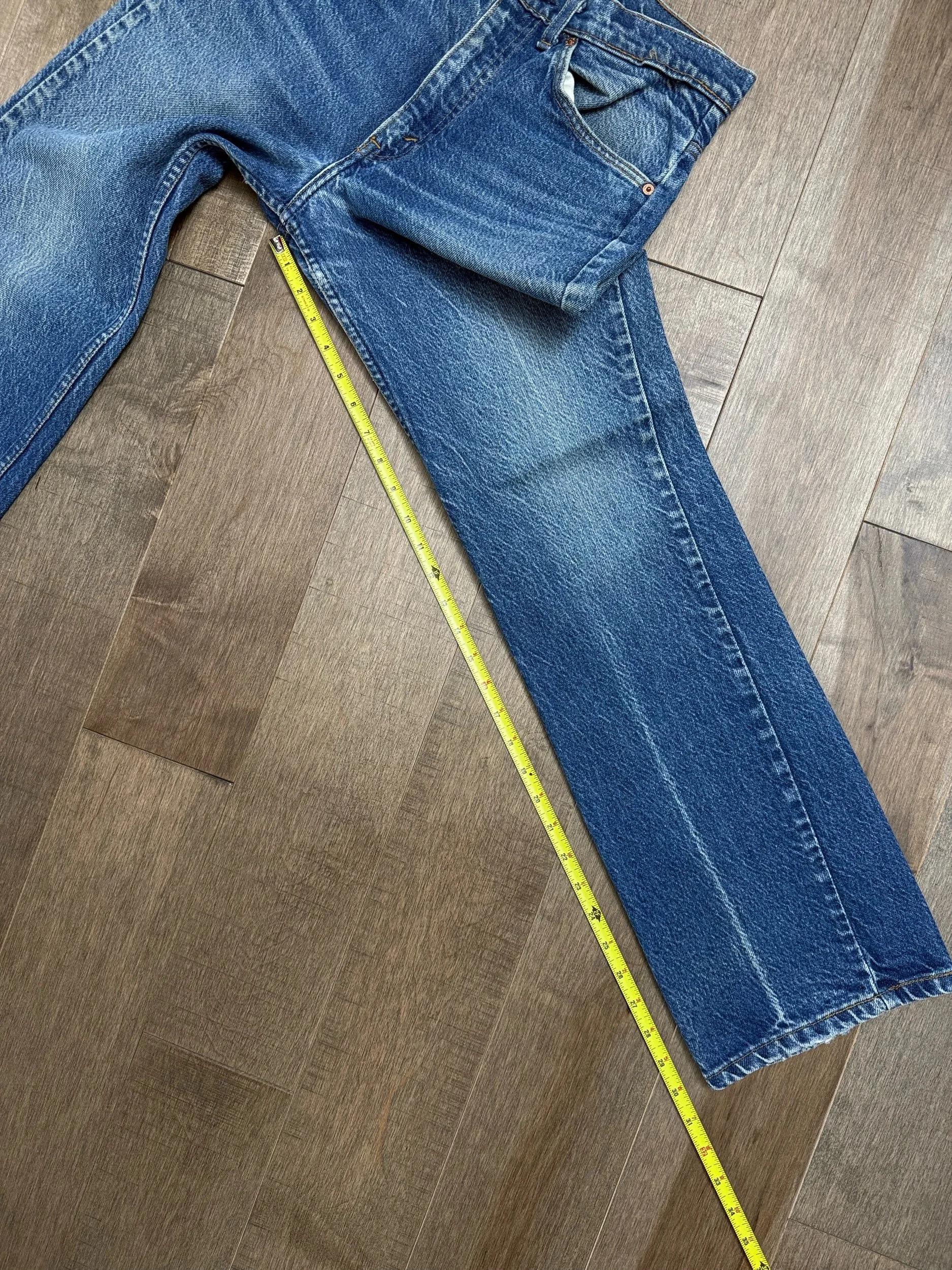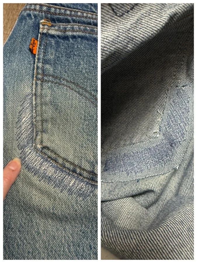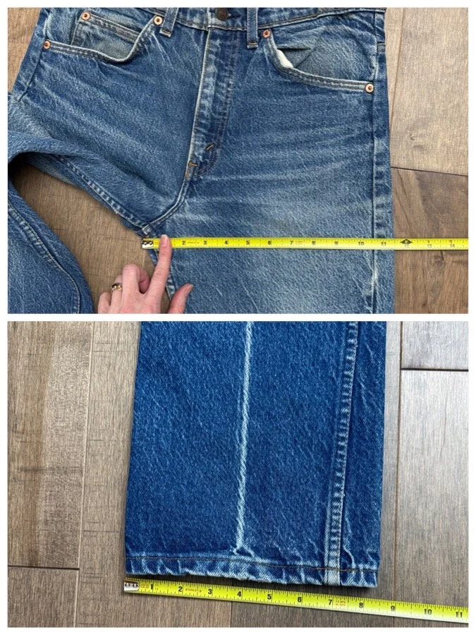 Keep in mind, vintage jeans are not new jeans. Every pair is at least 20 years old, most are older. This means they’ve been worn and likely have signs of wear - i.e. thinning areas, loose threads, signs of previous repair work, discolorations, faint (or not so faint stains), organic distressing, wear at the rivets, wear at the button holes. I do my best to describe these areas/signs of wear&tear, so please - before you buy - understand that you may receive your jeans and there will be signs of aging. Most buy vintage jeans wanting this, but if you want pristine new looking jeans, vintage likely isn’t for you. And that’s A-OK! Also note, the word “vintage” is not synonymous with super worn & faded. Vintage means over 20 years old. An item can be both vintage and still be new or like new condition.