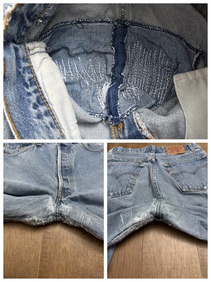 Sold as is. Keep in mind, vintage jeans are not new jeans. Every pair is at least 20 years old, most are older. This means they’ve been worn and likely have signs of wear - i.e. thinning areas, loose threads, signs of previous repair work, discolorations, faint (or not so faint stains), organic distressing, wear at the rivets, wear at the button holes. I do my best to describe these areas/signs of wear&tear, so please - before you buy - understand that you may receive your jeans and there will be signs of aging. Most buy vintage jeans wanting this, but if you want pristine new looking jeans, vintage likely isn’t for you. And that’s A-OK! Also note, the word “vintage” is not synonymous with super worn & faded. Vintage means over 20 years old. An item can be both vintage and still be new or like new condition.
