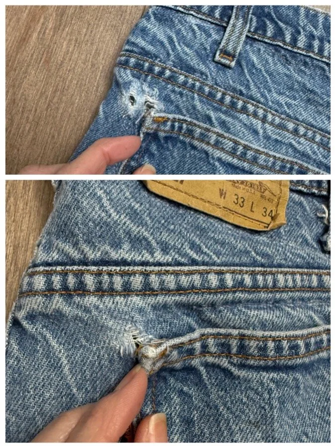 Keep in mind, vintage jeans are not new jeans. Every pair is at least 20 years old, most are older. This means they’ve been worn and likely have signs of wear - i.e. thinning areas, loose threads, signs of previous repair work, discolorations, faint (or not so faint stains), organic distressing, wear at the rivets, wear at the button holes. I do my best to describe these areas/signs of wear&tear, so please - before you buy - understand that you may receive your jeans and there will be signs of aging. Most buy vintage jeans wanting this, but if you want pristine new looking jeans, vintage likely isn’t for you. And that’s A-OK! Also note, the word “vintage” is not synonymous with super worn & faded. Vintage means over 20 years old. An item can be both vintage and still be new or like new condition.