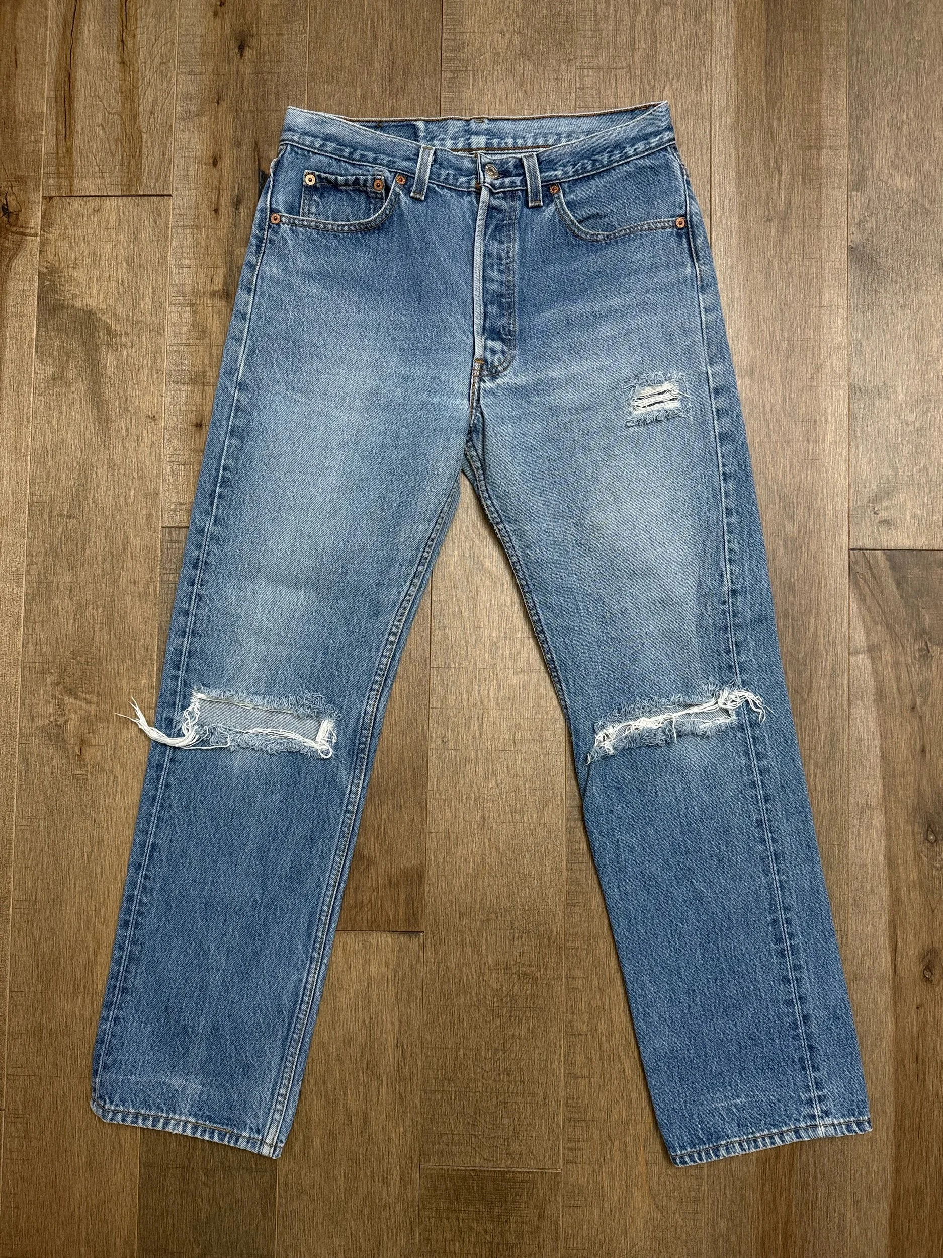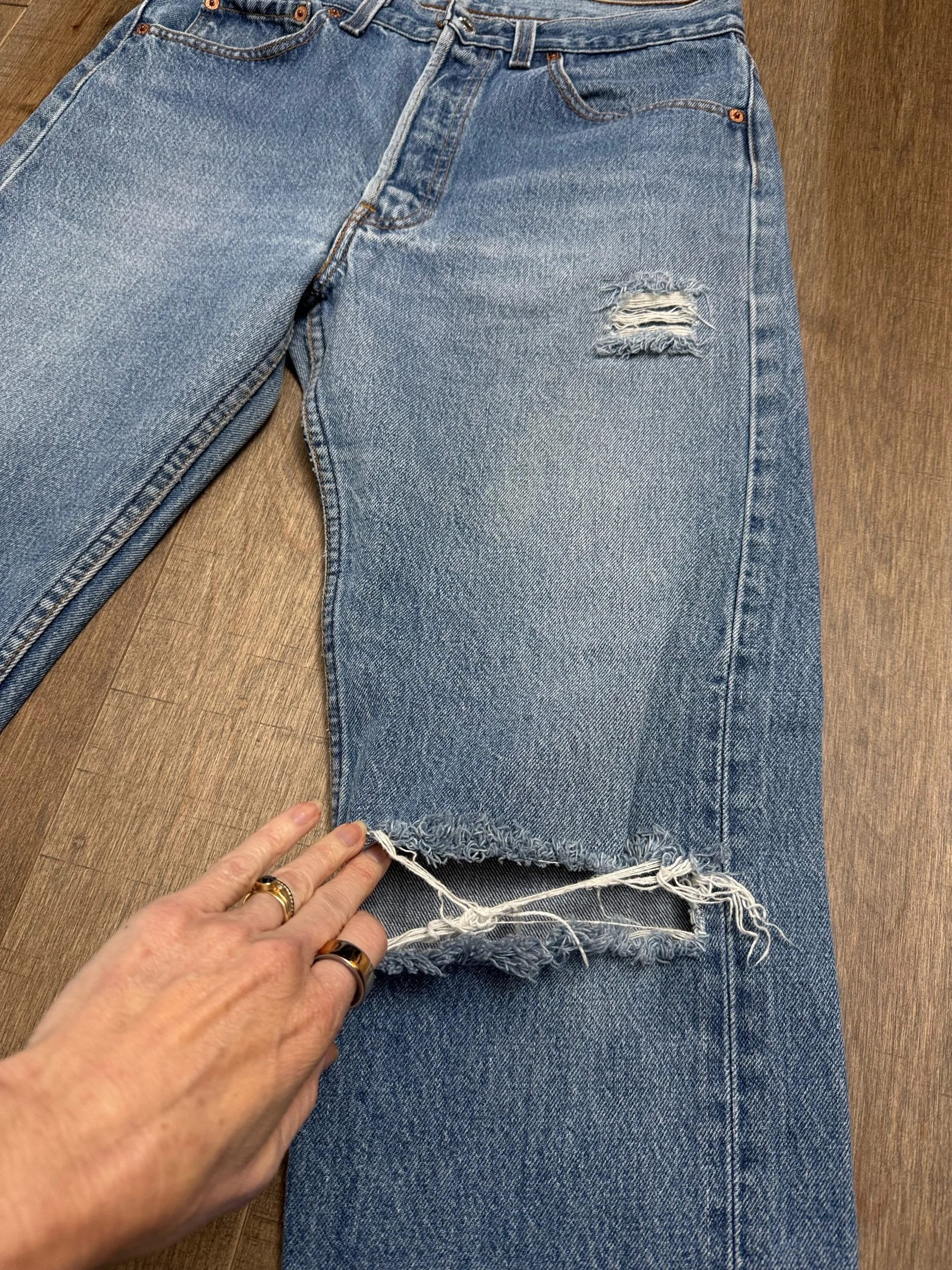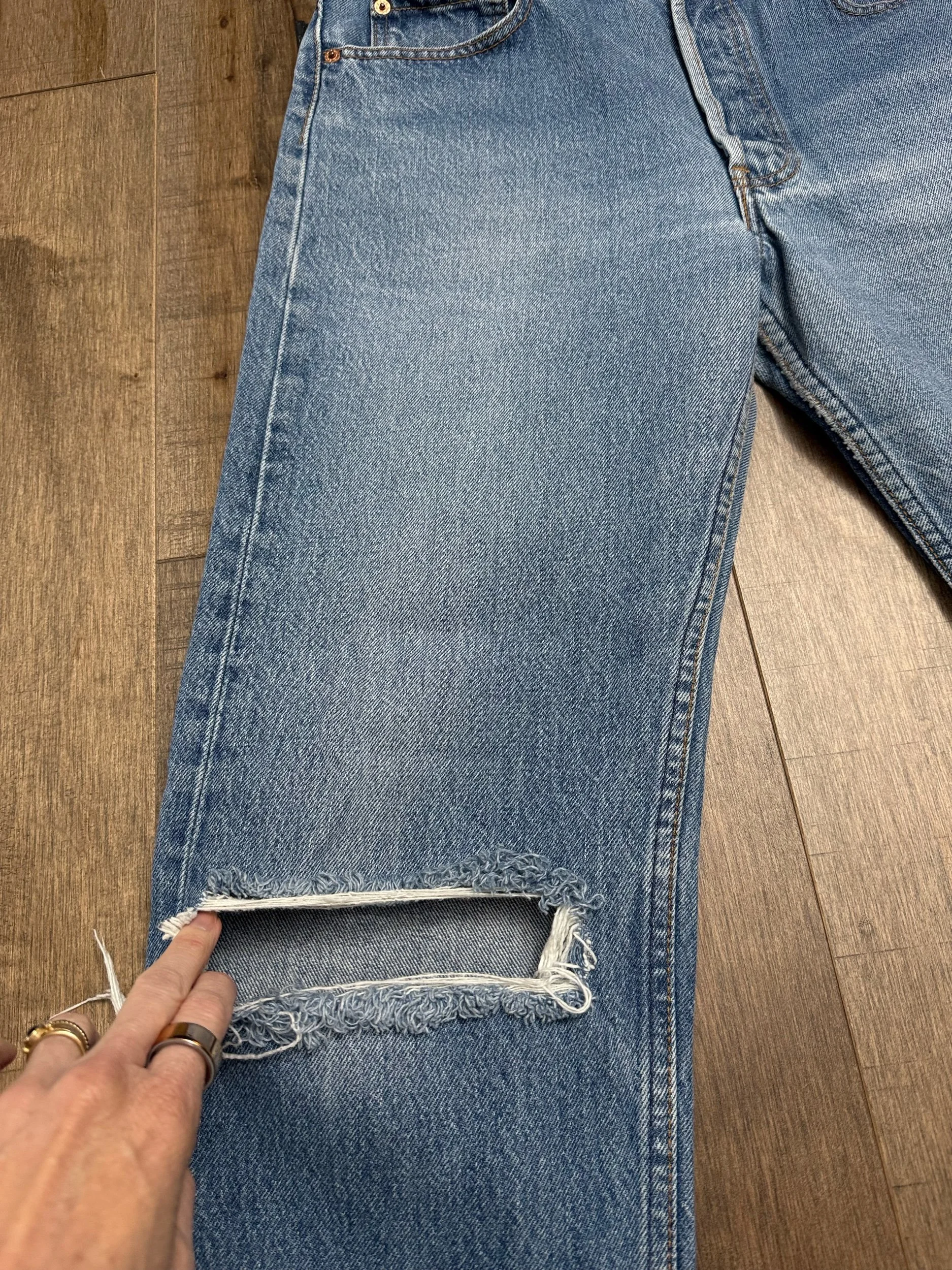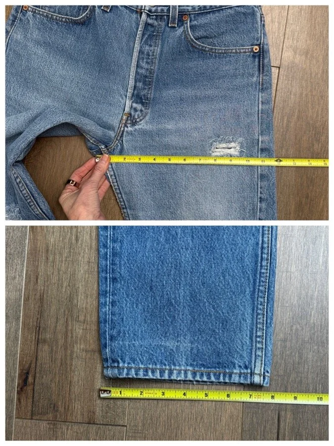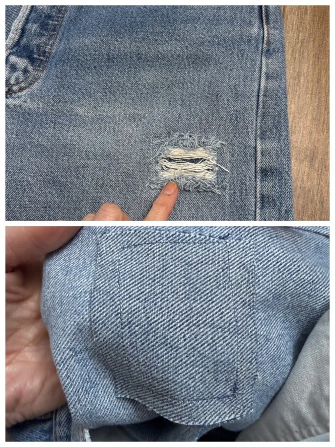 Sold as is. Keep in mind, vintage jeans are not new jeans. Every pair is at least 20 years old, most are older. This means they’ve been worn and likely have signs of wear - i.e. thinning areas, loose threads, signs of previous repair work, discolorations, faint (or not so faint stains), organic distressing, wear at the rivets, wear at the button holes. I do my best to describe these areas/signs of wear&tear, so please - before you buy - understand that you may receive your jeans and there will be signs of aging. Most buy vintage jeans wanting this, but if you want pristine new looking jeans, vintage likely isn’t for you. And that’s A-OK! Also note, the word “vintage” is not synonymous with super worn & faded. Vintage means over 20 years old. An item can be both vintage and still be new or like new condition.