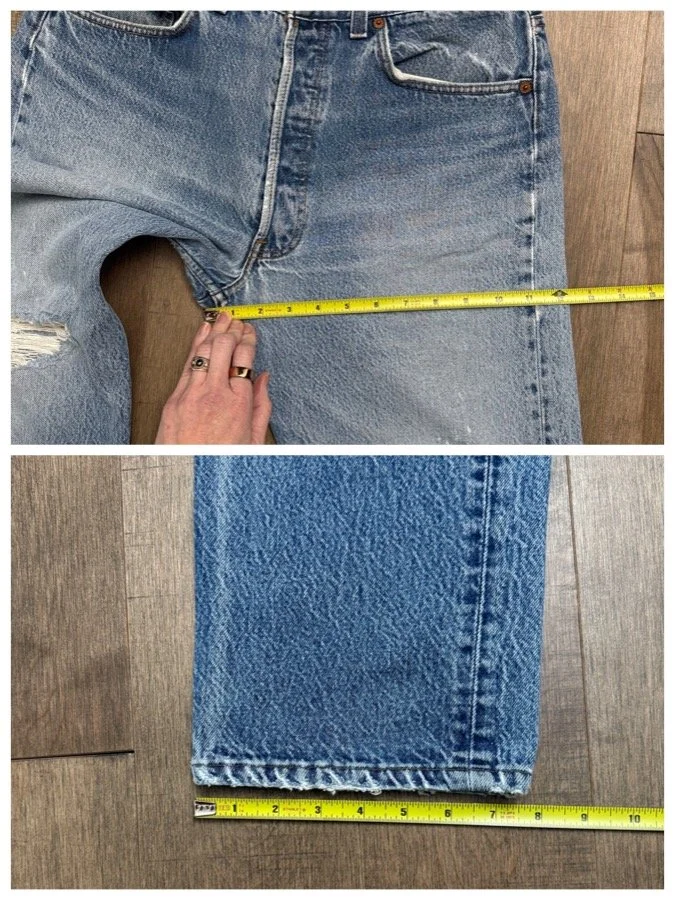 Sold as is. Keep in mind, vintage jeans are not new jeans. Every pair is at least 20 years old, most are older. This means they’ve been worn and likely have signs of wear - i.e. thinning areas, loose threads, signs of previous repair work, discolorations, faint (or not so faint stains), organic distressing, wear at the rivets, wear at the button holes. I do my best to describe these areas/signs of wear&tear, so please - before you buy - understand that you may receive your jeans and there will be signs of aging. Most buy vintage jeans wanting this, but if you want pristine new looking jeans, vintage likely isn’t for you. And that’s A-OK! Also note, the word “vintage” is not synonymous with super worn & faded. Vintage means over 20 years old. An item can be both vintage and still be new or like new condition.