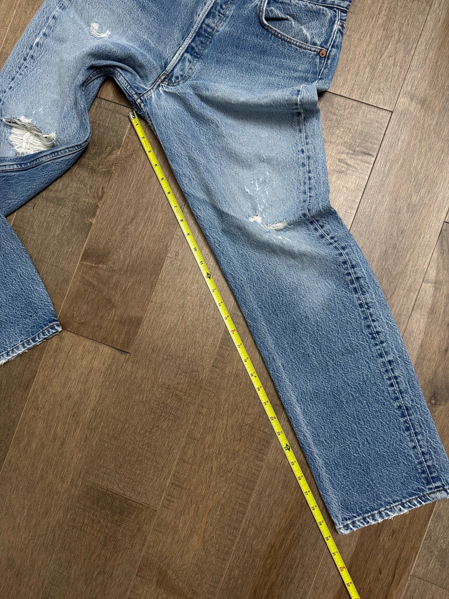 WASH: stunning sun faded medium blue wash with cool distress. So soft & worn!