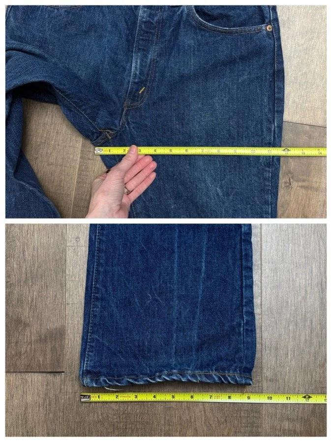 Keep in mind, vintage jeans are not new jeans. Every pair is at least 20 years old, most are older. This means they’ve been worn and likely have signs of wear - i.e. thinning areas, loose threads, signs of previous repair work, discolorations, faint (or not so faint stains), organic distressing, wear at the rivets, wear at the button holes. I do my best to describe these areas/signs of wear&tear, so please - before you buy - understand that you may receive your jeans and there will be signs of aging. Most buy vintage jeans wanting this, but if you want pristine new looking jeans, vintage likely isn’t for you. And that’s A-OK! Also note, the word “vintage” is not synonymous with super worn & faded. Vintage means over 20 years old. An item can be both vintage and still be new or like new condition.