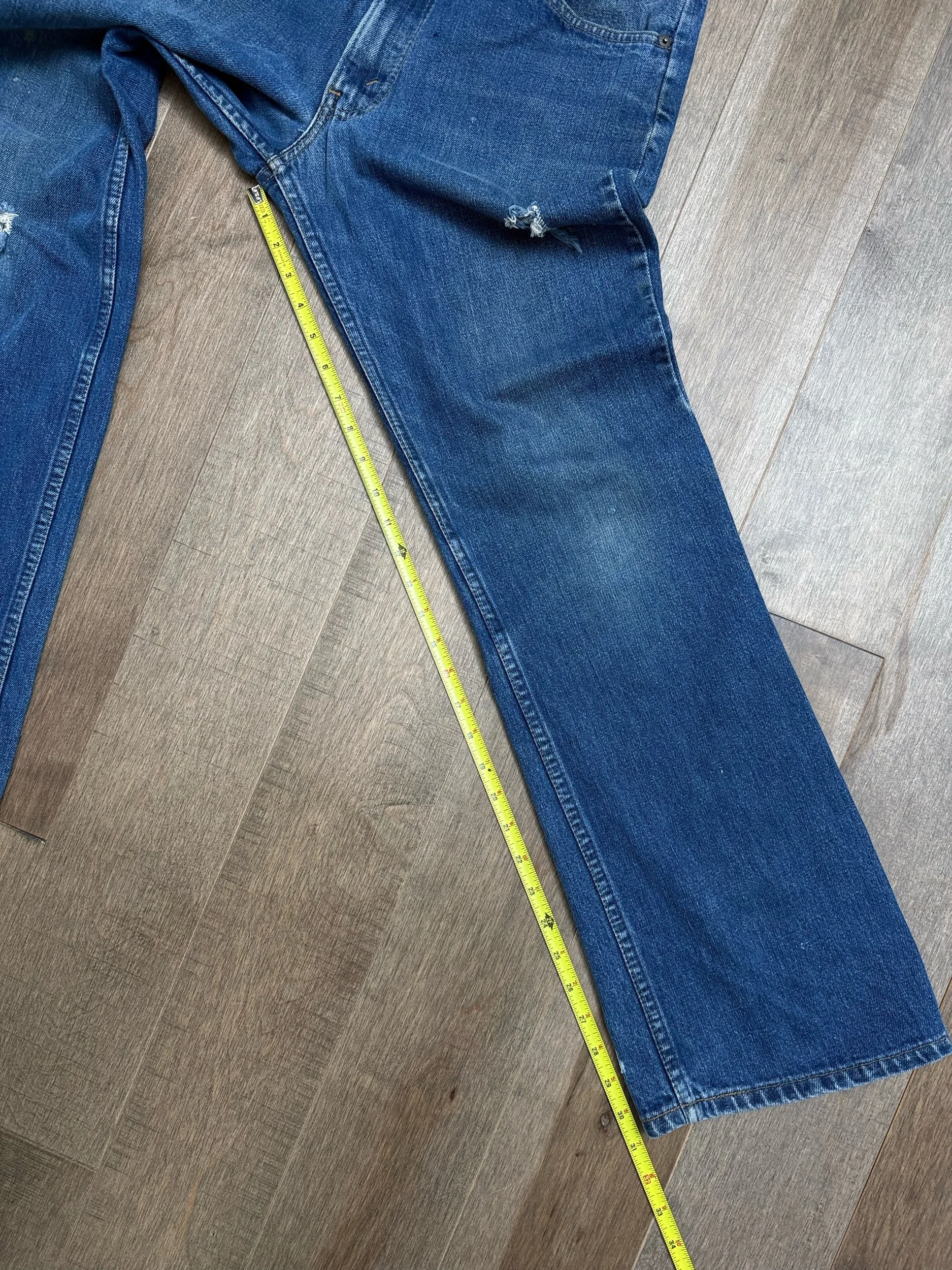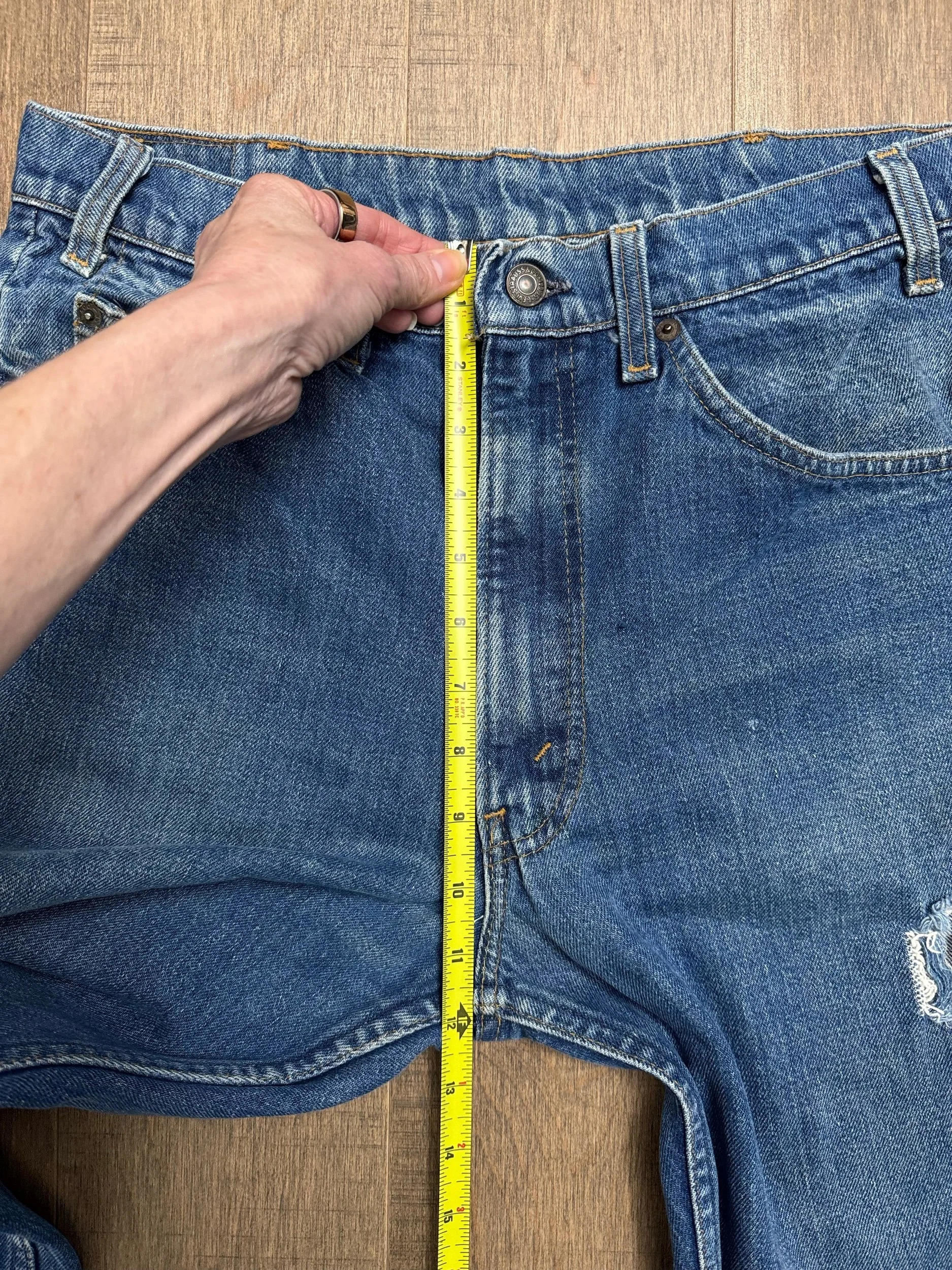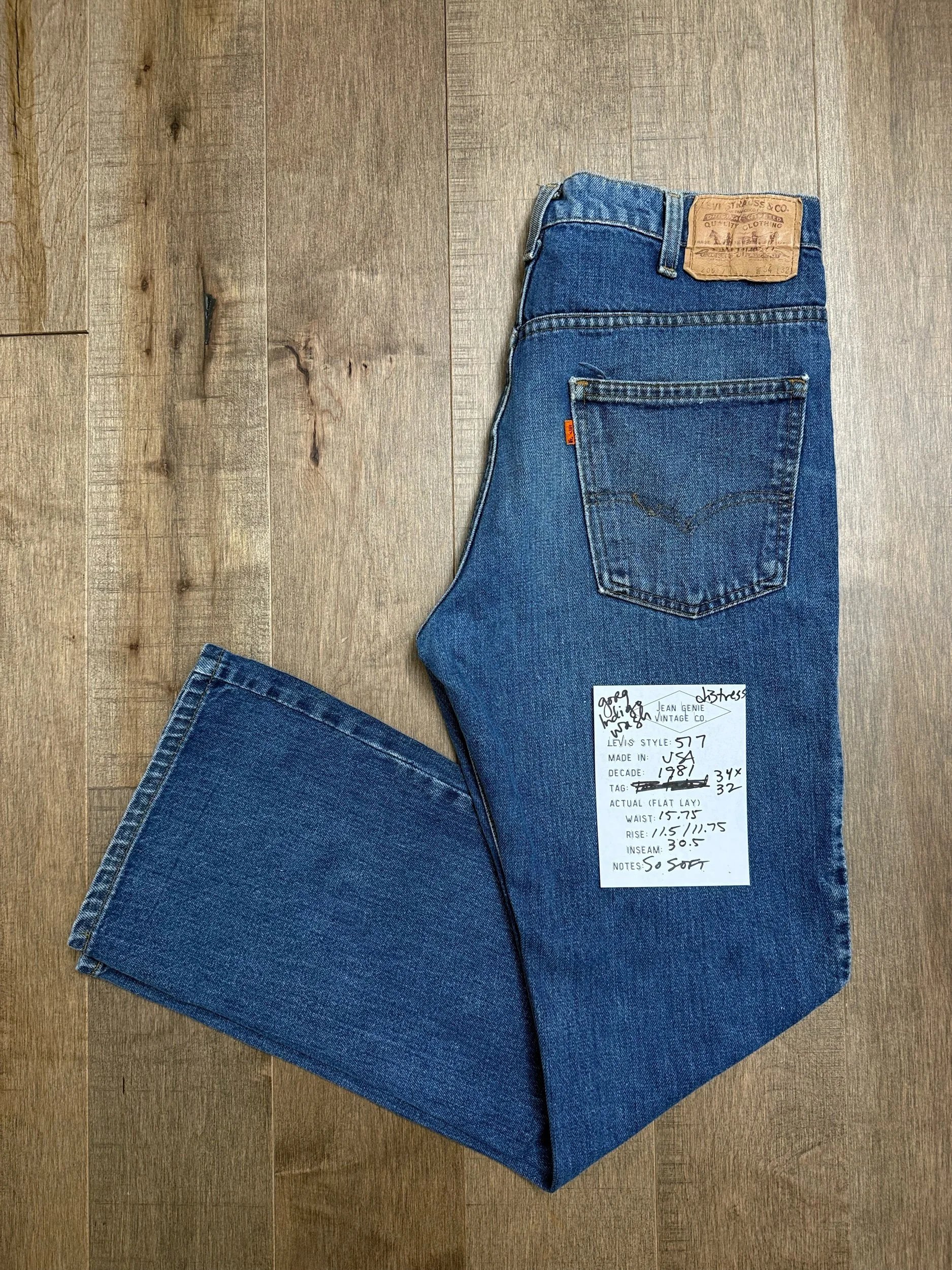 Keep in mind, vintage jeans are not new jeans. Every pair is at least 20 years old, most are older. This means they’ve been worn and likely have signs of wear - i.e. thinning areas, loose threads, signs of previous repair work, discolorations, faint (or not so faint stains), organic distressing, wear at the rivets, wear at the button holes. I do my best to describe these areas/signs of wear&tear, so please - before you buy - understand that you may receive your jeans and there will be signs of aging. Most buy vintage jeans wanting this, but if you want pristine new looking jeans, vintage likely isn’t for you. And that’s A-OK! Also note, the word “vintage” is not synonymous with super worn & faded. Vintage means over 20 years old. An item can be both vintage and still be new or like new condition.