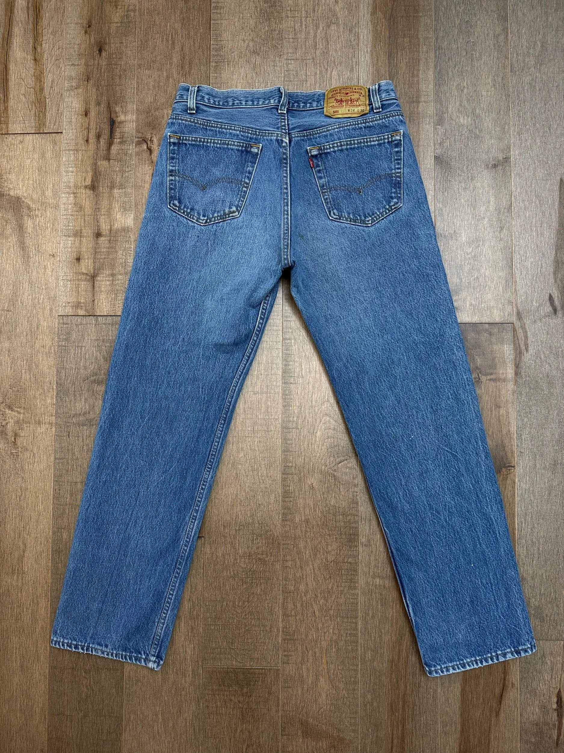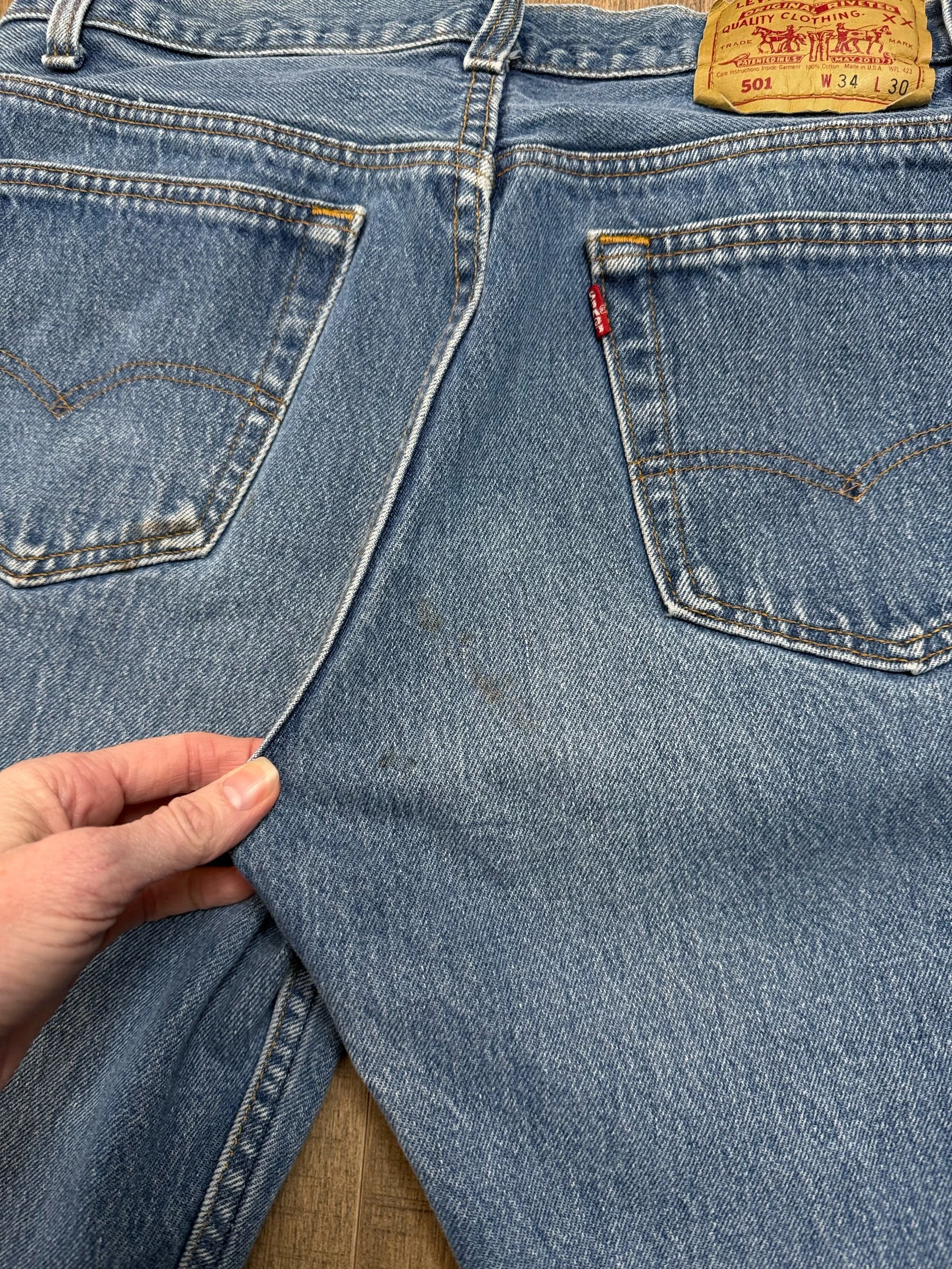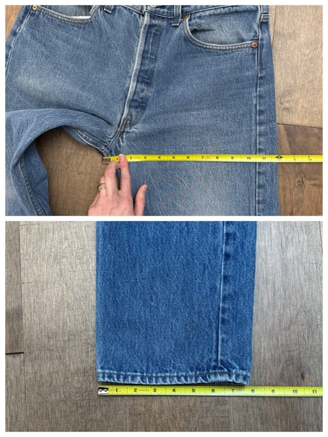 Sold as is. Keep in mind, vintage jeans are not new jeans. Every pair is at least 20 years old, most are older. This means they’ve been worn and likely have signs of wear - i.e. thinning areas, loose threads, signs of previous repair work, discolorations, faint (or not so faint stains), organic distressing, wear at the rivets, wear at the button holes. I do my best to describe these areas/signs of wear&tear, so please - before you buy - understand that you may receive your jeans and there will be signs of aging. Most buy vintage jeans wanting this, but if you want pristine new looking jeans, vintage likely isn’t for you. And that’s A-OK! Also note, the word “vintage” is not synonymous with super worn & faded. Vintage means over 20 years old. An item can be both vintage and still be new or like new condition.
