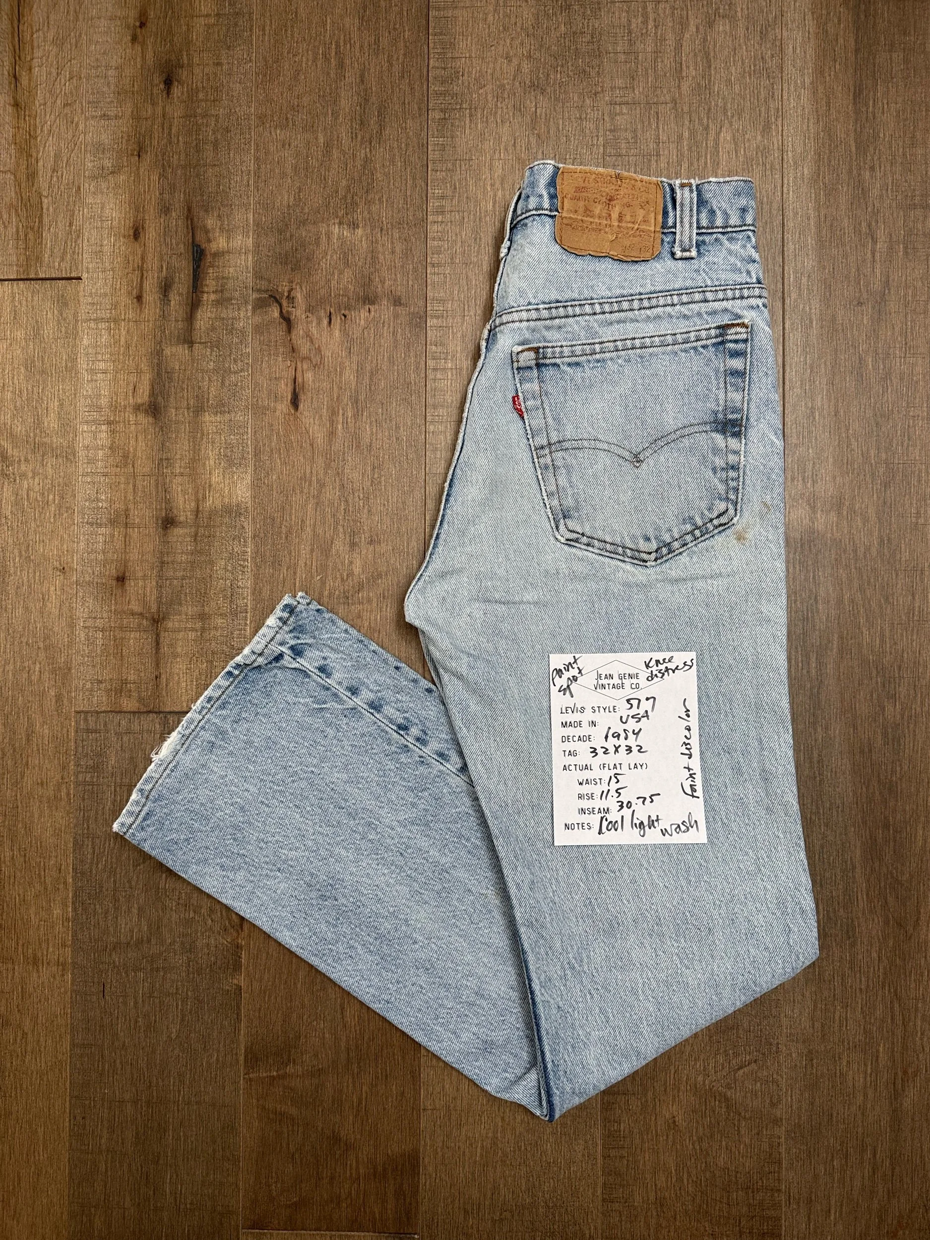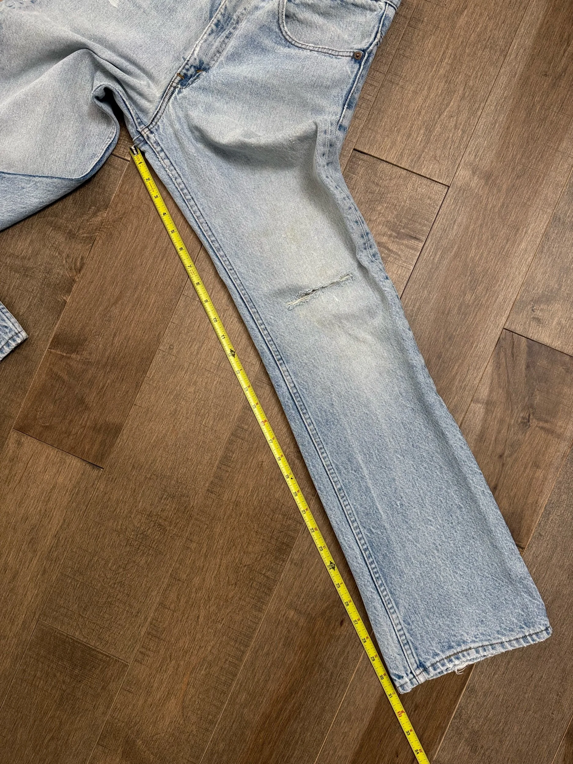 WASH: awesome light sun faded blue wash with cool distress and very faint work wear discoloration as shown in photos. Paint spots. Loads of character in these bad boys!