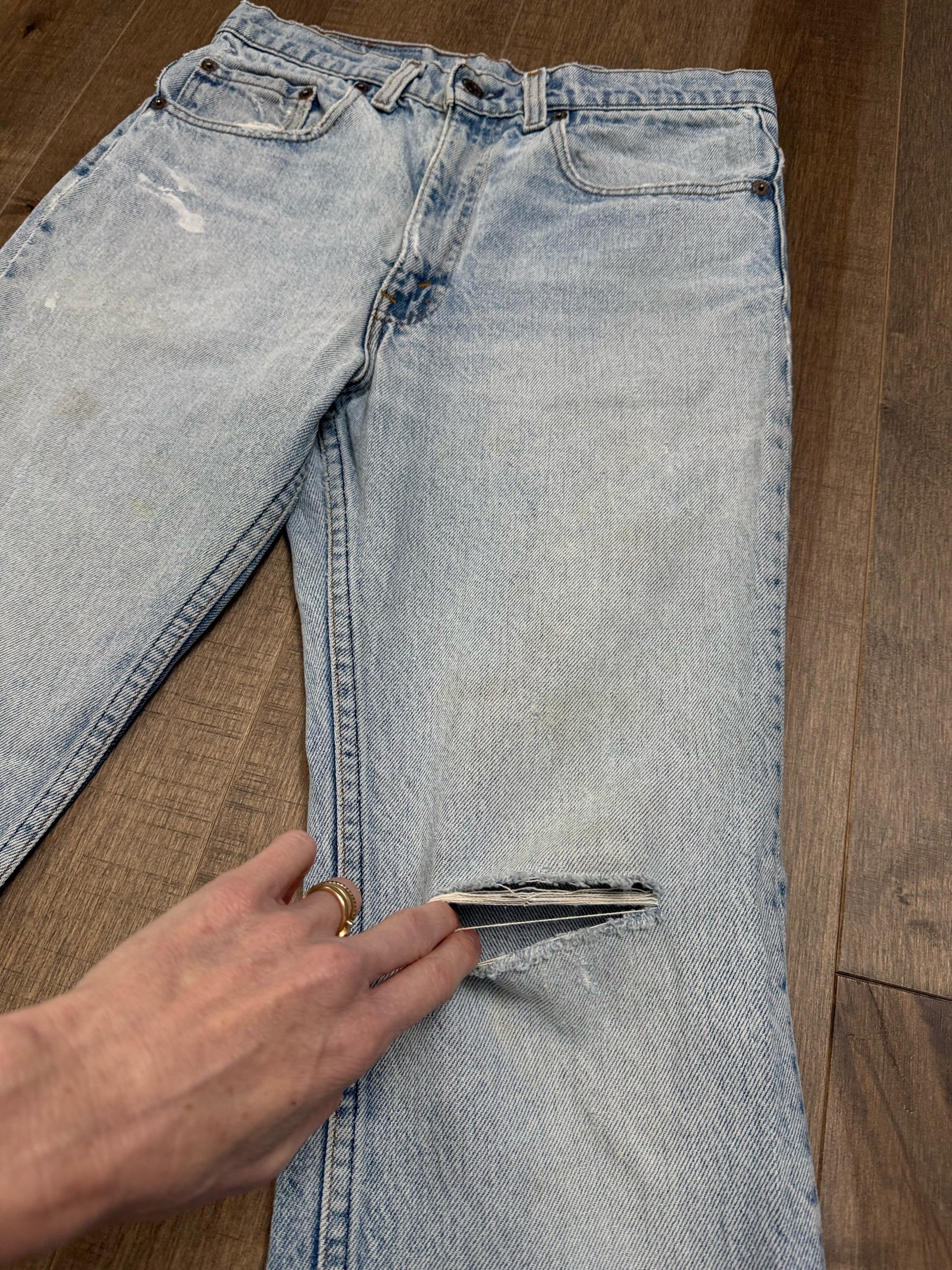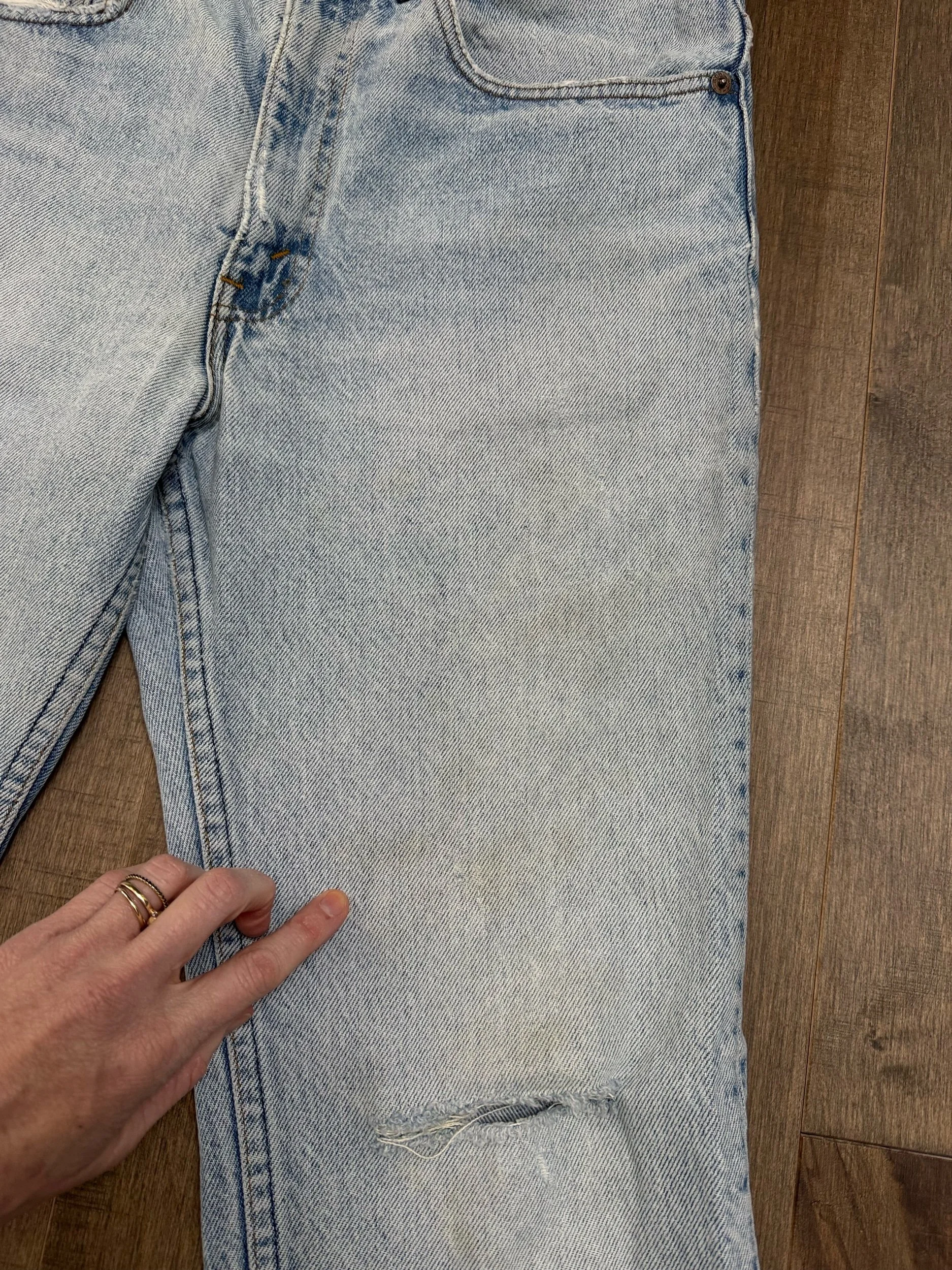 Keep in mind, vintage jeans are not new jeans. Every pair is at least 20 years old, most are older. This means they’ve been worn and likely have signs of wear - i.e. thinning areas, loose threads, signs of previous repair work, discolorations, faint (or not so faint stains), organic distressing, wear at the rivets, wear at the button holes. I do my best to describe these areas/signs of wear&tear, so please - before you buy - understand that you may receive your jeans and there will be signs of aging. Most buy vintage jeans wanting this, but if you want pristine new looking jeans, vintage likely isn’t for you. And that’s A-OK! Also note, the word “vintage” is not synonymous with super worn & faded. Vintage means over 20 years old. An item can be both vintage and still be new or like new condition.