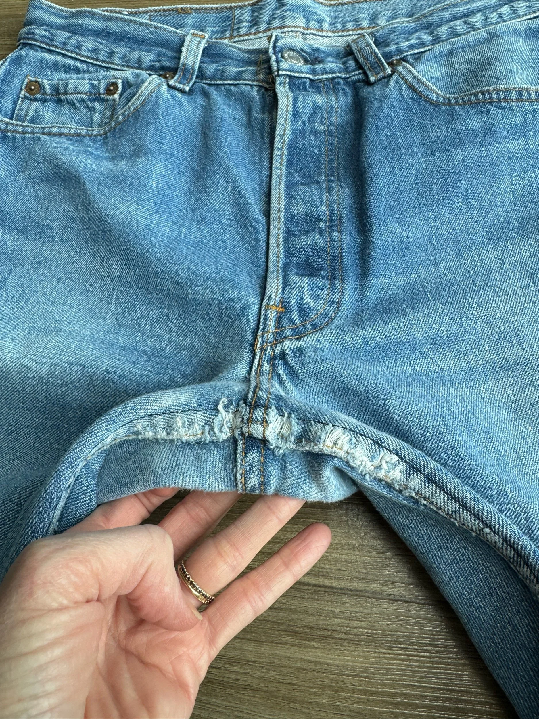 Sold as is. Keep in mind, vintage jeans are not new jeans. Every pair is at least 20 years old, most are older. This means they’ve been worn and likely have signs of wear - i.e. thinning areas, loose threads, signs of previous repair work, discolorations, faint (or not so faint stains), organic distressing, wear at the rivets, wear at the button holes. I do my best to describe these areas/signs of wear&tear, so please - before you buy - understand that you may receive your jeans and there will be signs of aging. Most buy vintage jeans wanting this, but if you want pristine new looking jeans, vintage likely isn’t for you. And that’s A-OK!
