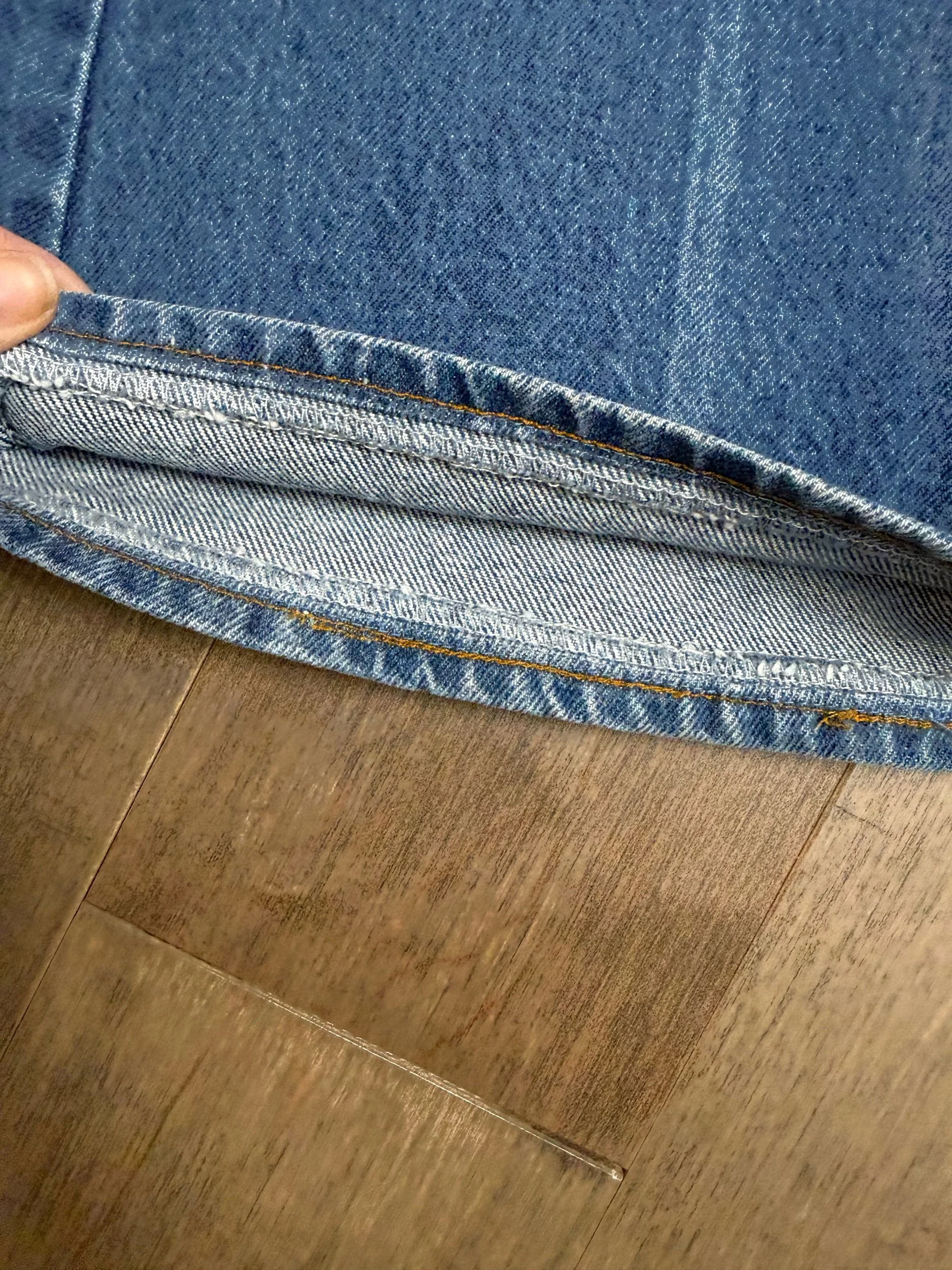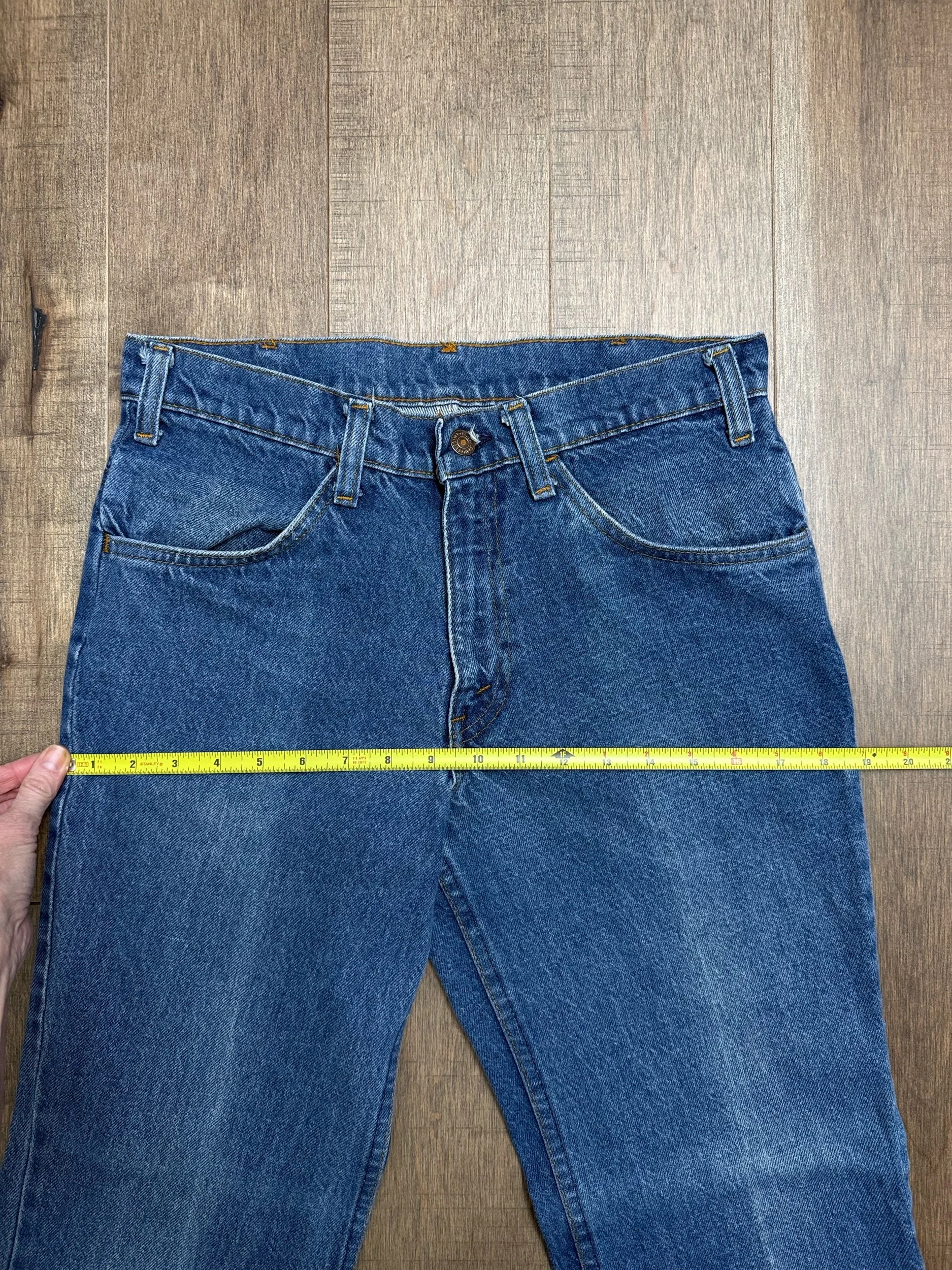 Keep in mind, vintage jeans are not new jeans. Every pair is at least 20 years old, most are older. This means they’ve been worn and likely have signs of wear - i.e. thinning areas, loose threads, signs of previous repair work, discolorations, faint (or not so faint stains), organic distressing, wear at the rivets, wear at the button holes. I do my best to describe these areas/signs of wear&tear, so please - before you buy - understand that you may receive your jeans and there will be signs of aging. Most buy vintage jeans wanting this, but if you want pristine new looking jeans, vintage likely isn’t for you. And that’s A-OK! Also note, the word “vintage” is not synonymous with super worn & faded. Vintage means over 20 years old. An item can be both vintage and still be new or like new condition.