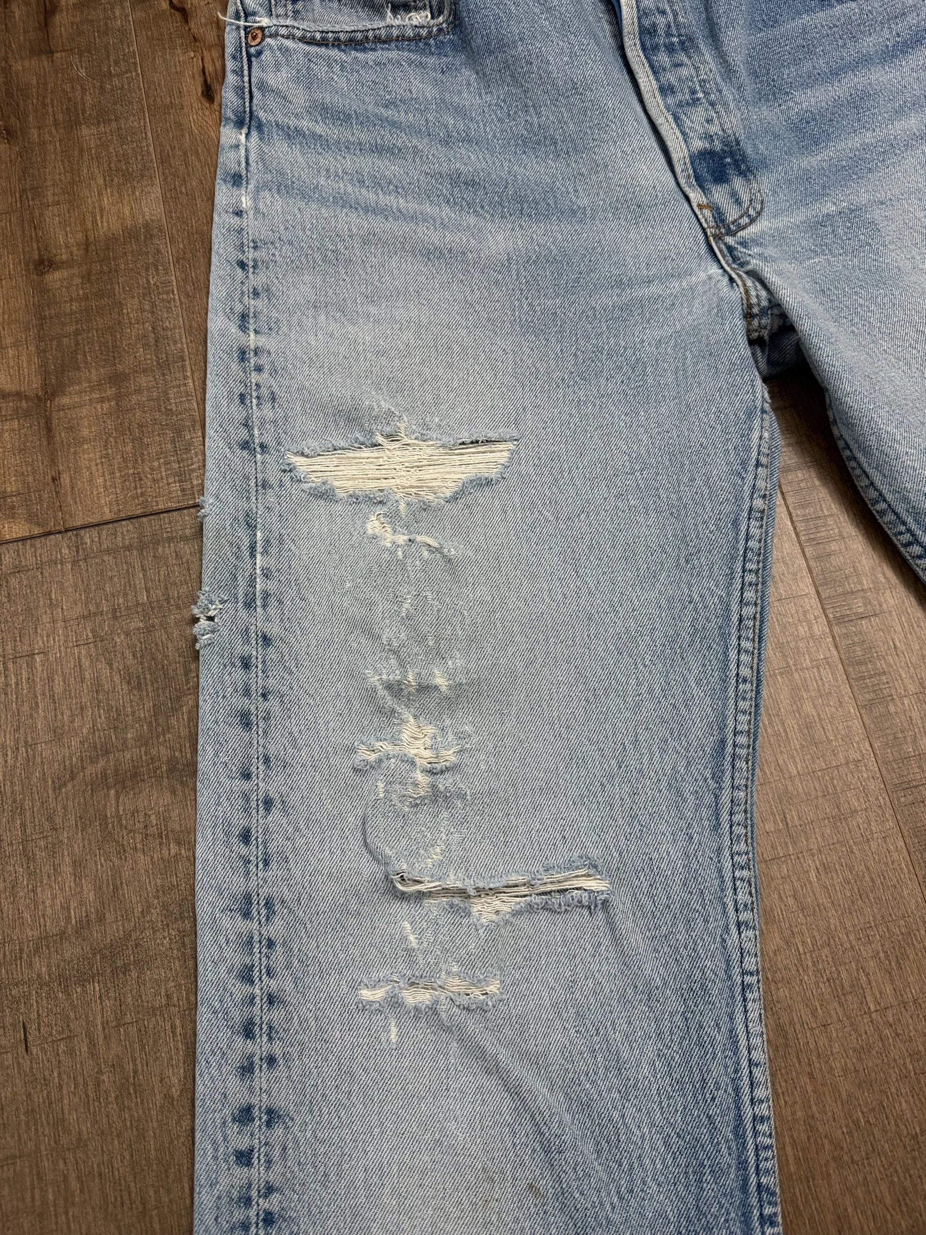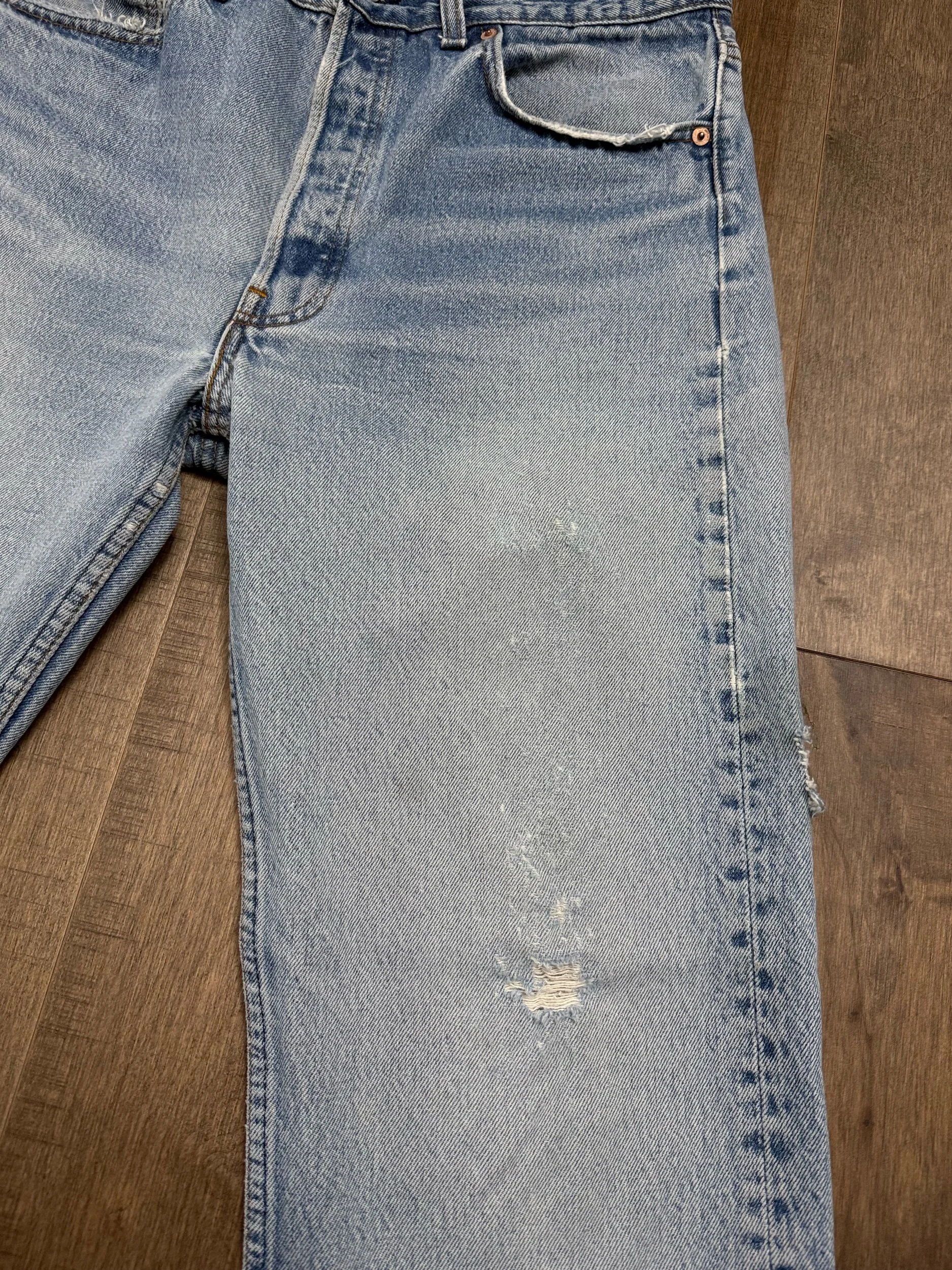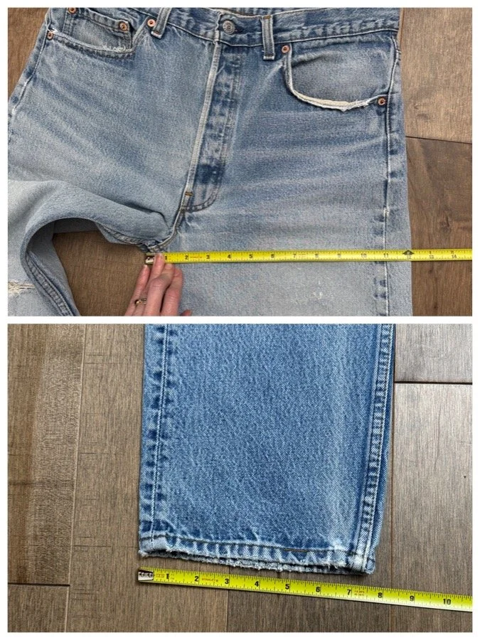 Sold as is. Keep in mind, vintage jeans are not new jeans. Every pair is at least 20 years old, most are older. This means they’ve been worn and likely have signs of wear - i.e. thinning areas, loose threads, signs of previous repair work, discolorations, faint (or not so faint stains), organic distressing, wear at the rivets, wear at the button holes. I do my best to describe these areas/signs of wear&tear, so please - before you buy - understand that you may receive your jeans and there will be signs of aging. Most buy vintage jeans wanting this, but if you want pristine new looking jeans, vintage likely isn’t for you. And that’s A-OK! Also note, the word “vintage” is not synonymous with super worn & faded. Vintage means over 20 years old. An item can be both vintage and still be new or like new condition.