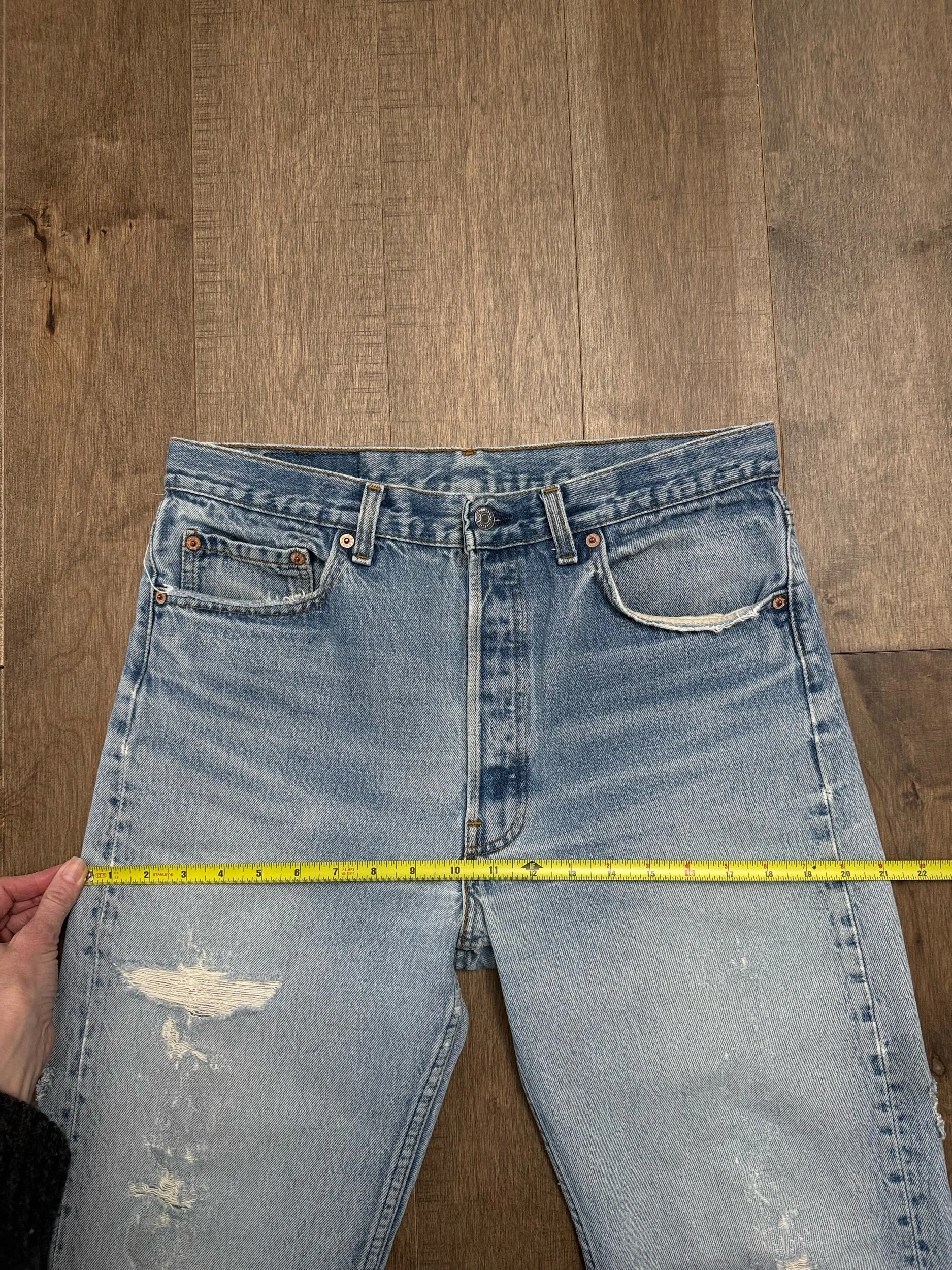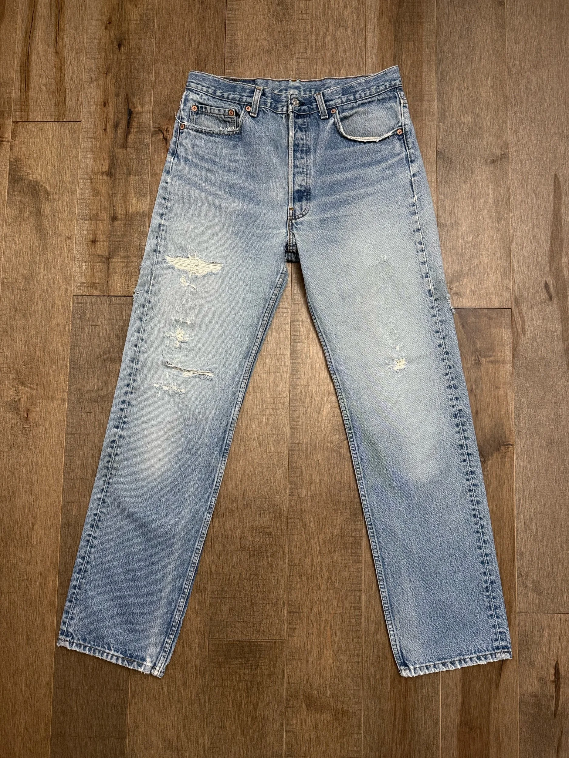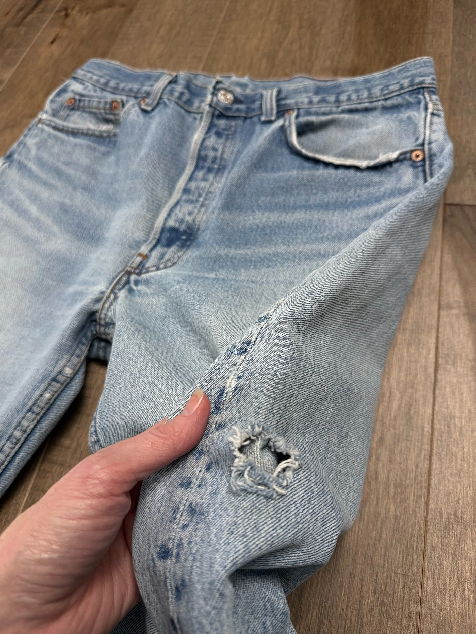 Sold as is. Keep in mind, vintage jeans are not new jeans. Every pair is at least 20 years old, most are older. This means they’ve been worn and likely have signs of wear - i.e. thinning areas, loose threads, signs of previous repair work, discolorations, faint (or not so faint stains), organic distressing, wear at the rivets, wear at the button holes. I do my best to describe these areas/signs of wear&tear, so please - before you buy - understand that you may receive your jeans and there will be signs of aging. Most buy vintage jeans wanting this, but if you want pristine new looking jeans, vintage likely isn’t for you. And that’s A-OK! Also note, the word “vintage” is not synonymous with super worn & faded. Vintage means over 20 years old. An item can be both vintage and still be new or like new condition.