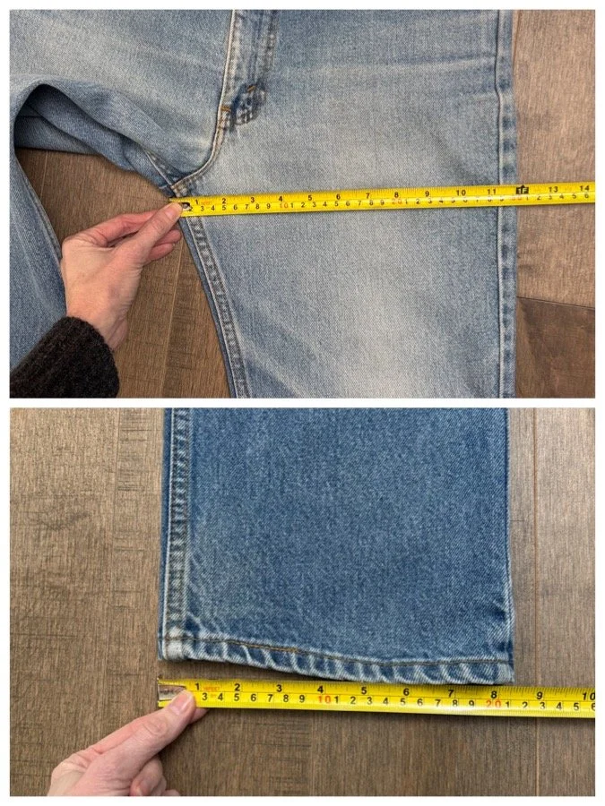 Keep in mind, vintage jeans are not new jeans. Every pair is at least 20 years old, most are older. This means they’ve been worn and likely have signs of wear - i.e. thinning areas, loose threads, signs of previous repair work, discolorations, faint (or not so faint stains), organic distressing, wear at the rivets, wear at the button holes. I do my best to describe these areas/signs of wear&tear, so please - before you buy - understand that you may receive your jeans and there will be signs of aging. Most buy vintage jeans wanting this, but if you want pristine new looking jeans, vintage likely isn’t for you. And that’s A-OK! Also note, the word “vintage” is not synonymous with super worn & faded. Vintage means over 20 years old. An item can be both vintage and still be new or like new condition.