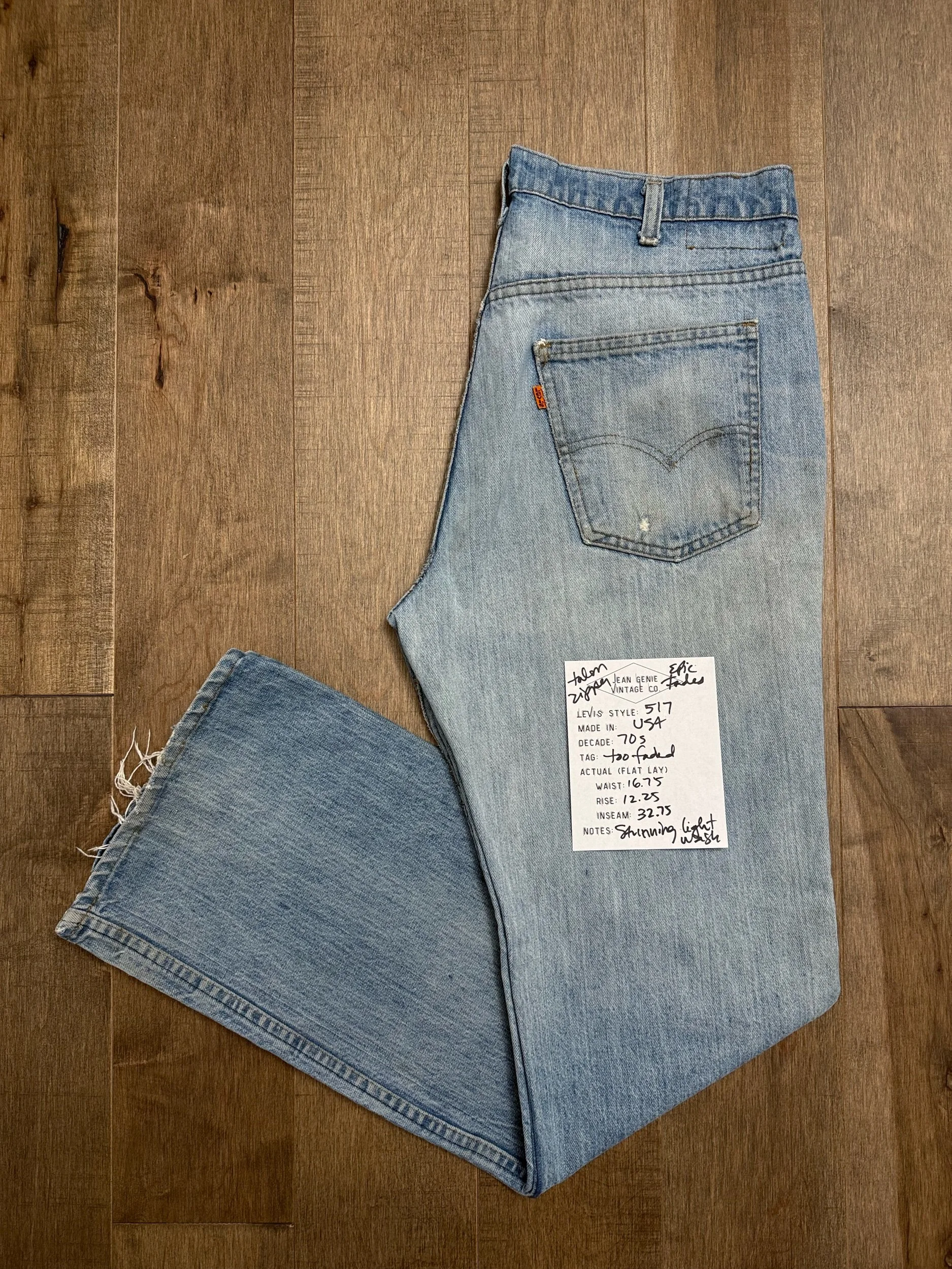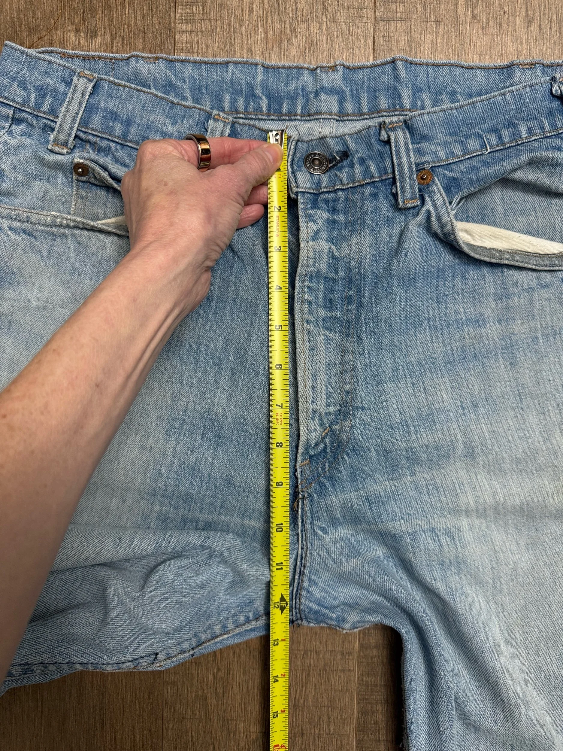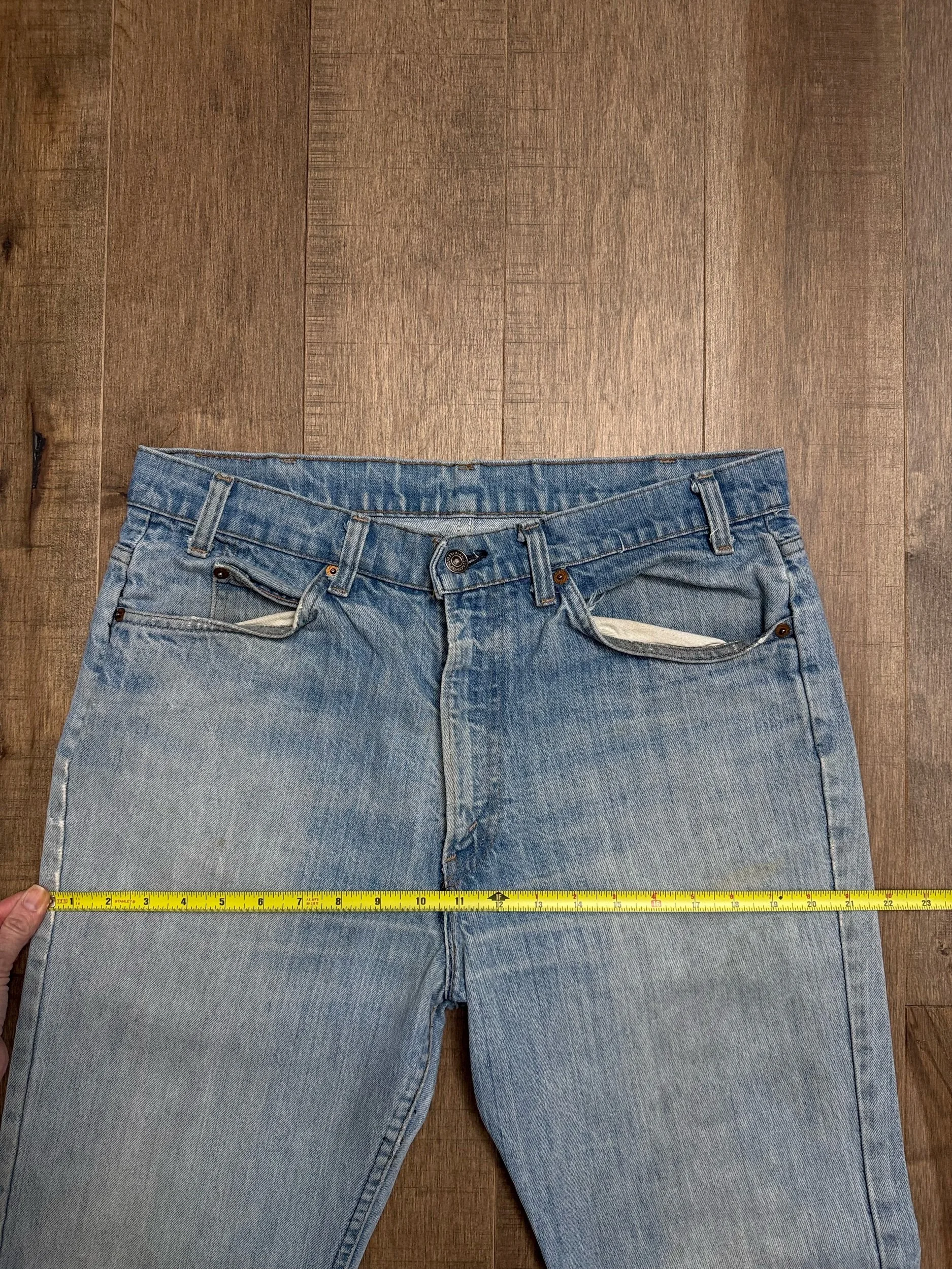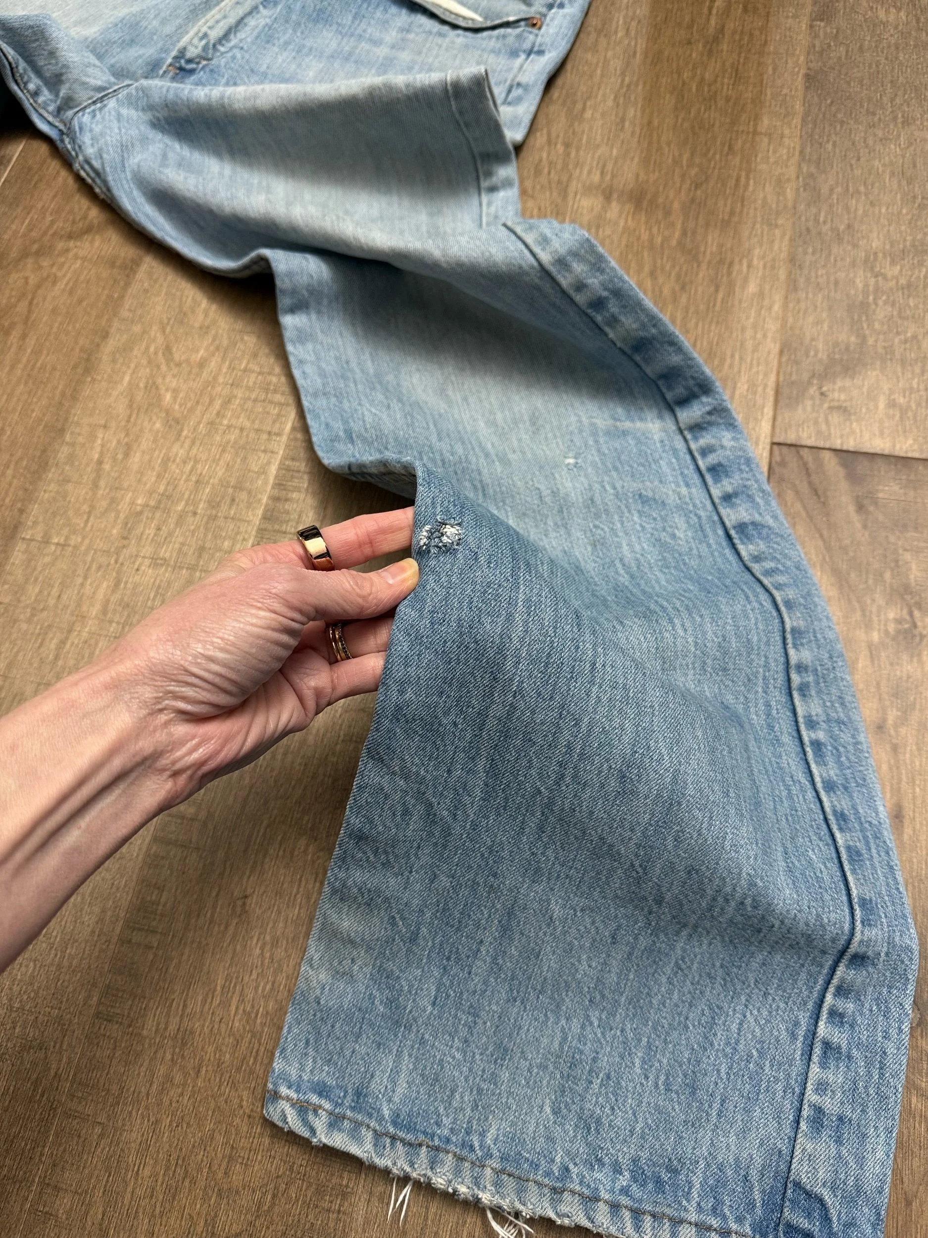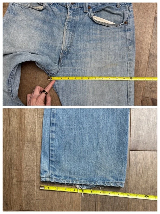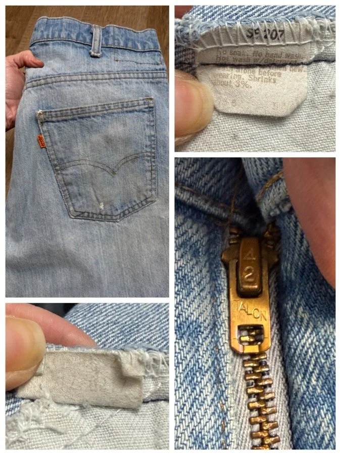 Keep in mind, vintage jeans are not new jeans. Every pair is at least 20 years old, most are older. This means they’ve been worn and likely have signs of wear - i.e. thinning areas, loose threads, signs of previous repair work, discolorations, faint (or not so faint stains), organic distressing, wear at the rivets, wear at the button holes. I do my best to describe these areas/signs of wear&tear, so please - before you buy - understand that you may receive your jeans and there will be signs of aging. Most buy vintage jeans wanting this, but if you want pristine new looking jeans, vintage likely isn’t for you. And that’s A-OK! Also note, the word “vintage” is not synonymous with super worn & faded. Vintage means over 20 years old. An item can be both vintage and still be new or like new condition.