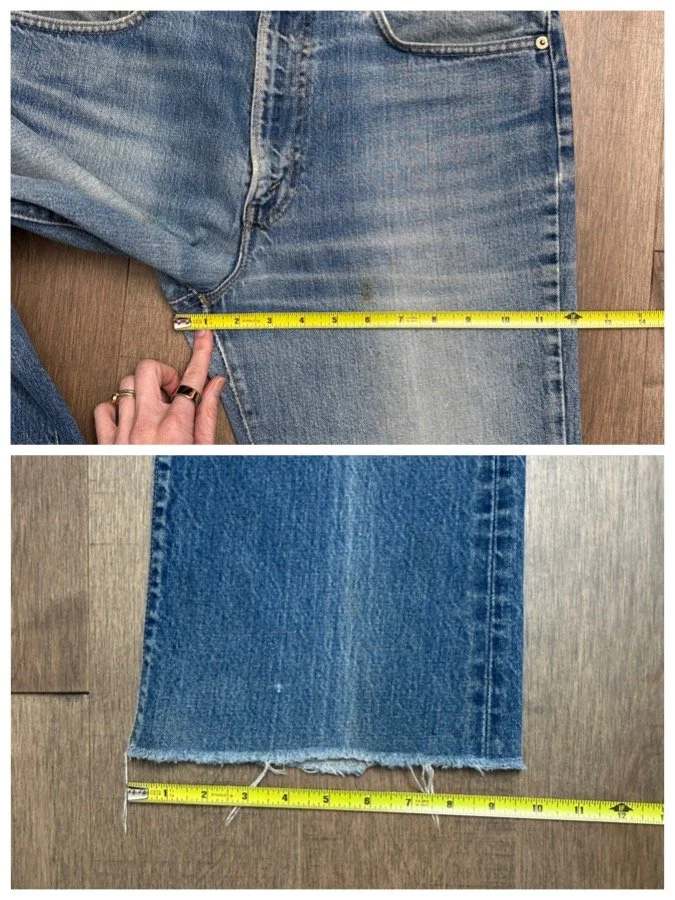 Keep in mind, vintage jeans are not new jeans. Every pair is at least 20 years old, most are older. This means they’ve been worn and likely have signs of wear - i.e. thinning areas, loose threads, signs of previous repair work, discolorations, faint (or not so faint stains), organic distressing, wear at the rivets, wear at the button holes. I do my best to describe these areas/signs of wear&tear, so please - before you buy - understand that you may receive your jeans and there will be signs of aging. Most buy vintage jeans wanting this, but if you want pristine new looking jeans, vintage likely isn’t for you. And that’s A-OK! Also note, the word “vintage” is not synonymous with super worn & faded. Vintage means over 20 years old. An item can be both vintage and still be new or like new condition.