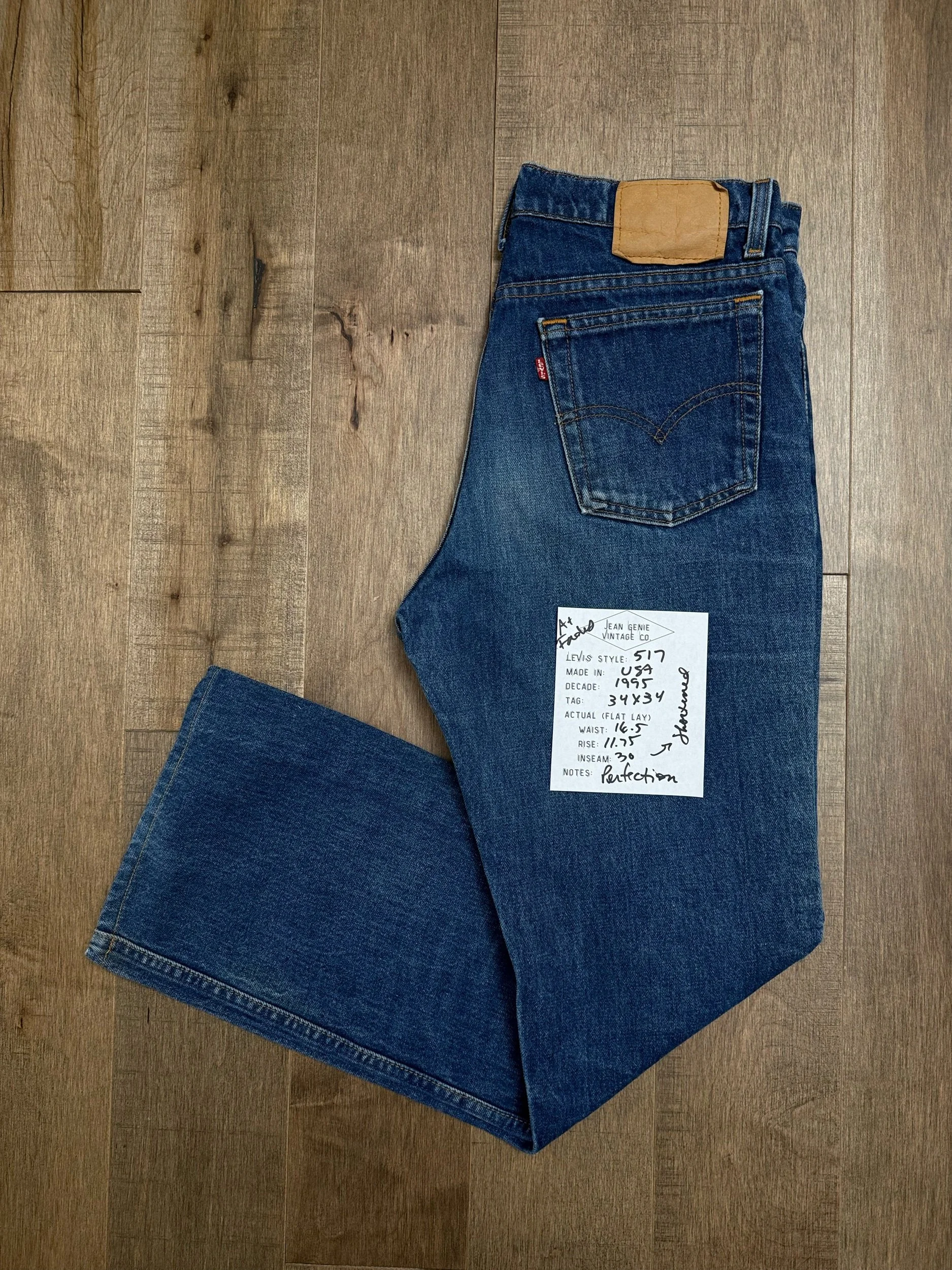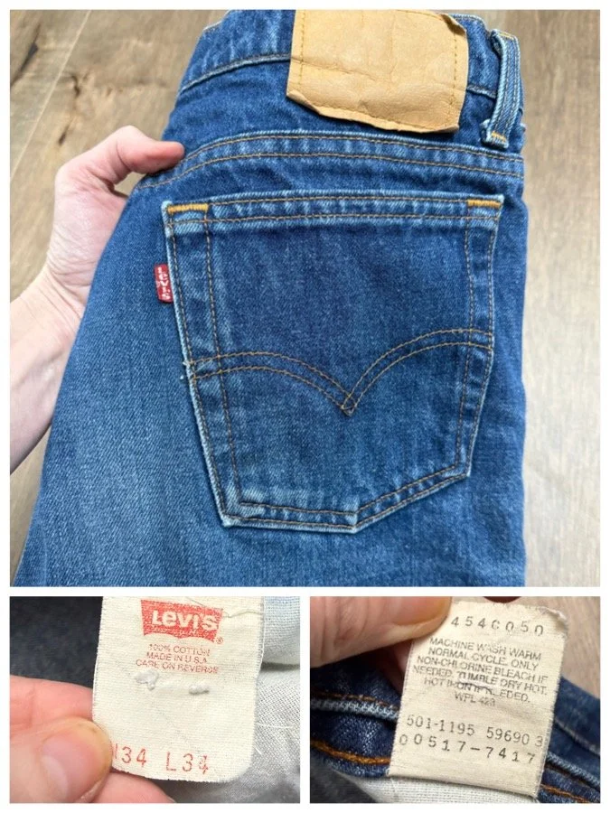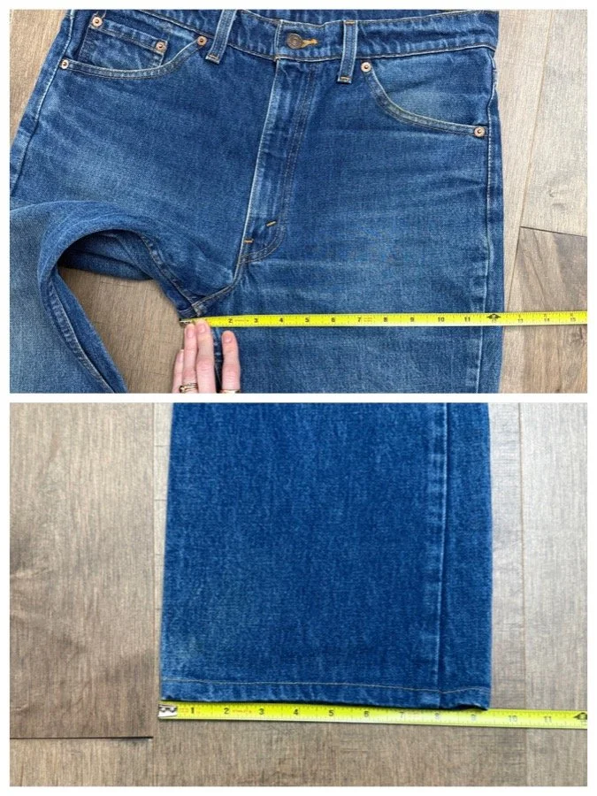 Keep in mind, vintage jeans are not new jeans. Every pair is at least 20 years old, most are older. This means they’ve been worn and likely have signs of wear - i.e. thinning areas, loose threads, signs of previous repair work, discolorations, faint (or not so faint stains), organic distressing, wear at the rivets, wear at the button holes. I do my best to describe these areas/signs of wear&tear, so please - before you buy - understand that you may receive your jeans and there will be signs of aging. Most buy vintage jeans wanting this, but if you want pristine new looking jeans, vintage likely isn’t for you. And that’s A-OK! Also note, the word “vintage” is not synonymous with super worn & faded. Vintage means over 20 years old. An item can be both vintage and still be new or like new condition.