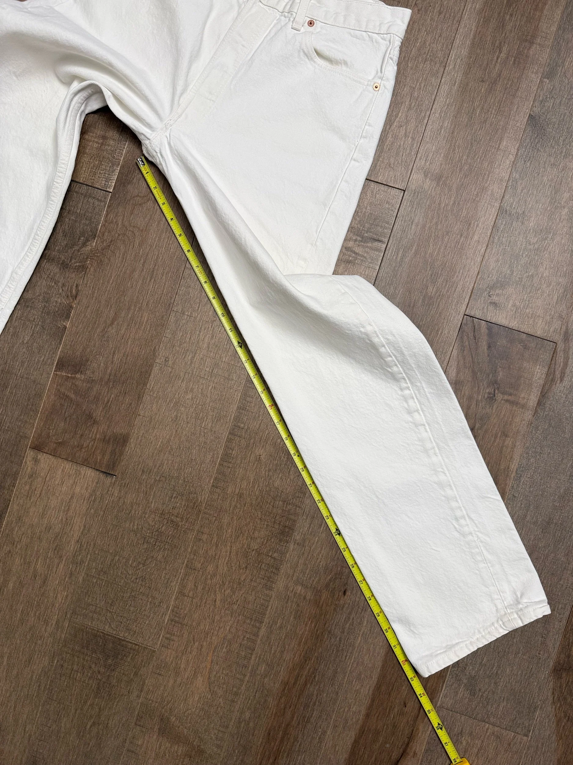 Sold as is. Keep in mind, vintage jeans are not new jeans. Every pair is at least 20 years old, most are older. This means they’ve been worn and likely have signs of wear - i.e. thinning areas, loose threads, signs of previous repair work, discolorations, faint (or not so faint stains), organic distressing, wear at the rivets, wear at the button holes. I do my best to describe these areas/signs of wear&tear, so please - before you buy - understand that you may receive your jeans and there will be signs of aging. Most buy vintage jeans wanting this, but if you want pristine new looking jeans, vintage likely isn’t for you. And that’s A-OK! Also note, the word “vintage” is not synonymous with super worn & faded. Vintage means over 20 years old. An item can be both vintage and still be new or like new condition.