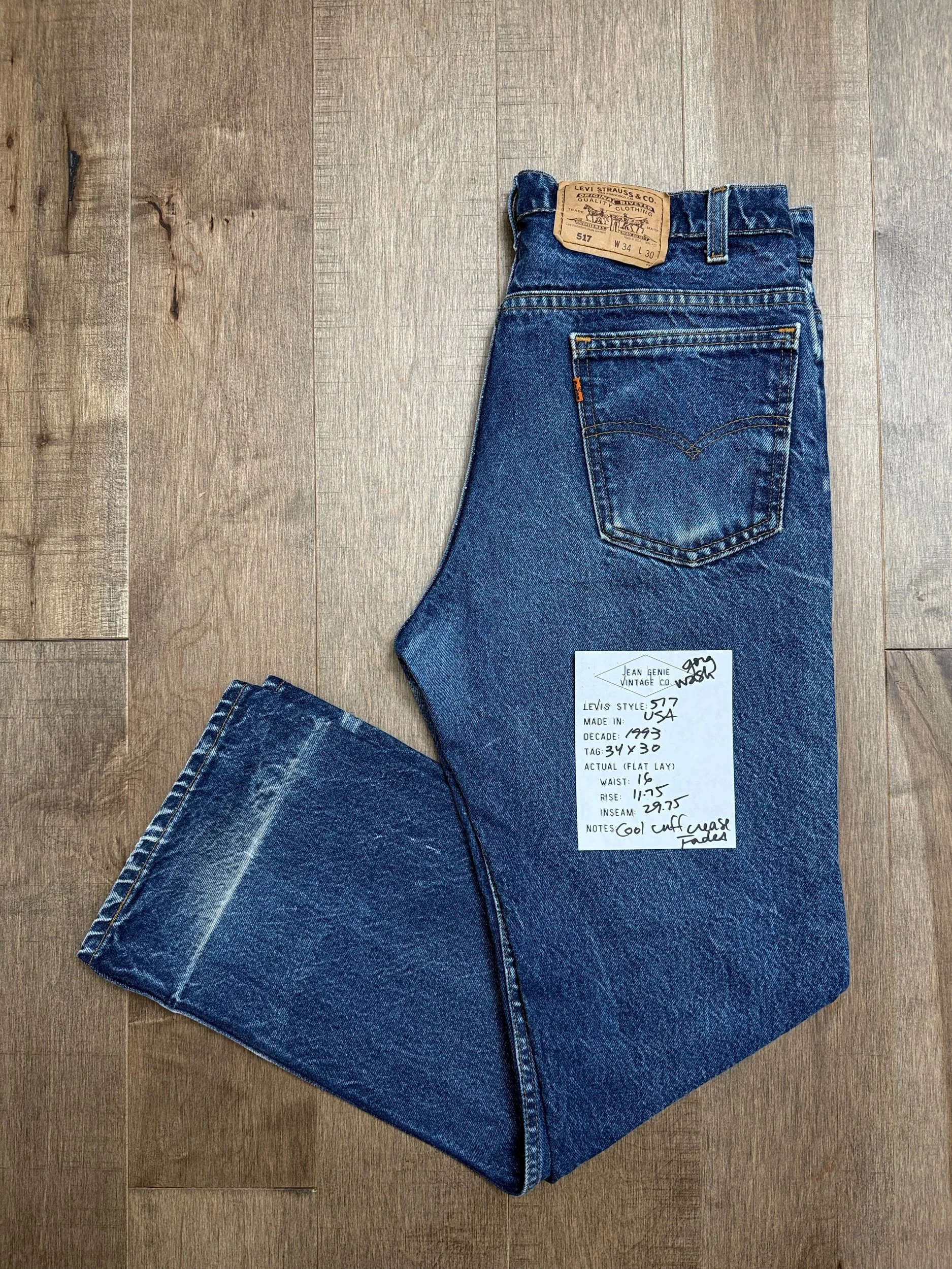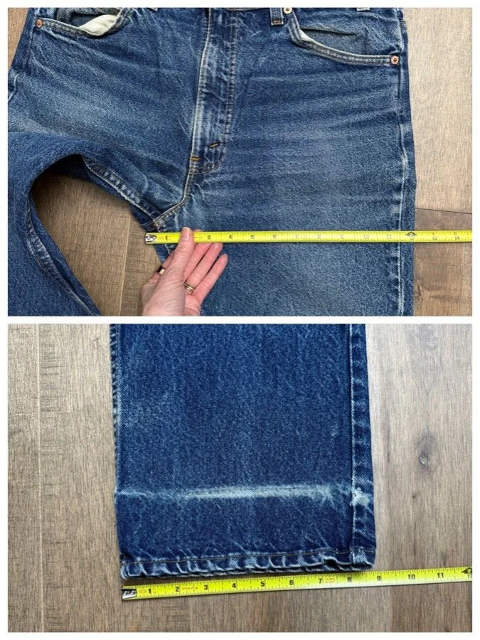 Keep in mind, vintage jeans are not new jeans. Every pair is at least 20 years old, most are older. This means they’ve been worn and likely have signs of wear - i.e. thinning areas, loose threads, signs of previous repair work, discolorations, faint (or not so faint stains), organic distressing, wear at the rivets, wear at the button holes. I do my best to describe these areas/signs of wear&tear, so please - before you buy - understand that you may receive your jeans and there will be signs of aging. Most buy vintage jeans wanting this, but if you want pristine new looking jeans, vintage likely isn’t for you. And that’s A-OK! Also note, the word “vintage” is not synonymous with super worn & faded. Vintage means over 20 years old. An item can be both vintage and still be new or like new condition.