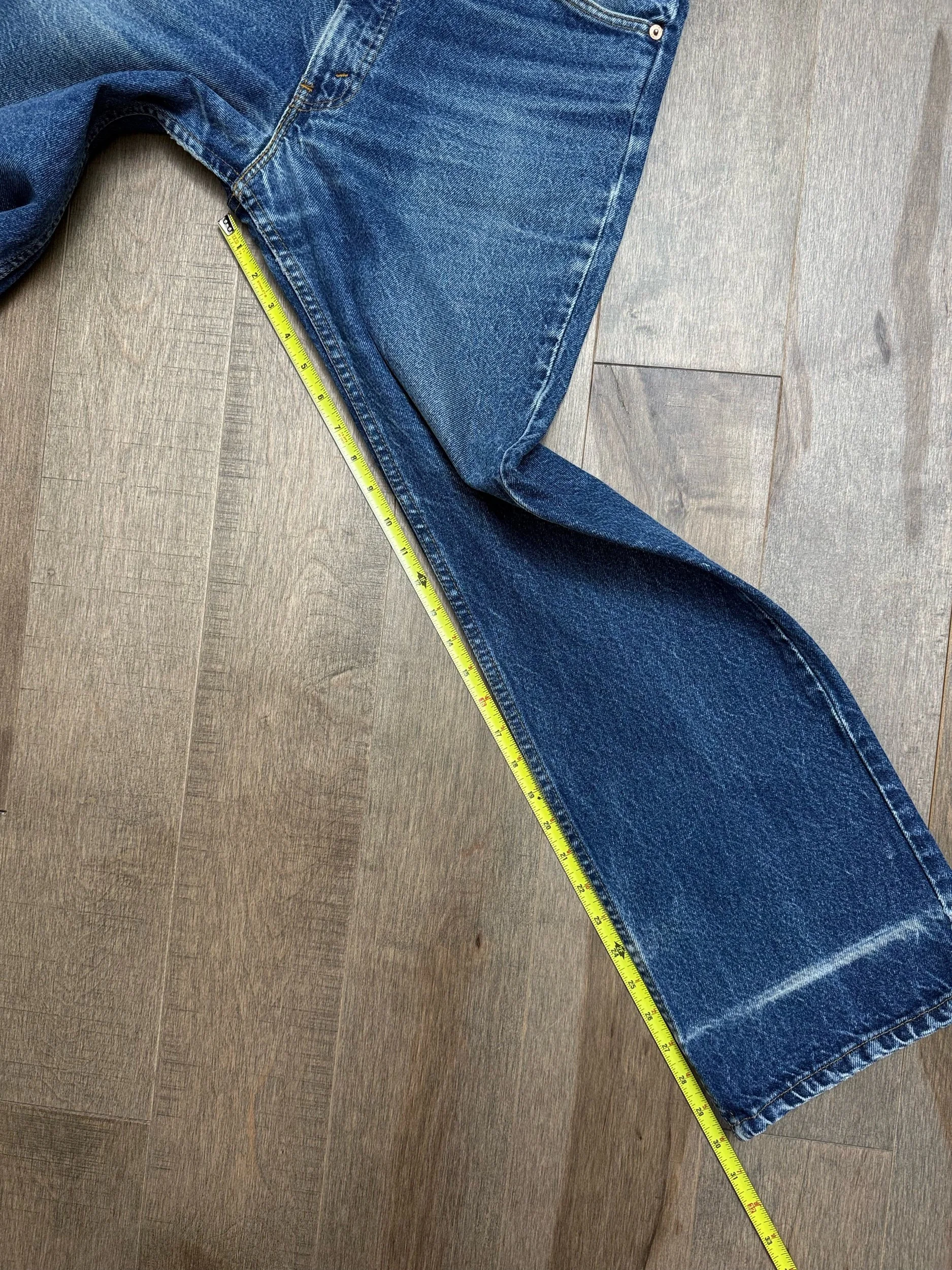 WASH: absolutely gorgeous dark blue wash with amazing organic sun fades and epic cuff crease faded