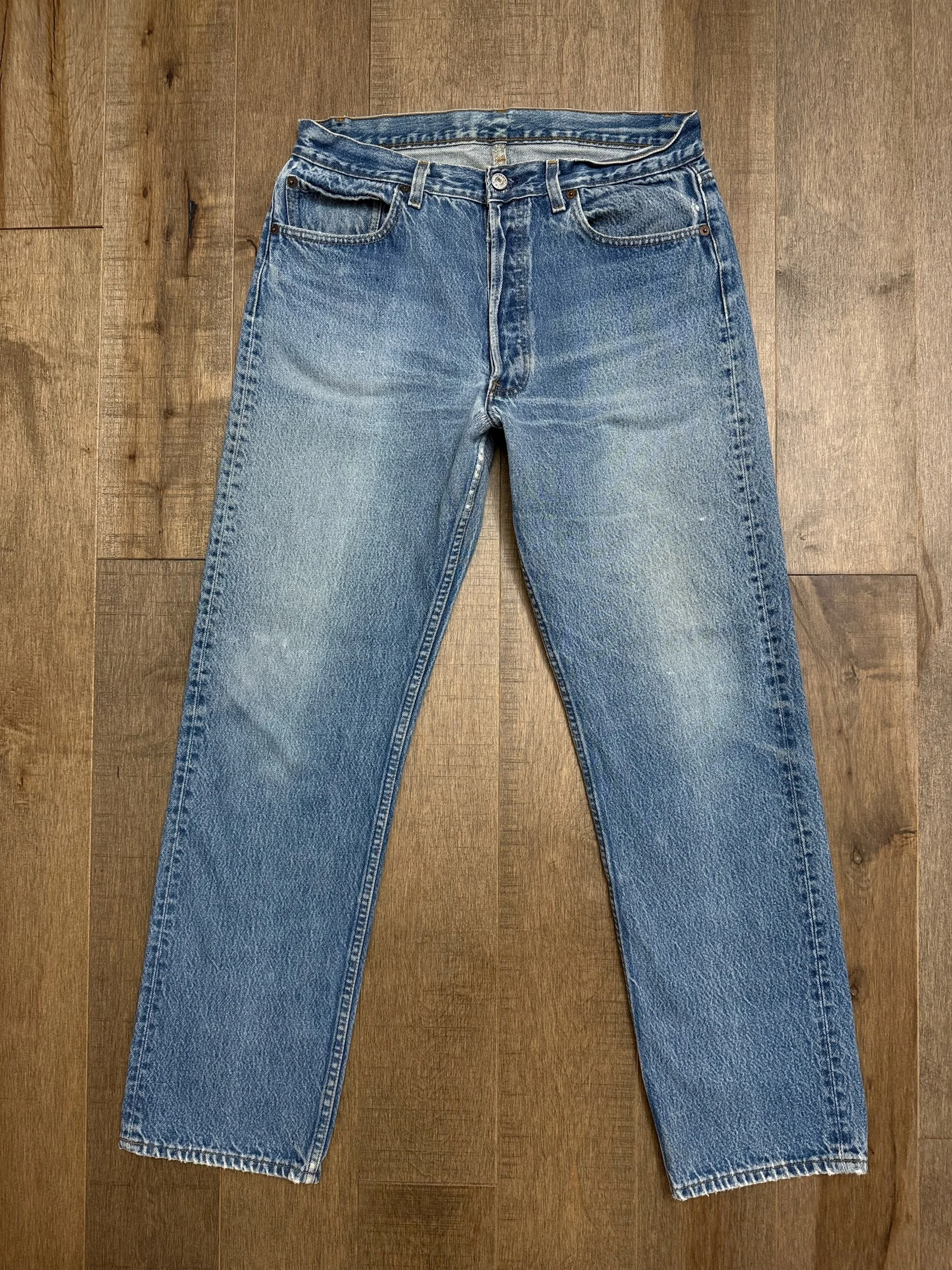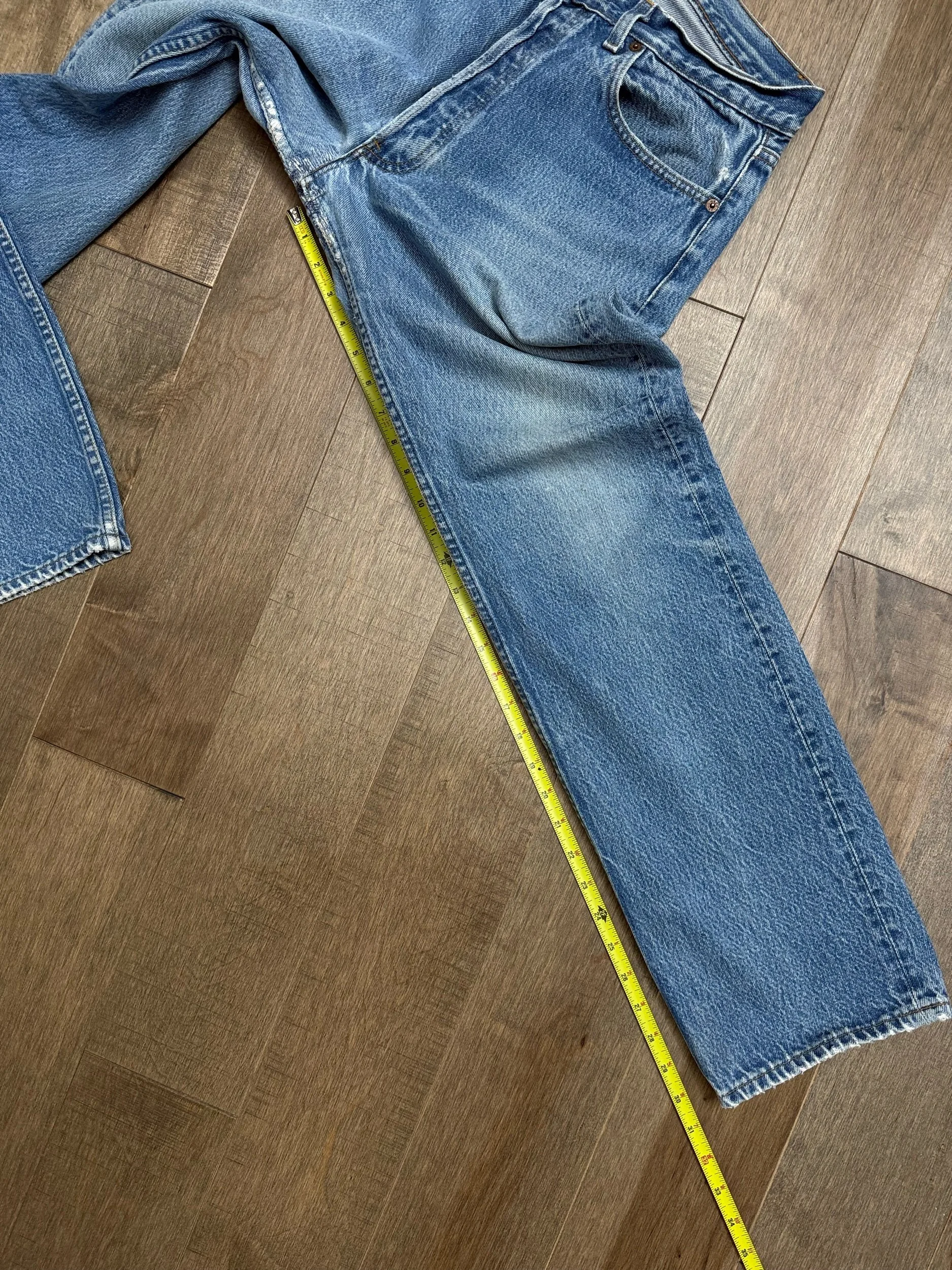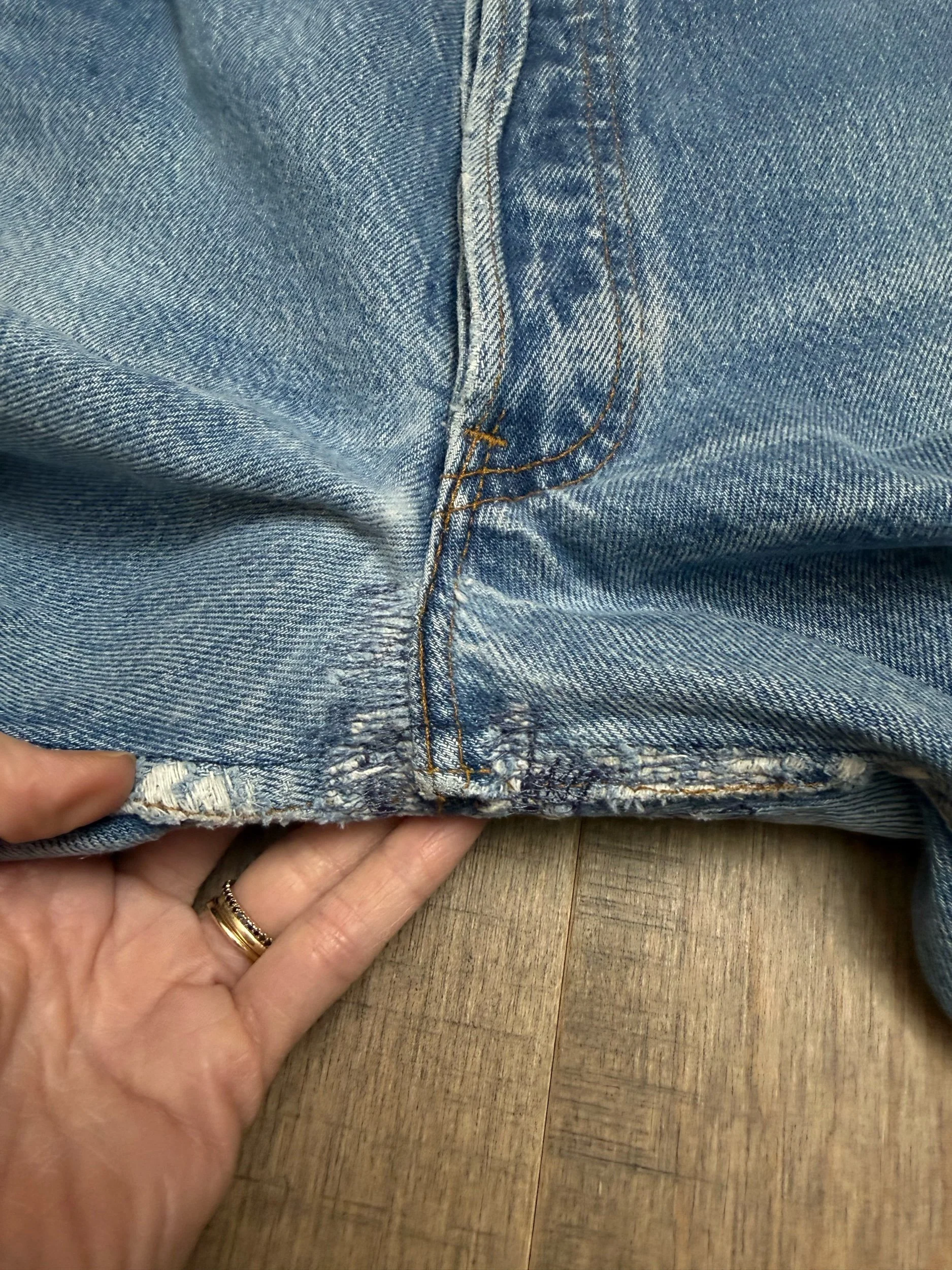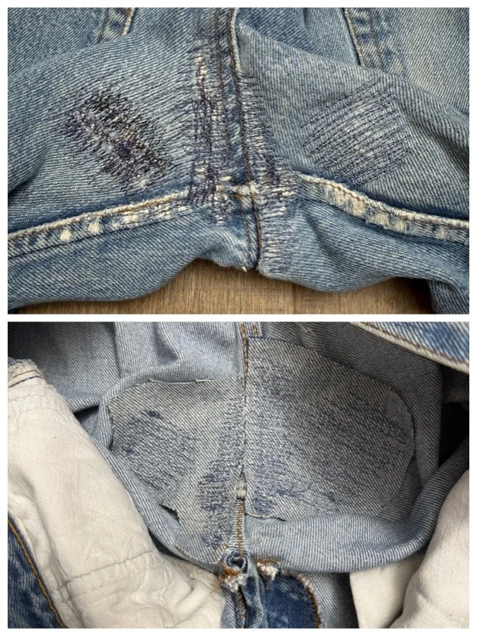 Sold as is. Keep in mind, vintage jeans are not new jeans. Every pair is at least 20 years old, most are older. This means they’ve been worn and likely have signs of wear - i.e. thinning areas, loose threads, signs of previous repair work, discolorations, faint (or not so faint stains), organic distressing, wear at the rivets, wear at the button holes. I do my best to describe these areas/signs of wear&tear, so please - before you buy - understand that you may receive your jeans and there will be signs of aging. Most buy vintage jeans wanting this, but if you want pristine new looking jeans, vintage likely isn’t for you. And that’s A-OK! Also note, the word “vintage” is not synonymous with super worn & faded. Vintage means over 20 years old. An item can be both vintage and still be new or like new condition.