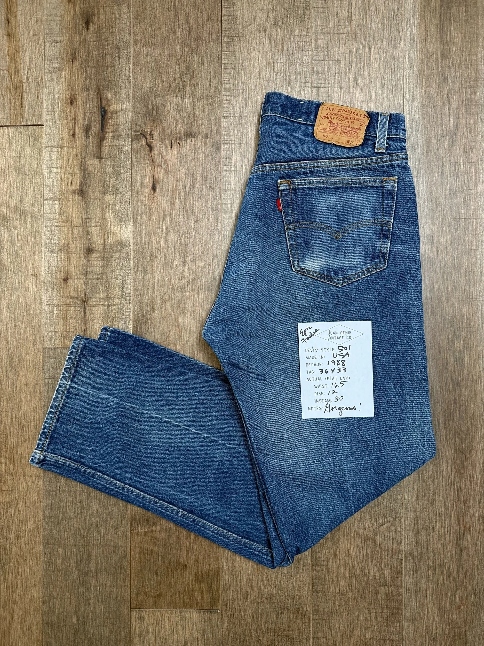 Sold as is. Keep in mind, vintage jeans are not new jeans. Every pair is at least 20 years old, most are older. This means they’ve been worn and likely have signs of wear - i.e. thinning areas, loose threads, signs of previous repair work, discolorations, faint (or not so faint stains), organic distressing, wear at the rivets, wear at the button holes. I do my best to describe these areas/signs of wear&tear, so please - before you buy - understand that you may receive your jeans and there will be signs of aging. Most buy vintage jeans wanting this, but if you want pristine new looking jeans, vintage likely isn’t for you. And that’s A-OK! Also note, the word “vintage” is not synonymous with super worn & faded. Vintage means over 20 years old. An item can be both vintage and still be new or like new condition.