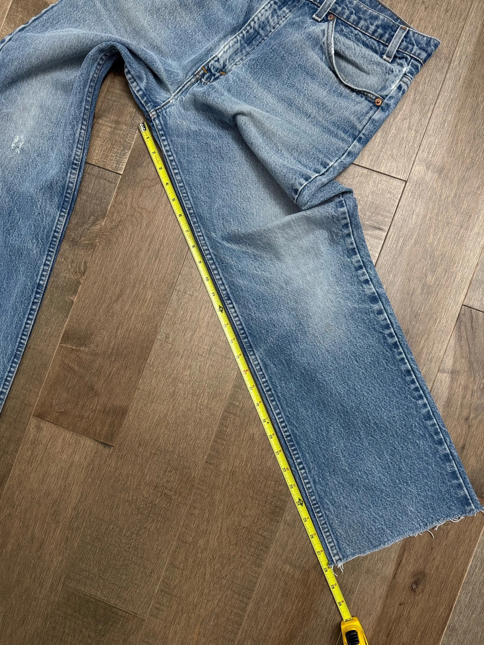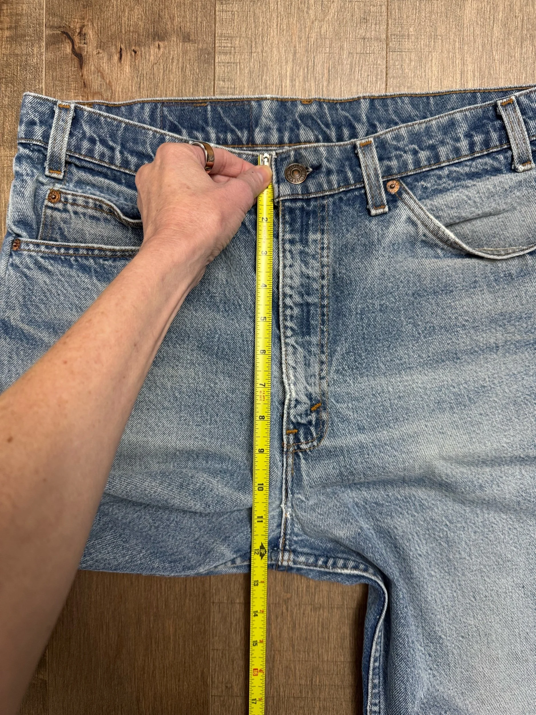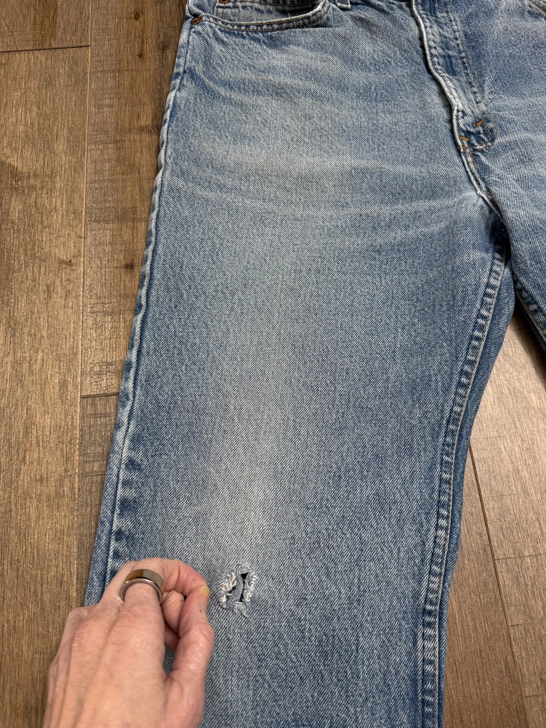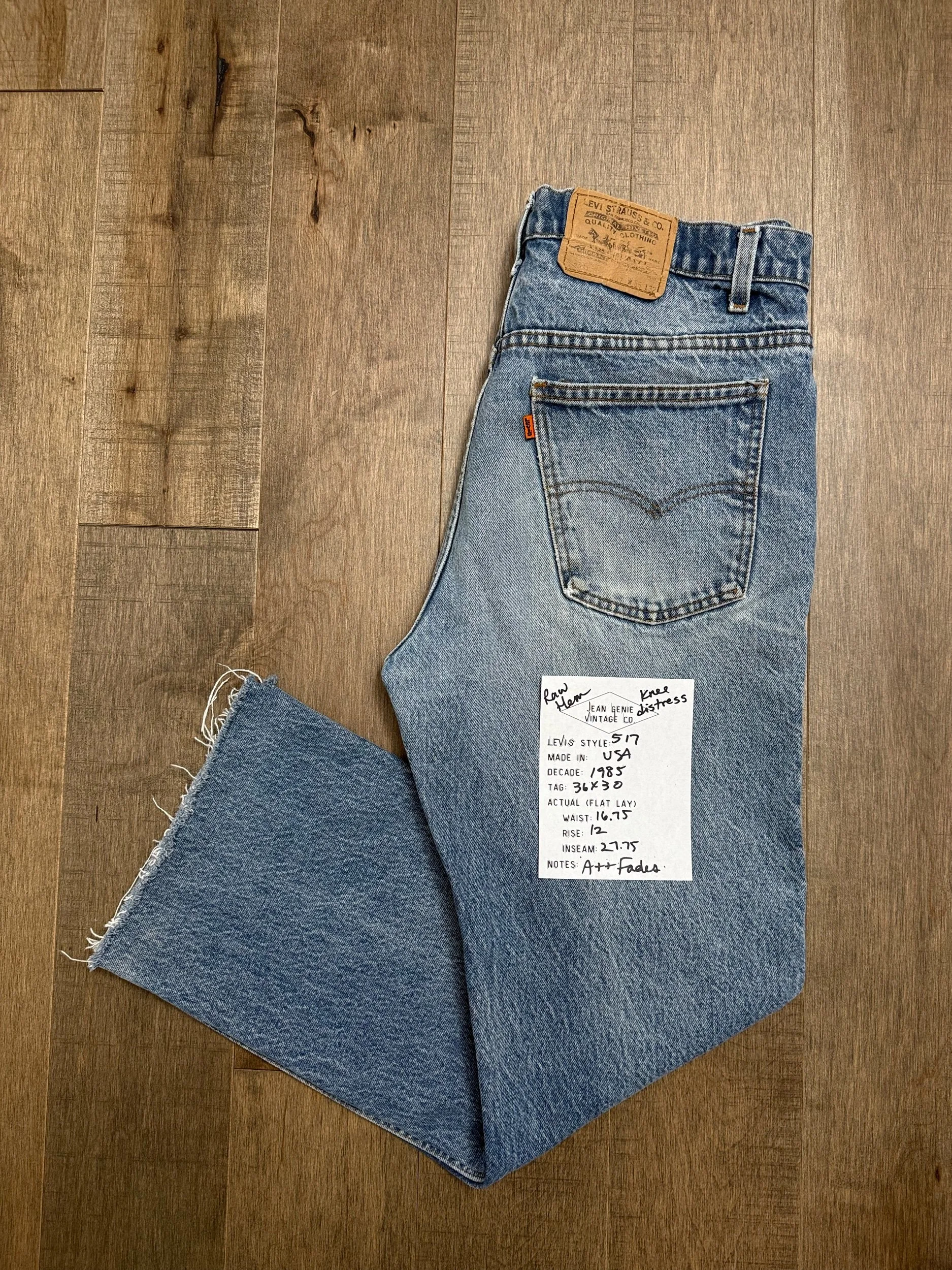 Keep in mind, vintage jeans are not new jeans. Every pair is at least 20 years old, most are older. This means they’ve been worn and likely have signs of wear - i.e. thinning areas, loose threads, signs of previous repair work, discolorations, faint (or not so faint stains), organic distressing, wear at the rivets, wear at the button holes. I do my best to describe these areas/signs of wear&tear, so please - before you buy - understand that you may receive your jeans and there will be signs of aging. Most buy vintage jeans wanting this, but if you want pristine new looking jeans, vintage likely isn’t for you. And that’s A-OK! Also note, the word “vintage” is not synonymous with super worn & faded. Vintage means over 20 years old. An item can be both vintage and still be new or like new condition.