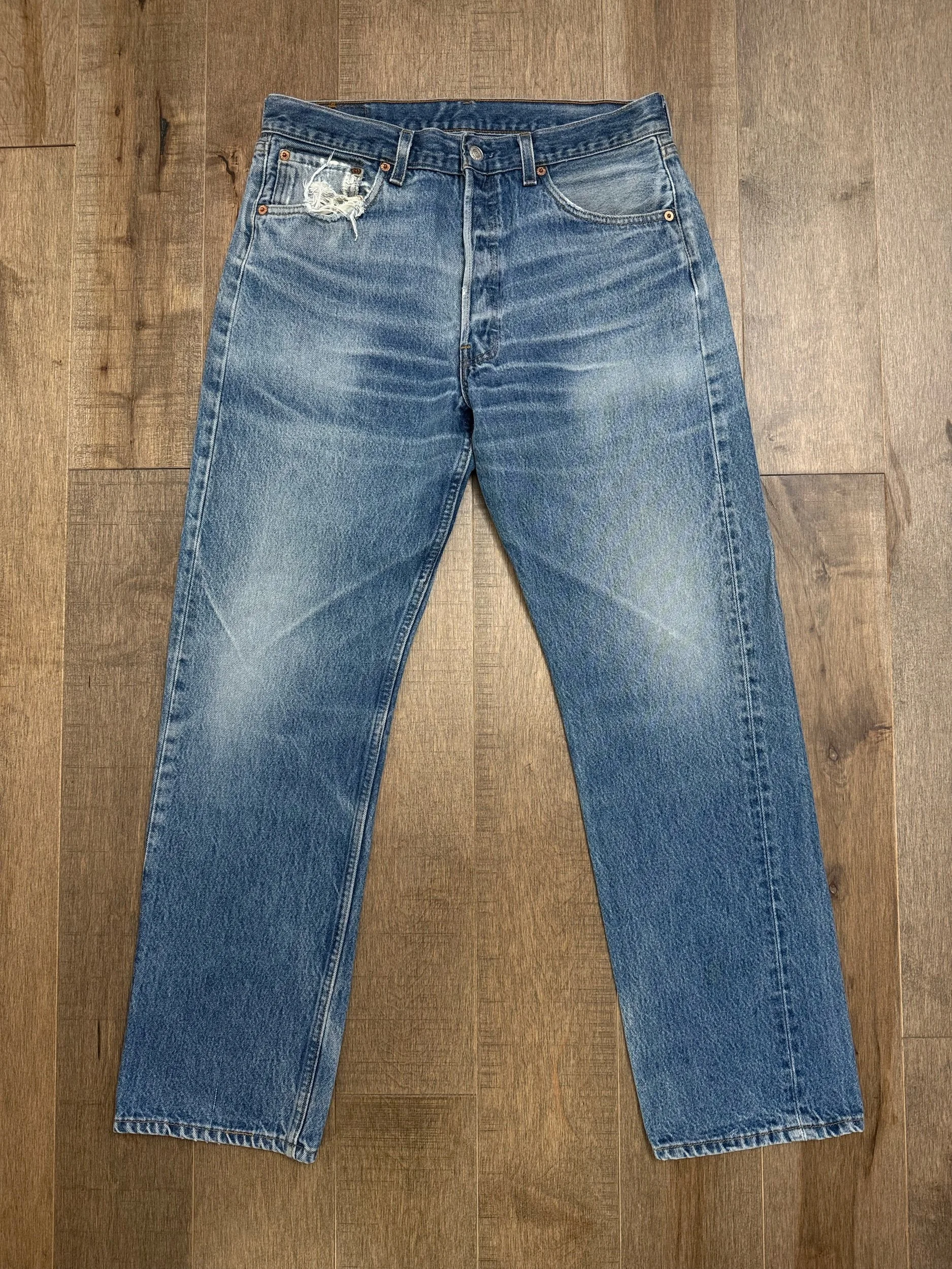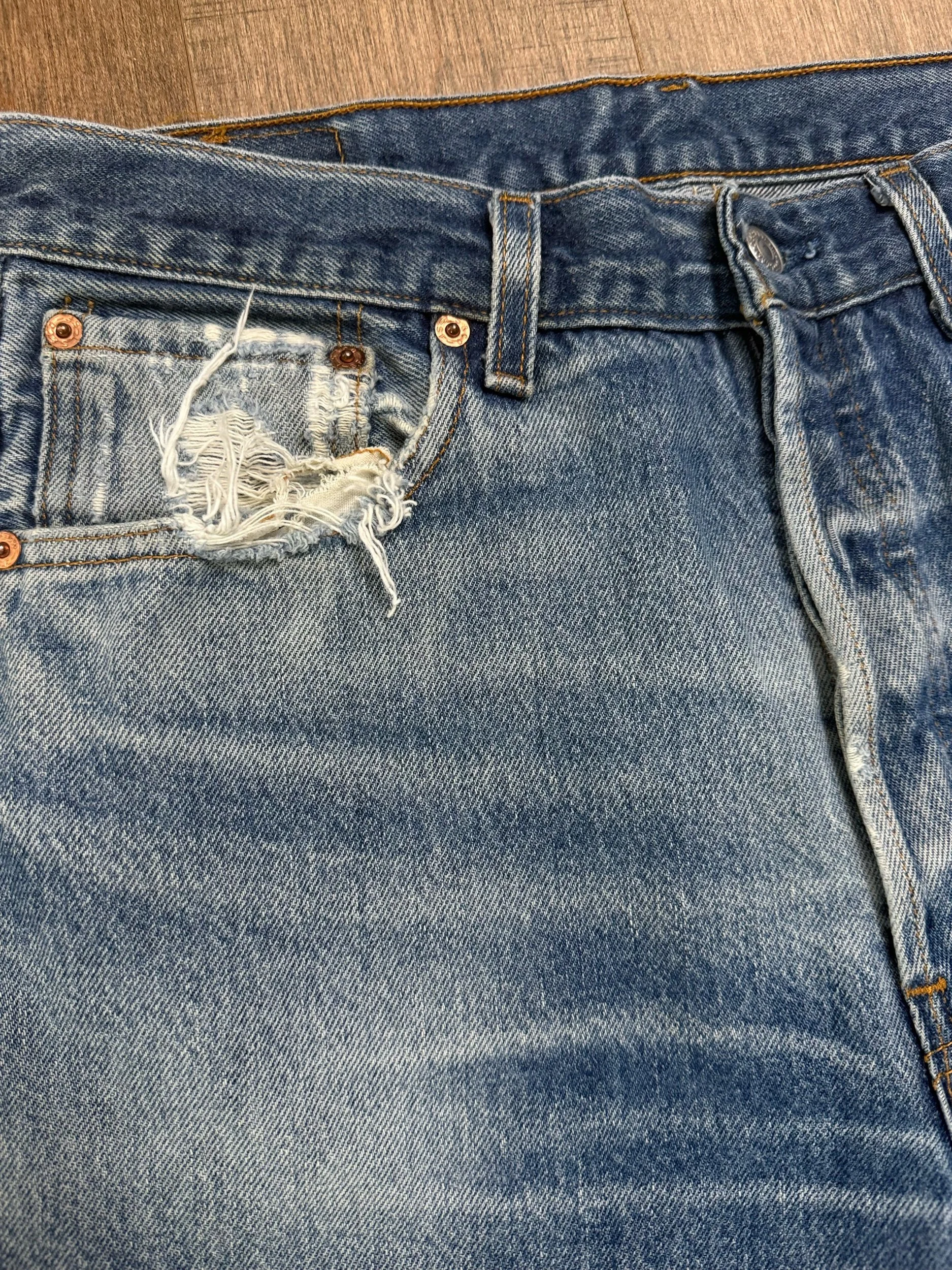 Sold as is. Keep in mind, vintage jeans are not new jeans. Every pair is at least 20 years old, most are older. This means they’ve been worn and likely have signs of wear - i.e. thinning areas, loose threads, signs of previous repair work, discolorations, faint (or not so faint stains), organic distressing, wear at the rivets, wear at the button holes. I do my best to describe these areas/signs of wear&tear, so please - before you buy - understand that you may receive your jeans and there will be signs of aging. Most buy vintage jeans wanting this, but if you want pristine new looking jeans, vintage likely isn’t for you. And that’s A-OK! Also note, the word “vintage” is not synonymous with super worn & faded. Vintage means over 20 years old. An item can be both vintage and still be new or like new condition.