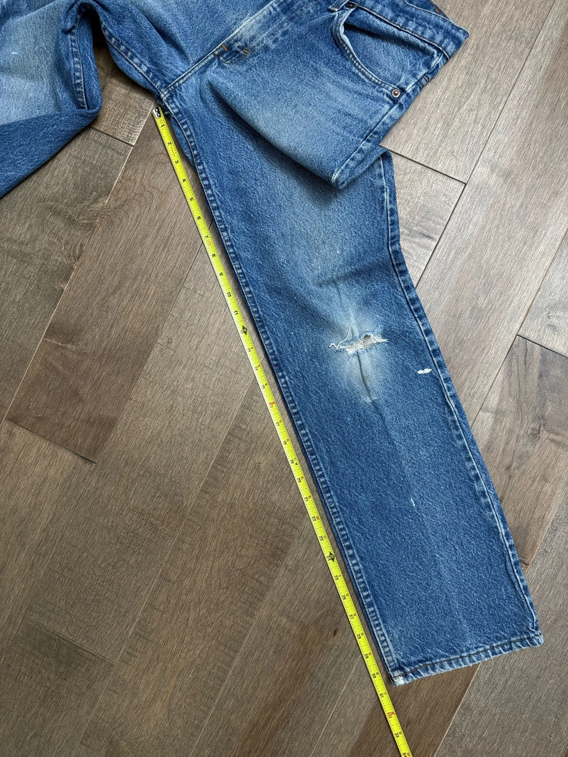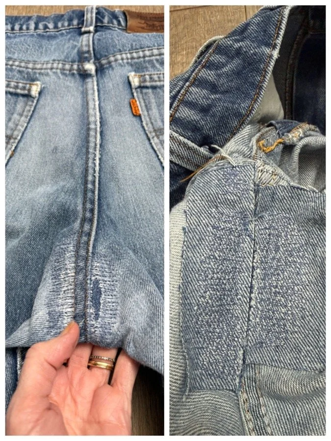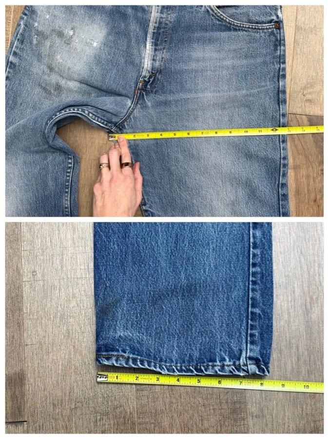 Keep in mind, vintage jeans are not new jeans. Every pair is at least 20 years old, most are older. This means they’ve been worn and likely have signs of wear - i.e. thinning areas, loose threads, signs of previous repair work, discolorations, faint (or not so faint stains), organic distressing, wear at the rivets, wear at the button holes. I do my best to describe these areas/signs of wear&tear, so please - before you buy - understand that you may receive your jeans and there will be signs of aging. Most buy vintage jeans wanting this, but if you want pristine new looking jeans, vintage likely isn’t for you. And that’s A-OK! Also note, the word “vintage” is not synonymous with super worn & faded. Vintage means over 20 years old. An item can be both vintage and still be new or like new condition.