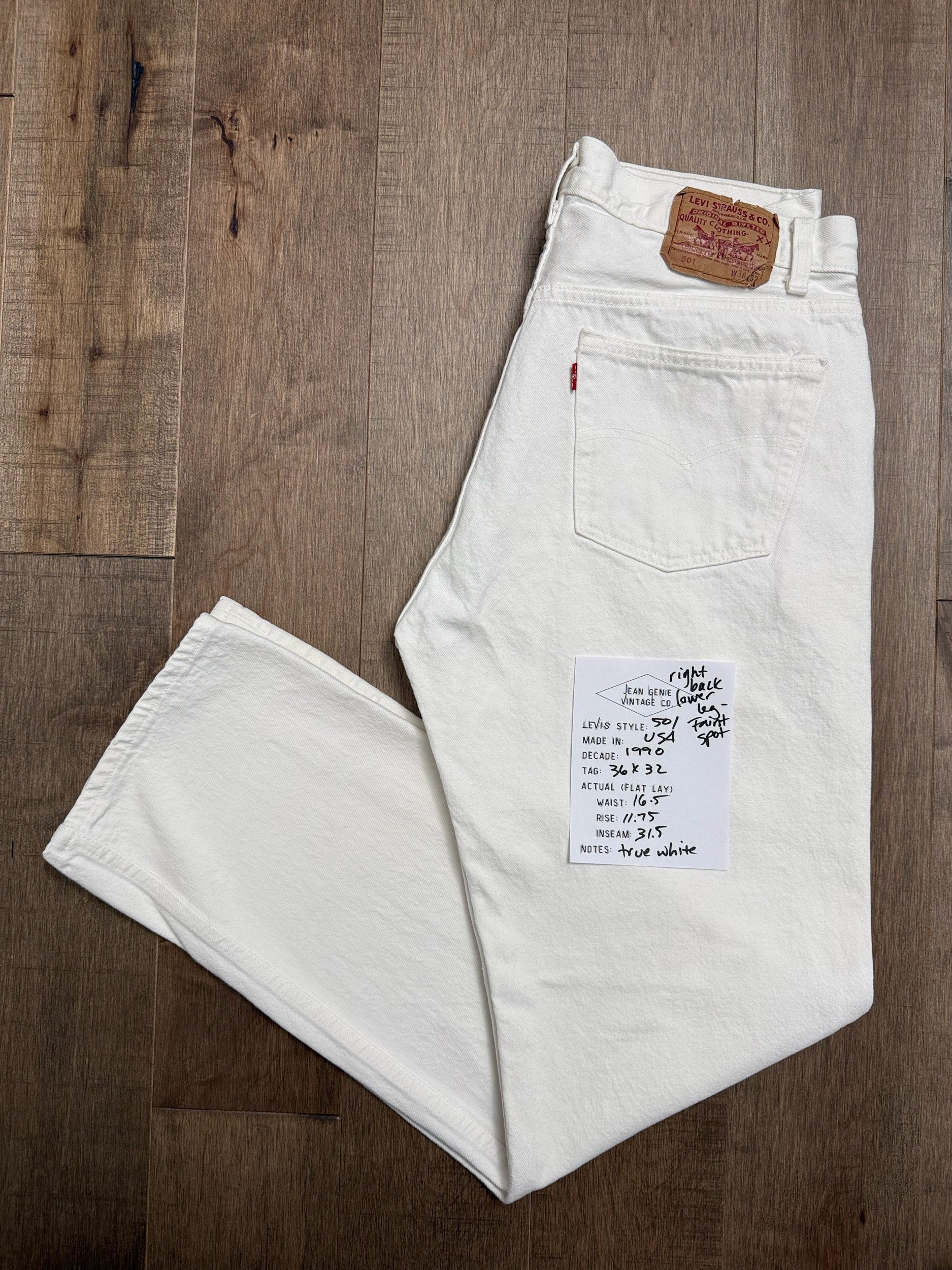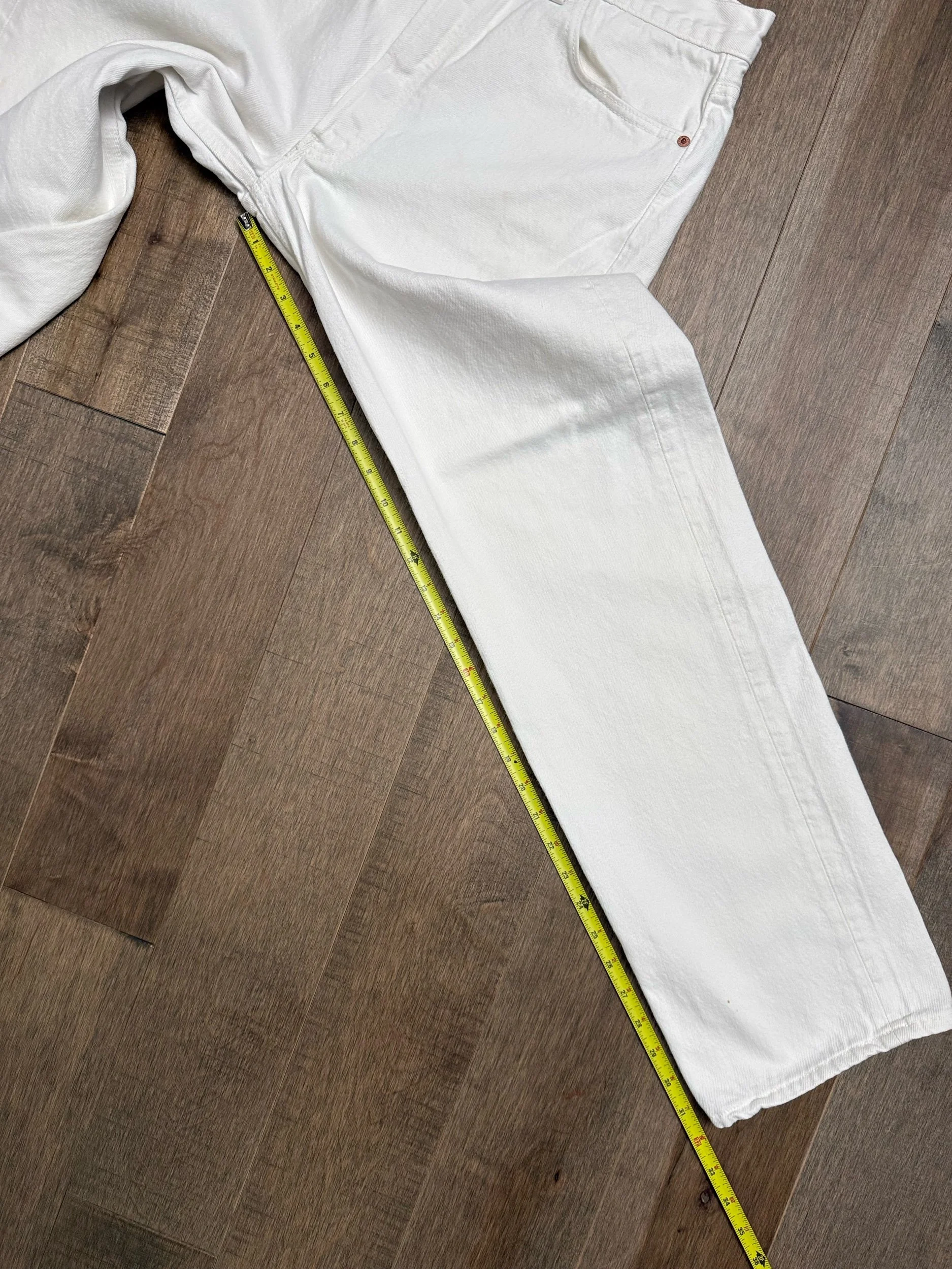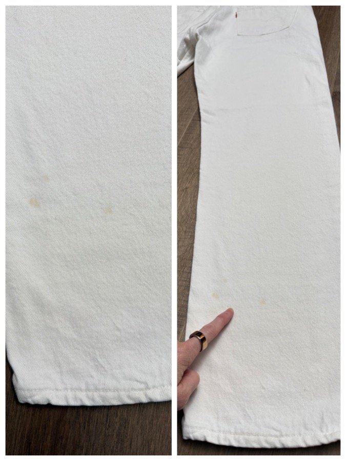 Sold as is. Keep in mind, vintage jeans are not new jeans. Every pair is at least 20 years old, most are older. This means they’ve been worn and likely have signs of wear - i.e. thinning areas, loose threads, signs of previous repair work, discolorations, faint (or not so faint stains), organic distressing, wear at the rivets, wear at the button holes. I do my best to describe these areas/signs of wear&tear, so please - before you buy - understand that you may receive your jeans and there will be signs of aging. Most buy vintage jeans wanting this, but if you want pristine new looking jeans, vintage likely isn’t for you. And that’s A-OK! Also note, the word “vintage” is not synonymous with super worn & faded. Vintage means over 20 years old. An item can be both vintage and still be new or like new condition.