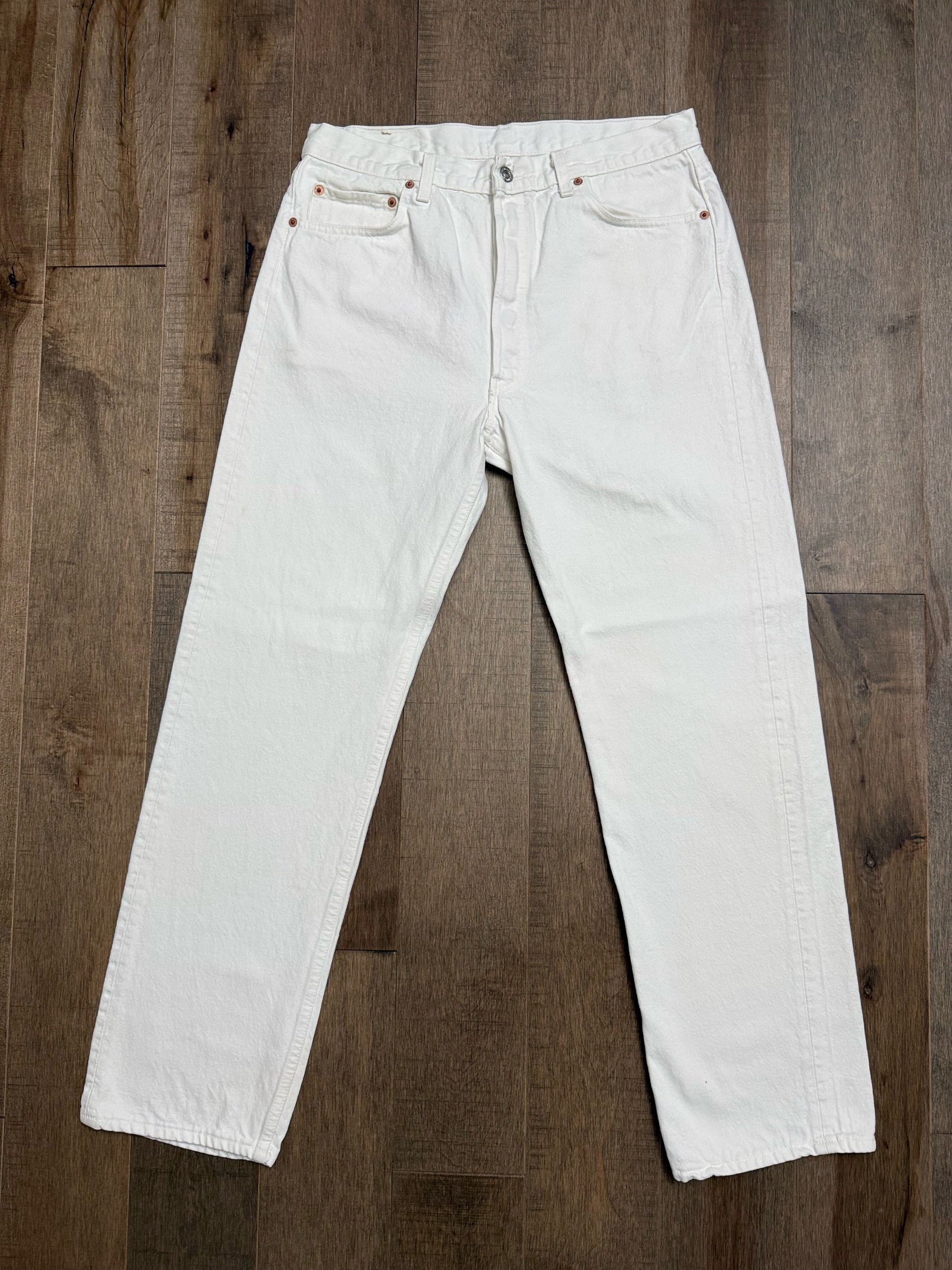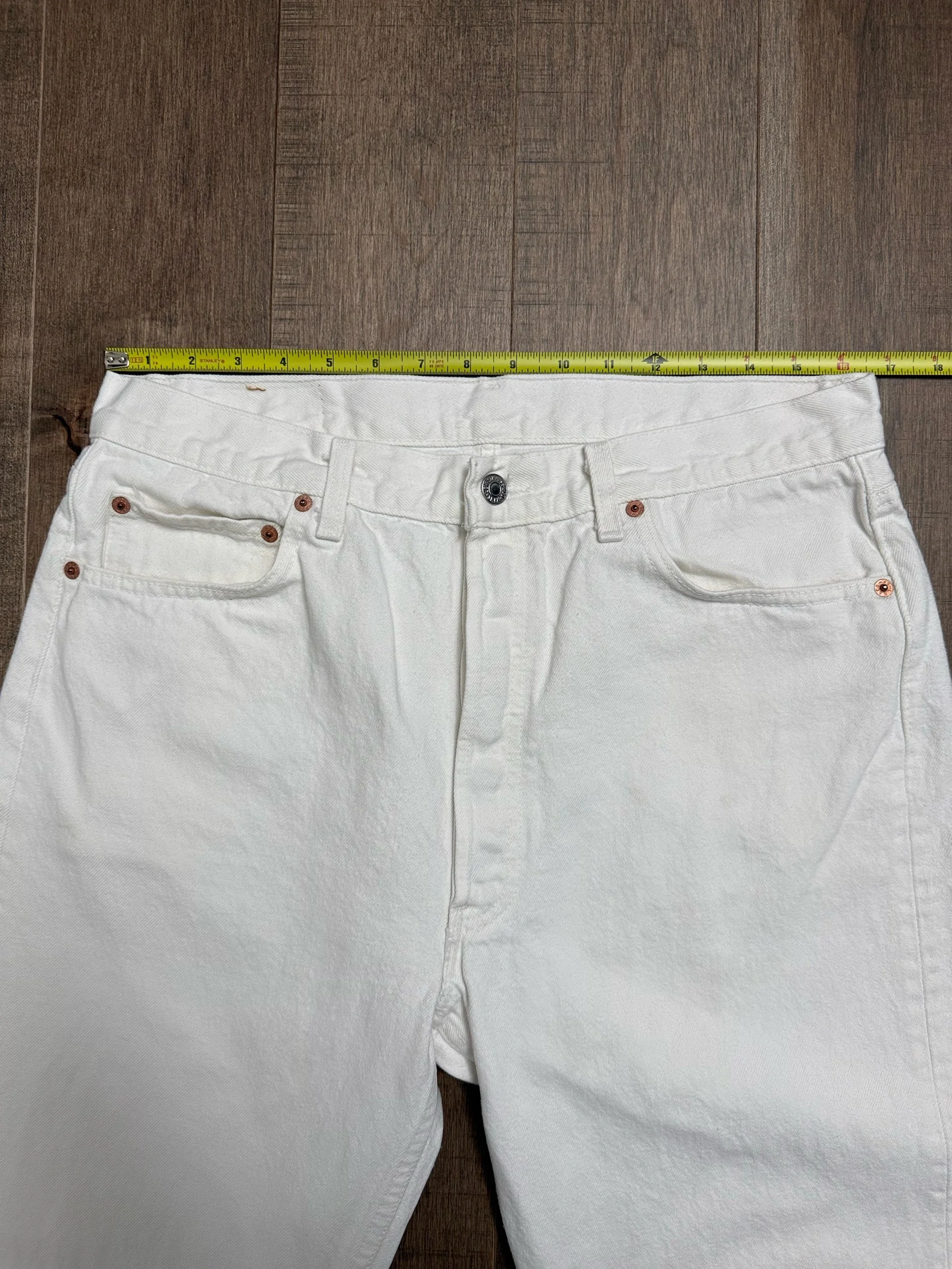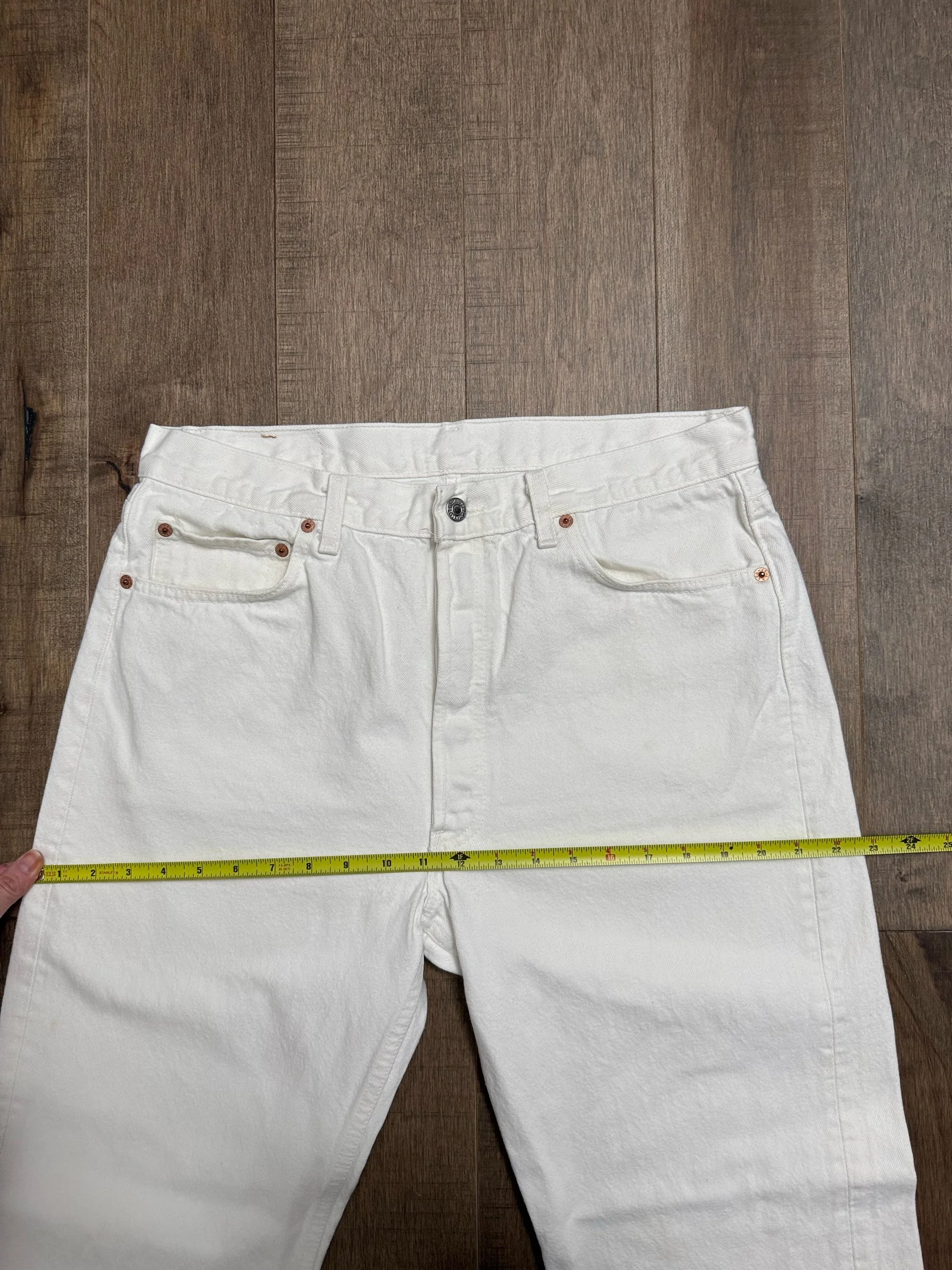 Sold as is. Keep in mind, vintage jeans are not new jeans. Every pair is at least 20 years old, most are older. This means they’ve been worn and likely have signs of wear - i.e. thinning areas, loose threads, signs of previous repair work, discolorations, faint (or not so faint stains), organic distressing, wear at the rivets, wear at the button holes. I do my best to describe these areas/signs of wear&tear, so please - before you buy - understand that you may receive your jeans and there will be signs of aging. Most buy vintage jeans wanting this, but if you want pristine new looking jeans, vintage likely isn’t for you. And that’s A-OK! Also note, the word “vintage” is not synonymous with super worn & faded. Vintage means over 20 years old. An item can be both vintage and still be new or like new condition.