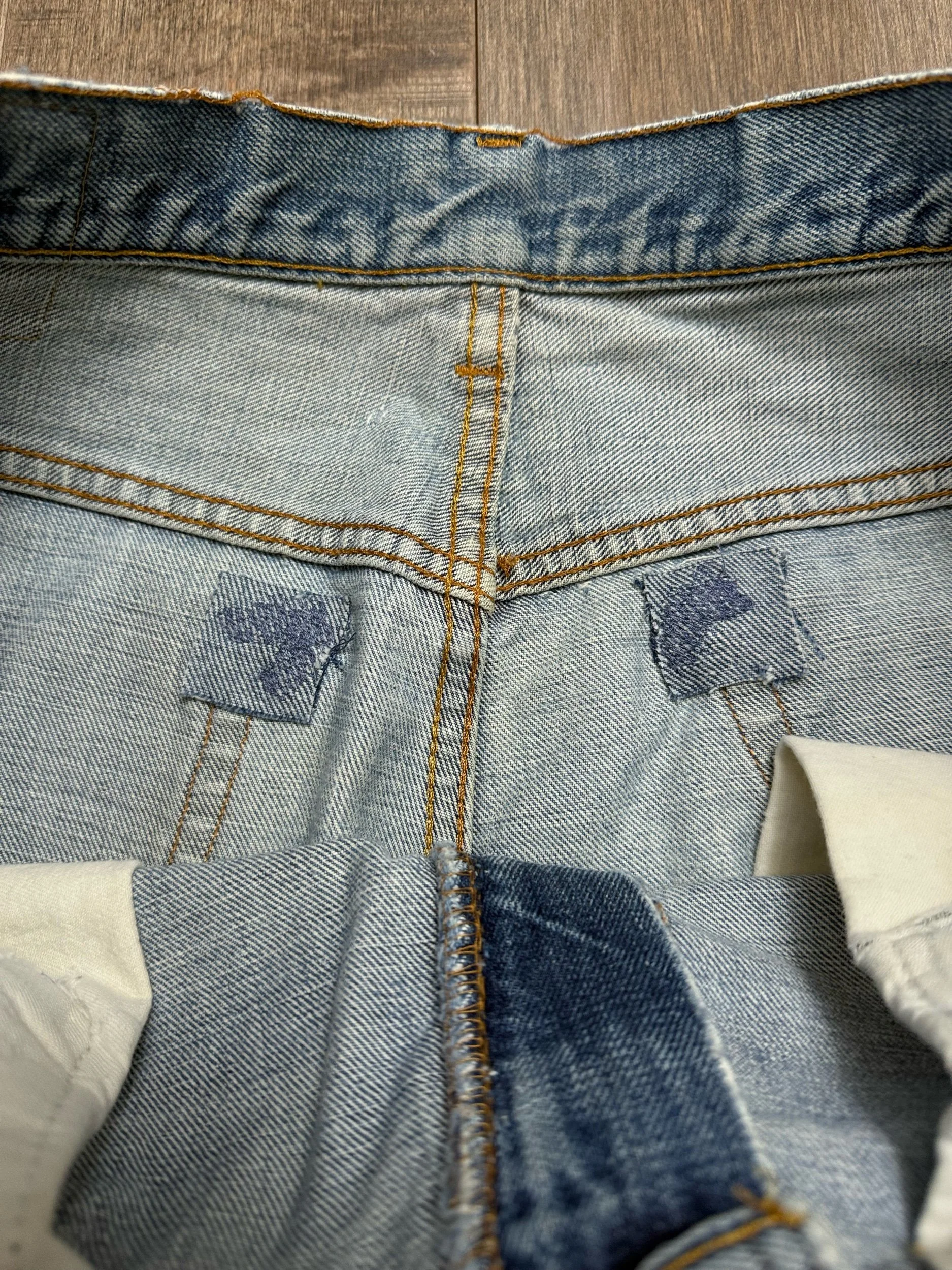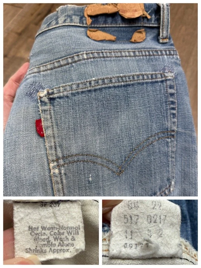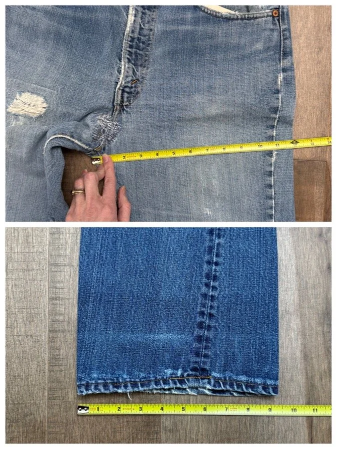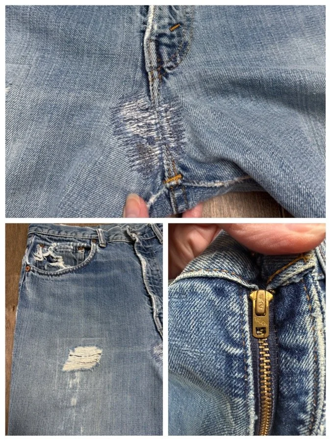 Keep in mind, vintage jeans are not new jeans. Every pair is at least 20 years old, most are older. This means they’ve been worn and likely have signs of wear - i.e. thinning areas, loose threads, signs of previous repair work, discolorations, faint (or not so faint stains), organic distressing, wear at the rivets, wear at the button holes. I do my best to describe these areas/signs of wear&tear, so please - before you buy - understand that you may receive your jeans and there will be signs of aging. Most buy vintage jeans wanting this, but if you want pristine new looking jeans, vintage likely isn’t for you. And that’s A-OK! Also note, the word “vintage” is not synonymous with super worn & faded. Vintage means over 20 years old. An item can be both vintage and still be new or like new condition.