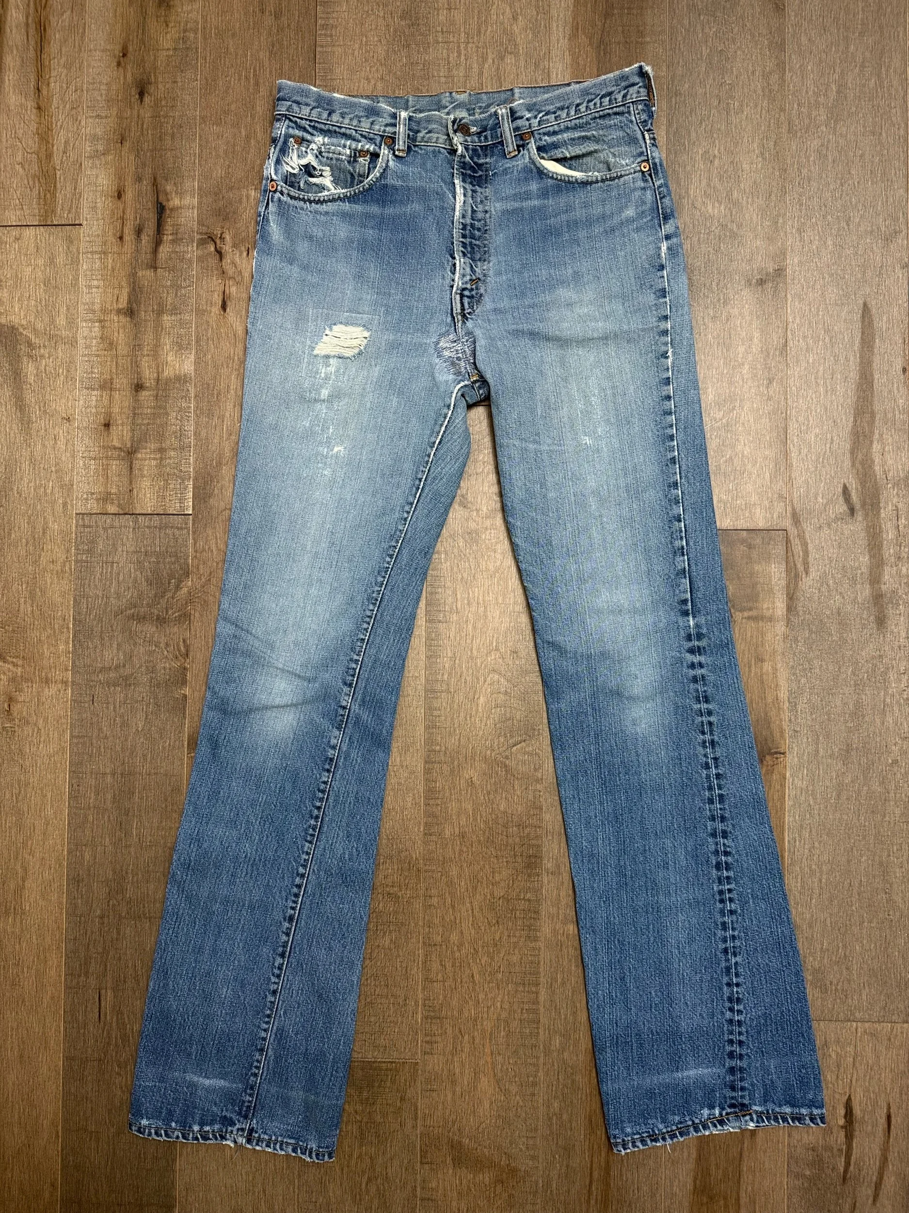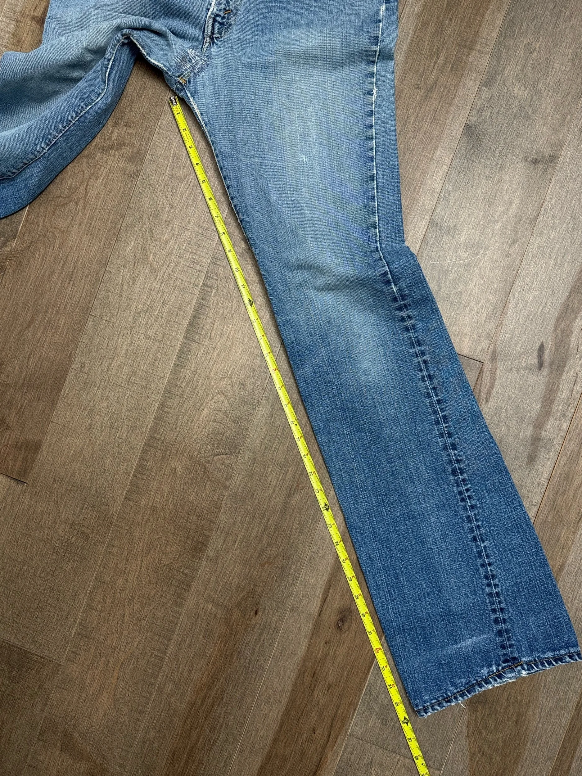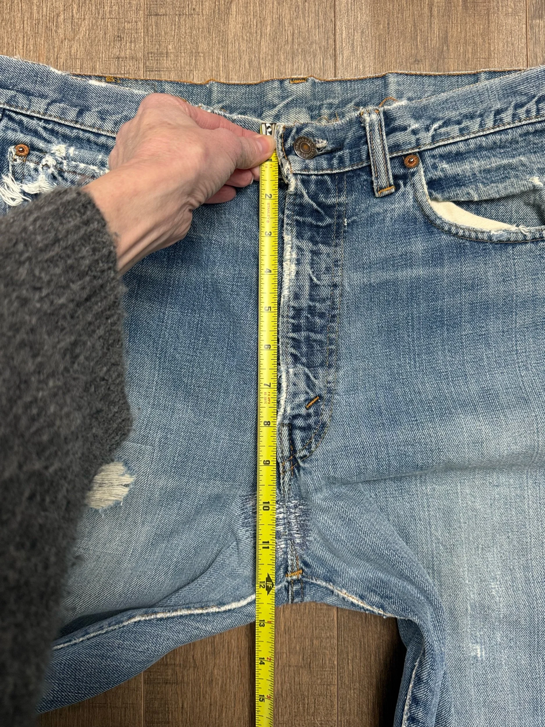 Keep in mind, vintage jeans are not new jeans. Every pair is at least 20 years old, most are older. This means they’ve been worn and likely have signs of wear - i.e. thinning areas, loose threads, signs of previous repair work, discolorations, faint (or not so faint stains), organic distressing, wear at the rivets, wear at the button holes. I do my best to describe these areas/signs of wear&tear, so please - before you buy - understand that you may receive your jeans and there will be signs of aging. Most buy vintage jeans wanting this, but if you want pristine new looking jeans, vintage likely isn’t for you. And that’s A-OK! Also note, the word “vintage” is not synonymous with super worn & faded. Vintage means over 20 years old. An item can be both vintage and still be new or like new condition.