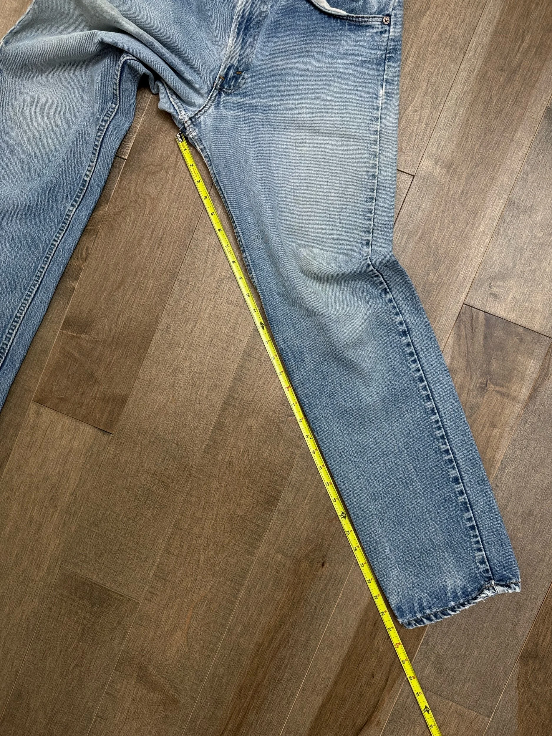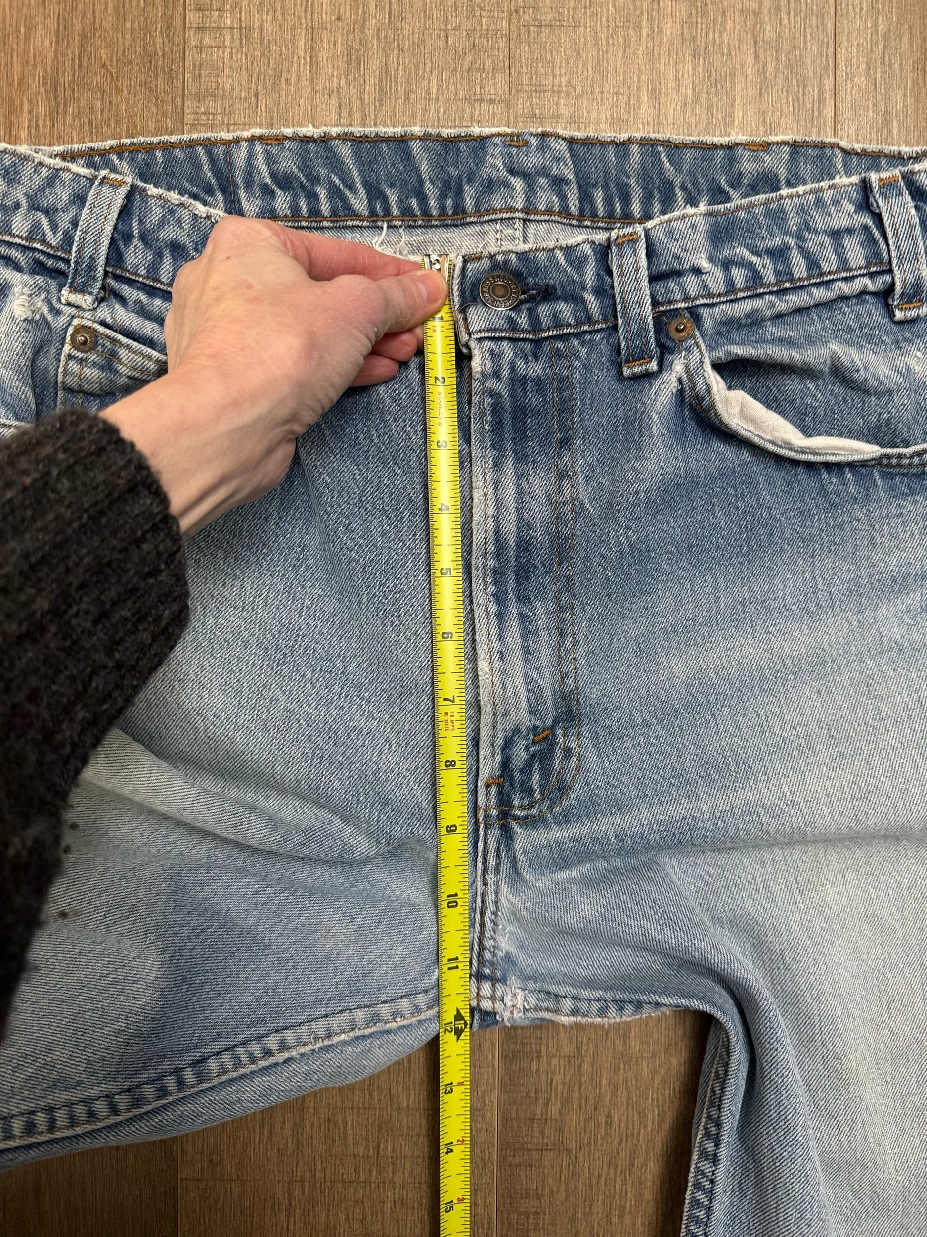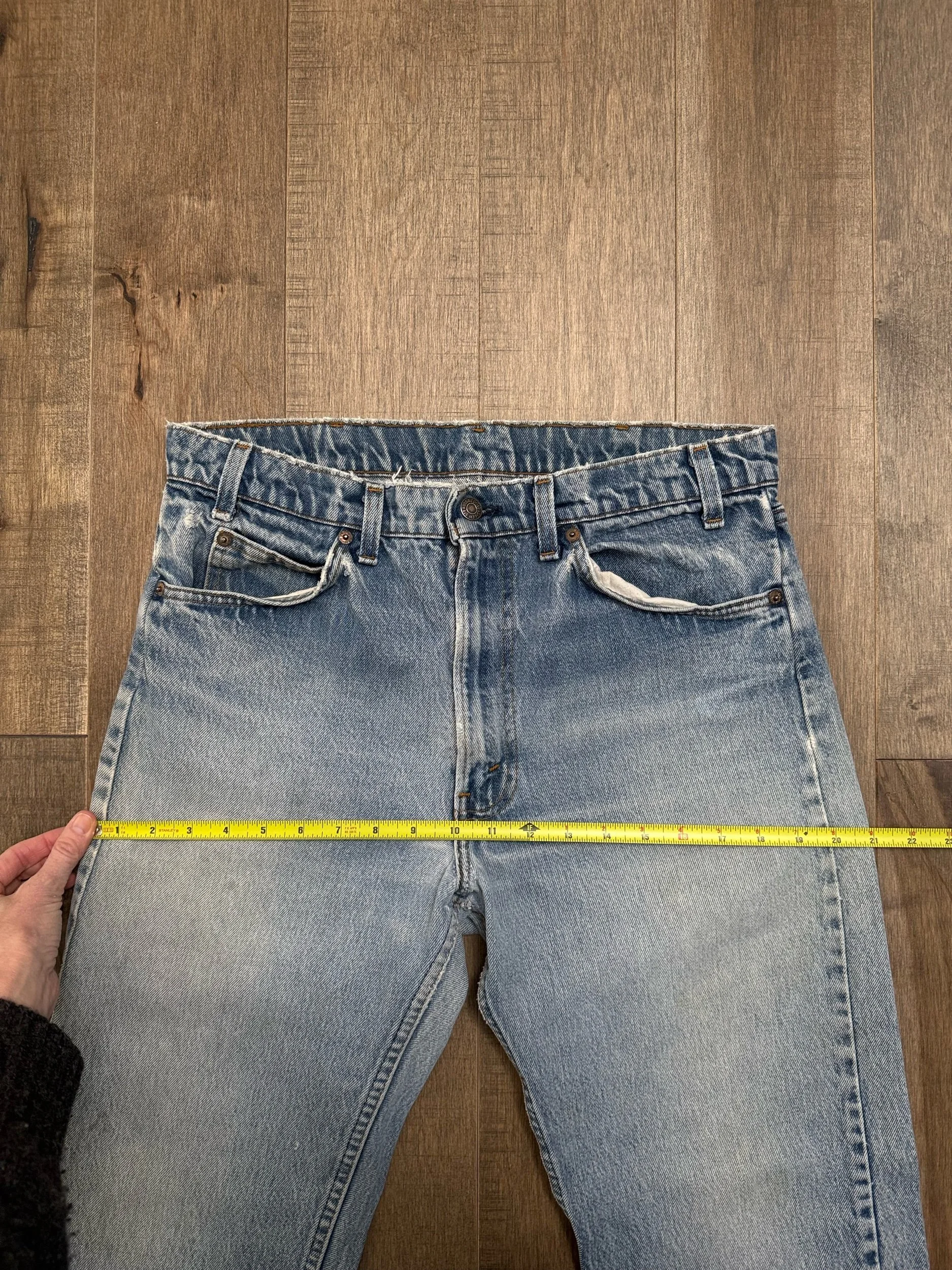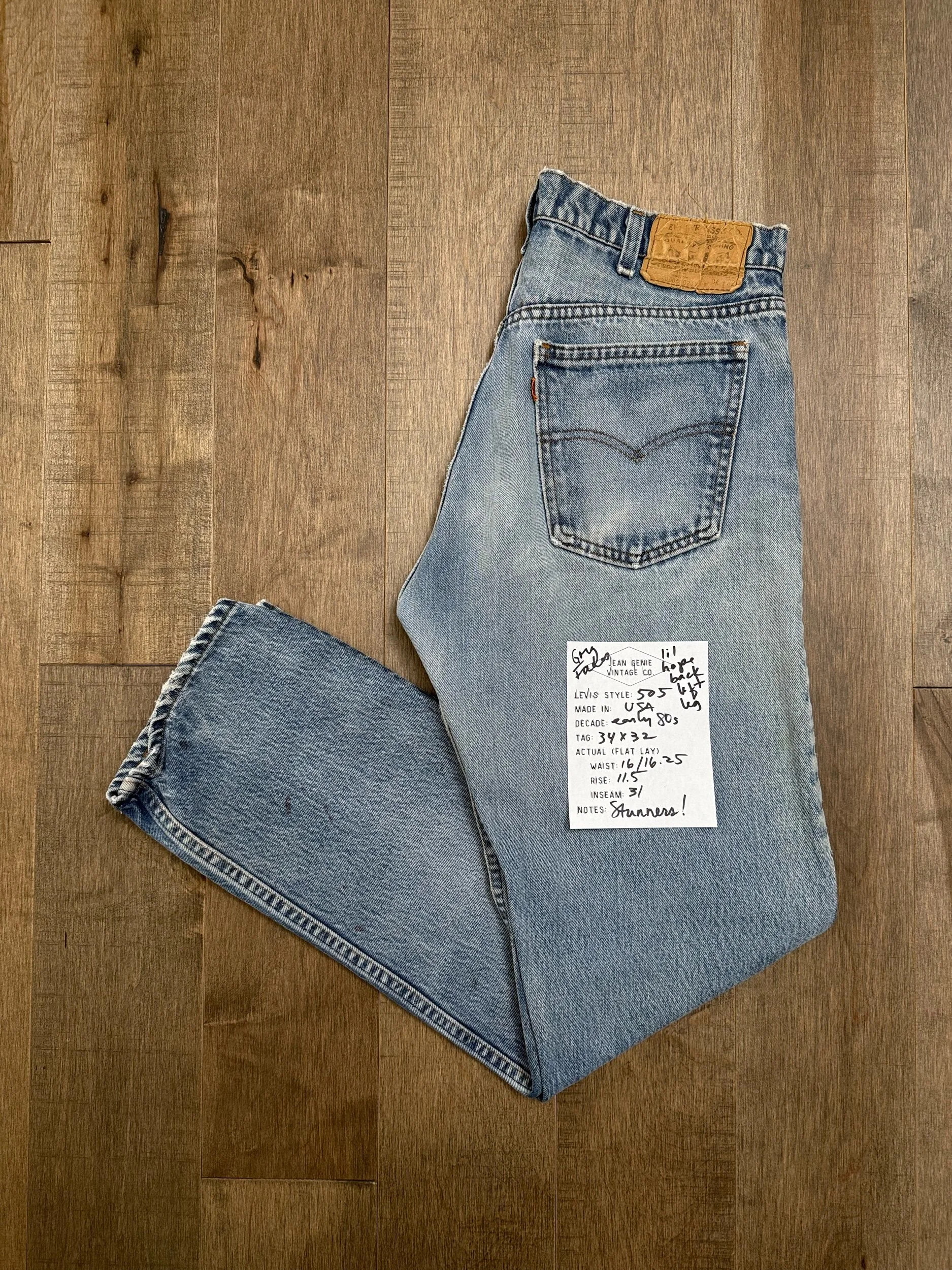Keep in mind, vintage jeans are not new jeans. Every pair is at least 20 years old, most are older. This means they’ve been worn and likely have signs of wear - i.e. thinning areas, loose threads, signs of previous repair work, discolorations, faint (or not so faint stains), organic distressing, wear at the rivets, wear at the button holes. I do my best to describe these areas/signs of wear&tear, so please - before you buy - understand that you may receive your jeans and there will be signs of aging. Most buy vintage jeans wanting this, but if you want pristine new looking jeans, vintage likely isn’t for you. And that’s A-OK! Also note, the word “vintage” is not synonymous with super worn & faded. Vintage means over 20 years old. An item can be both vintage and still be new or like new condition.