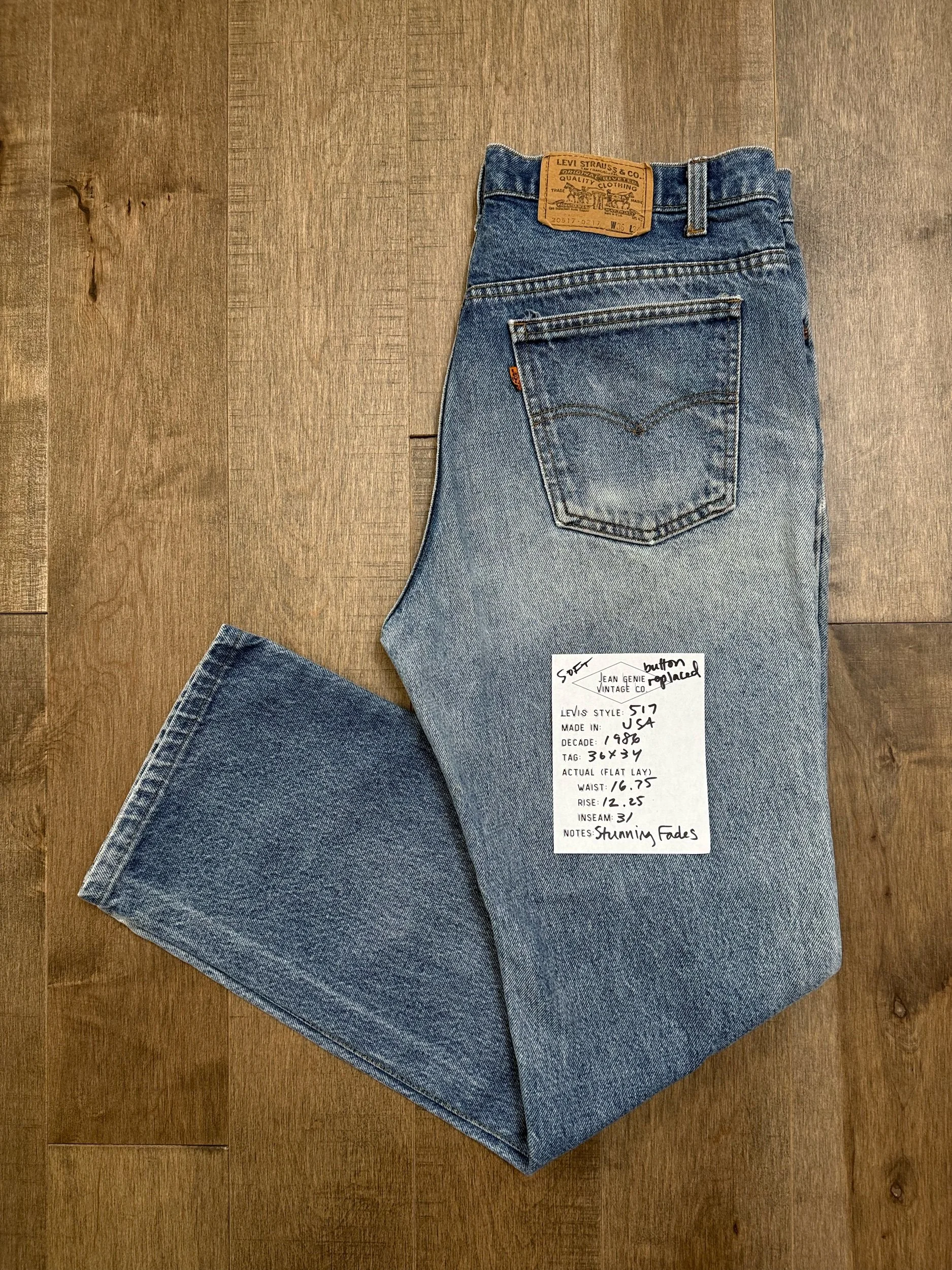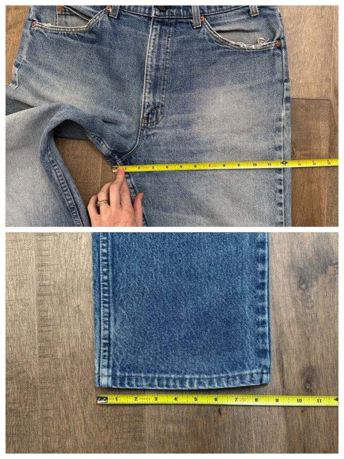Keep in mind, vintage jeans are not new jeans. Every pair is at least 20 years old, most are older. This means they’ve been worn and likely have signs of wear - i.e. thinning areas, loose threads, signs of previous repair work, discolorations, faint (or not so faint stains), organic distressing, wear at the rivets, wear at the button holes. I do my best to describe these areas/signs of wear&tear, so please - before you buy - understand that you may receive your jeans and there will be signs of aging. Most buy vintage jeans wanting this, but if you want pristine new looking jeans, vintage likely isn’t for you. And that’s A-OK! Also note, the word “vintage” is not synonymous with super worn & faded. Vintage means over 20 years old. An item can be both vintage and still be new or like new condition.