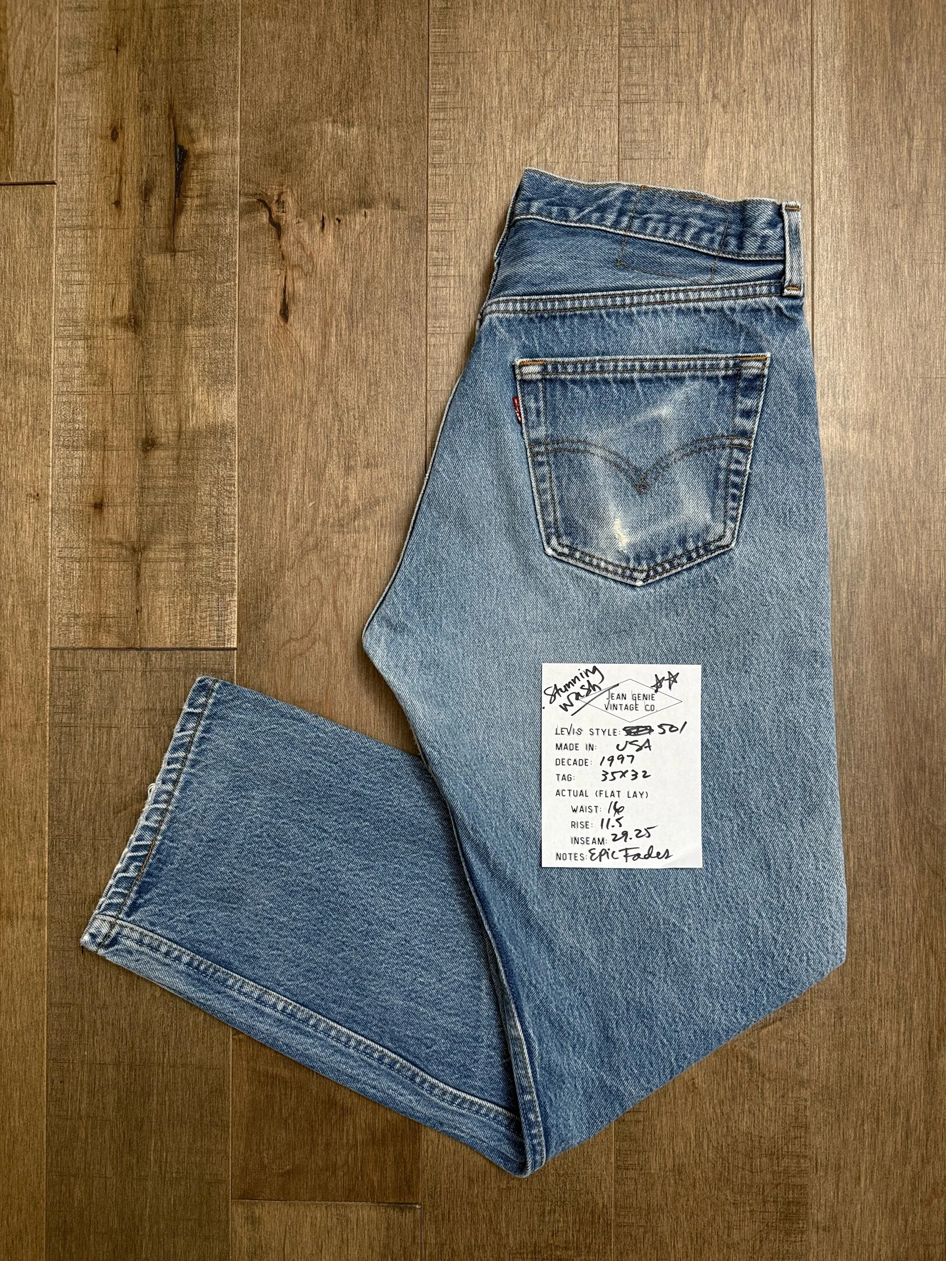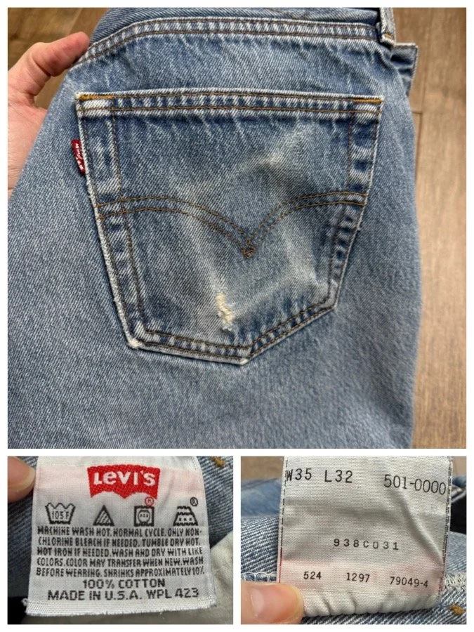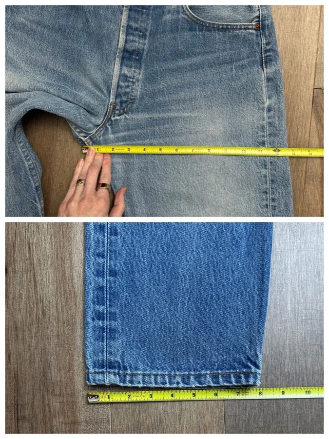 Sold as is. Keep in mind, vintage jeans are not new jeans. Every pair is at least 20 years old, most are older. This means they’ve been worn and likely have signs of wear - i.e. thinning areas, loose threads, signs of previous repair work, discolorations, faint (or not so faint stains), organic distressing, wear at the rivets, wear at the button holes. I do my best to describe these areas/signs of wear&tear, so please - before you buy - understand that you may receive your jeans and there will be signs of aging. Most buy vintage jeans wanting this, but if you want pristine new looking jeans, vintage likely isn’t for you. And that’s A-OK! Also note, the word “vintage” is not synonymous with super worn & faded. Vintage means over 20 years old. An item can be both vintage and still be new or like new condition.