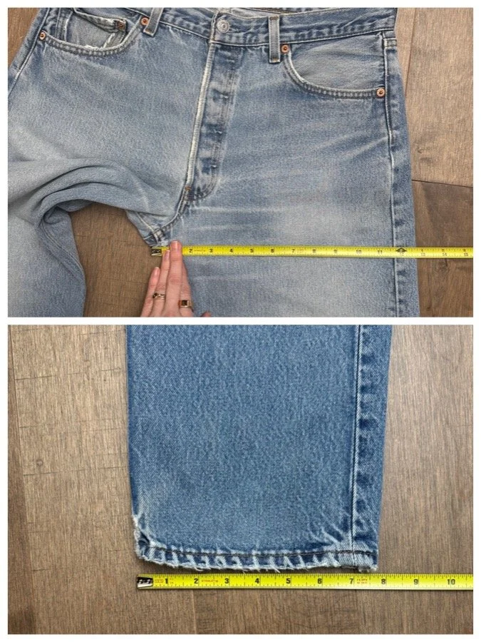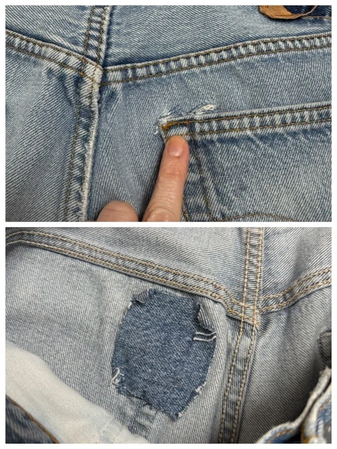 Sold as is. Keep in mind, vintage jeans are not new jeans. Every pair is at least 20 years old, most are older. This means they’ve been worn and likely have signs of wear - i.e. thinning areas, loose threads, signs of previous repair work, discolorations, faint (or not so faint stains), organic distressing, wear at the rivets, wear at the button holes. I do my best to describe these areas/signs of wear&tear, so please - before you buy - understand that you may receive your jeans and there will be signs of aging. Most buy vintage jeans wanting this, but if you want pristine new looking jeans, vintage likely isn’t for you. And that’s A-OK! Also note, the word “vintage” is not synonymous with super worn & faded. Vintage means over 20 years old. An item can be both vintage and still be new or like new condition.