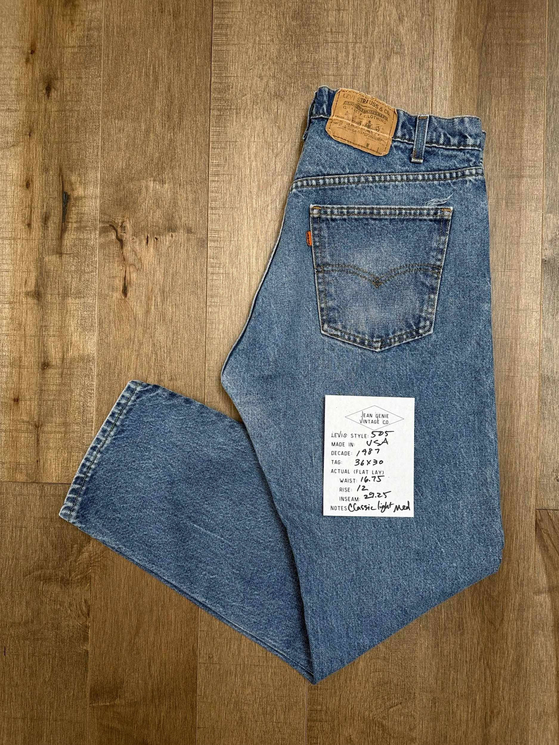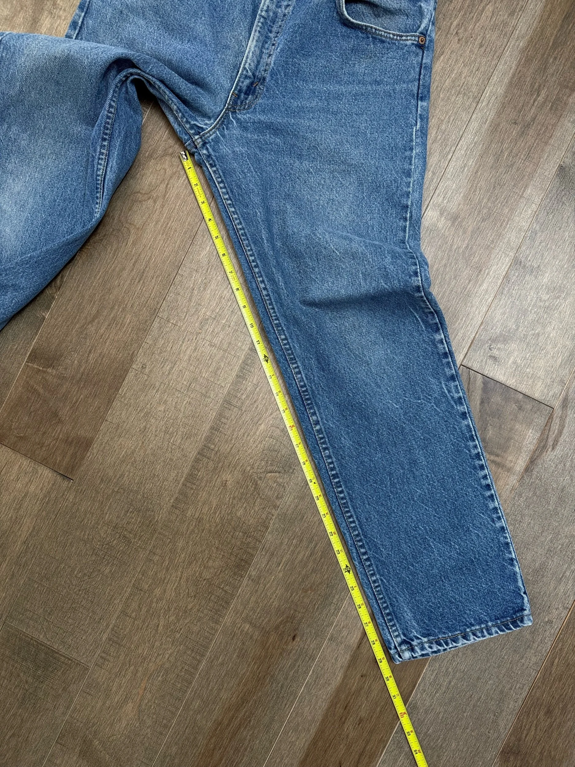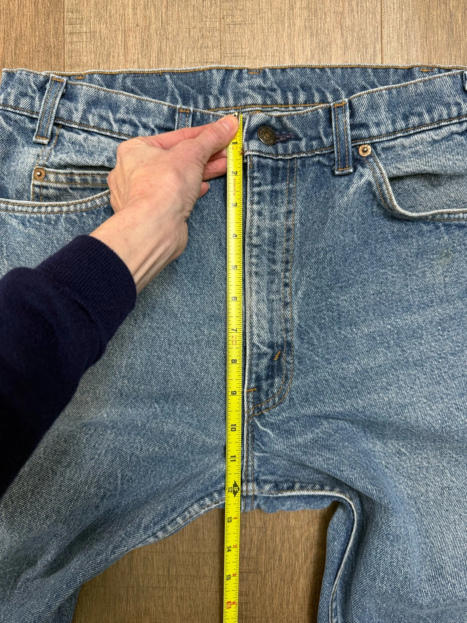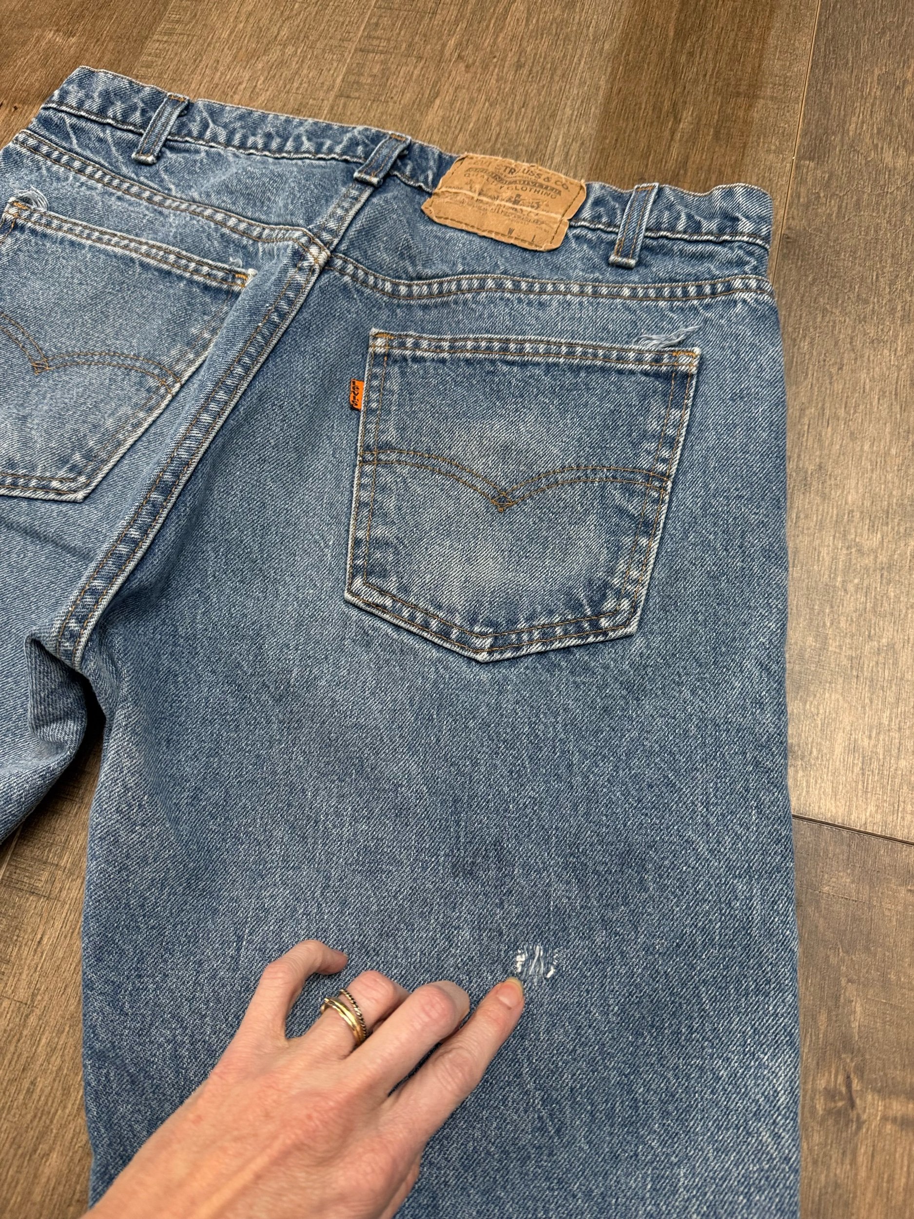 Keep in mind, vintage jeans are not new jeans. Every pair is at least 20 years old, most are older. This means they’ve been worn and likely have signs of wear - i.e. thinning areas, loose threads, signs of previous repair work, discolorations, faint (or not so faint stains), organic distressing, wear at the rivets, wear at the button holes. I do my best to describe these areas/signs of wear&tear, so please - before you buy - understand that you may receive your jeans and there will be signs of aging. Most buy vintage jeans wanting this, but if you want pristine new looking jeans, vintage likely isn’t for you. And that’s A-OK! Also note, the word “vintage” is not synonymous with super worn & faded. Vintage means over 20 years old. An item can be both vintage and still be new or like new condition.