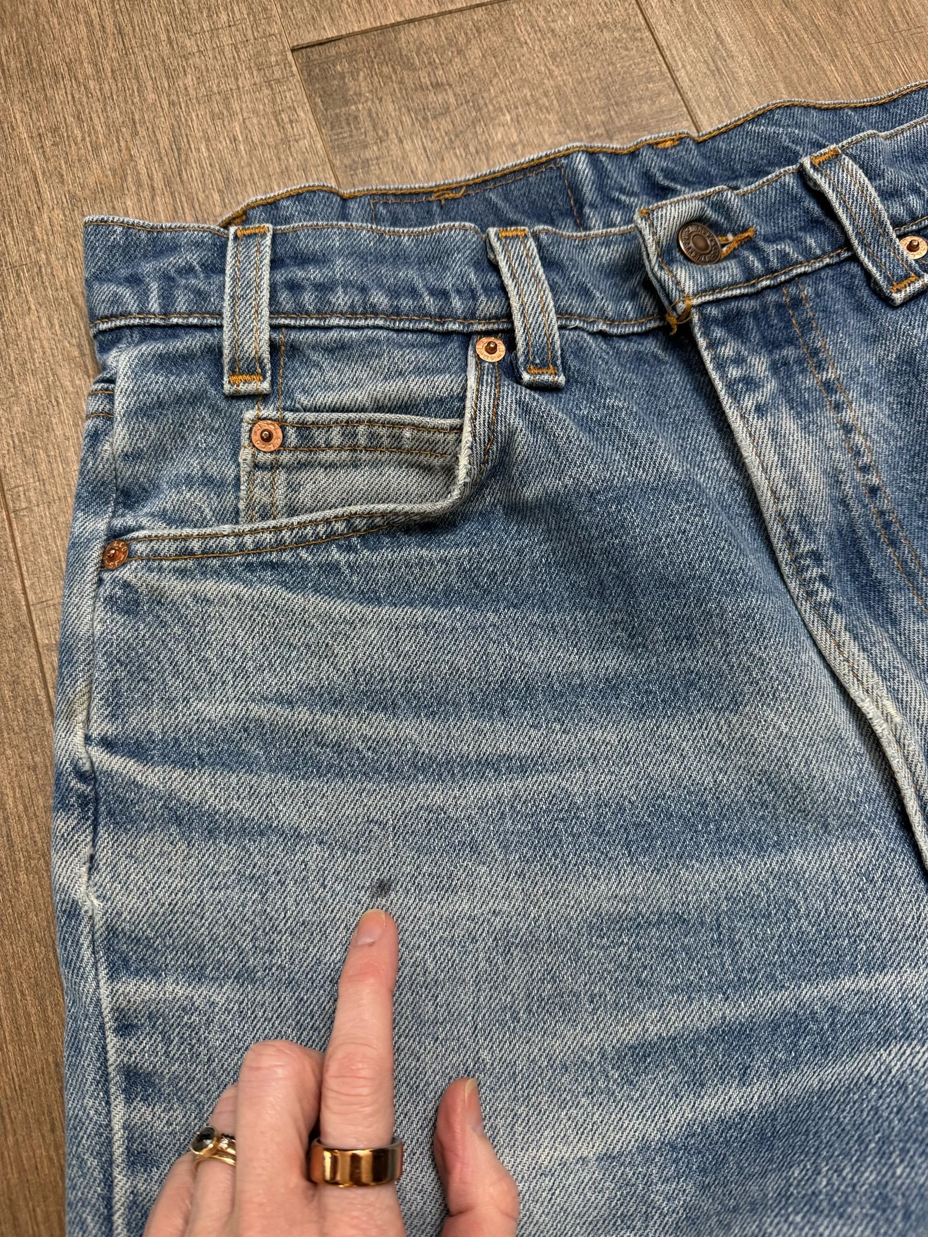 Keep in mind, vintage jeans are not new jeans. Every pair is at least 20 years old, most are older. This means they’ve been worn and likely have signs of wear - i.e. thinning areas, loose threads, signs of previous repair work, discolorations, faint (or not so faint stains), organic distressing, wear at the rivets, wear at the button holes. I do my best to describe these areas/signs of wear&tear, so please - before you buy - understand that you may receive your jeans and there will be signs of aging. Most buy vintage jeans wanting this, but if you want pristine new looking jeans, vintage likely isn’t for you. And that’s A-OK! Also note, the word “vintage” is not synonymous with super worn & faded. Vintage means over 20 years old. An item can be both vintage and still be new or like new condition.
