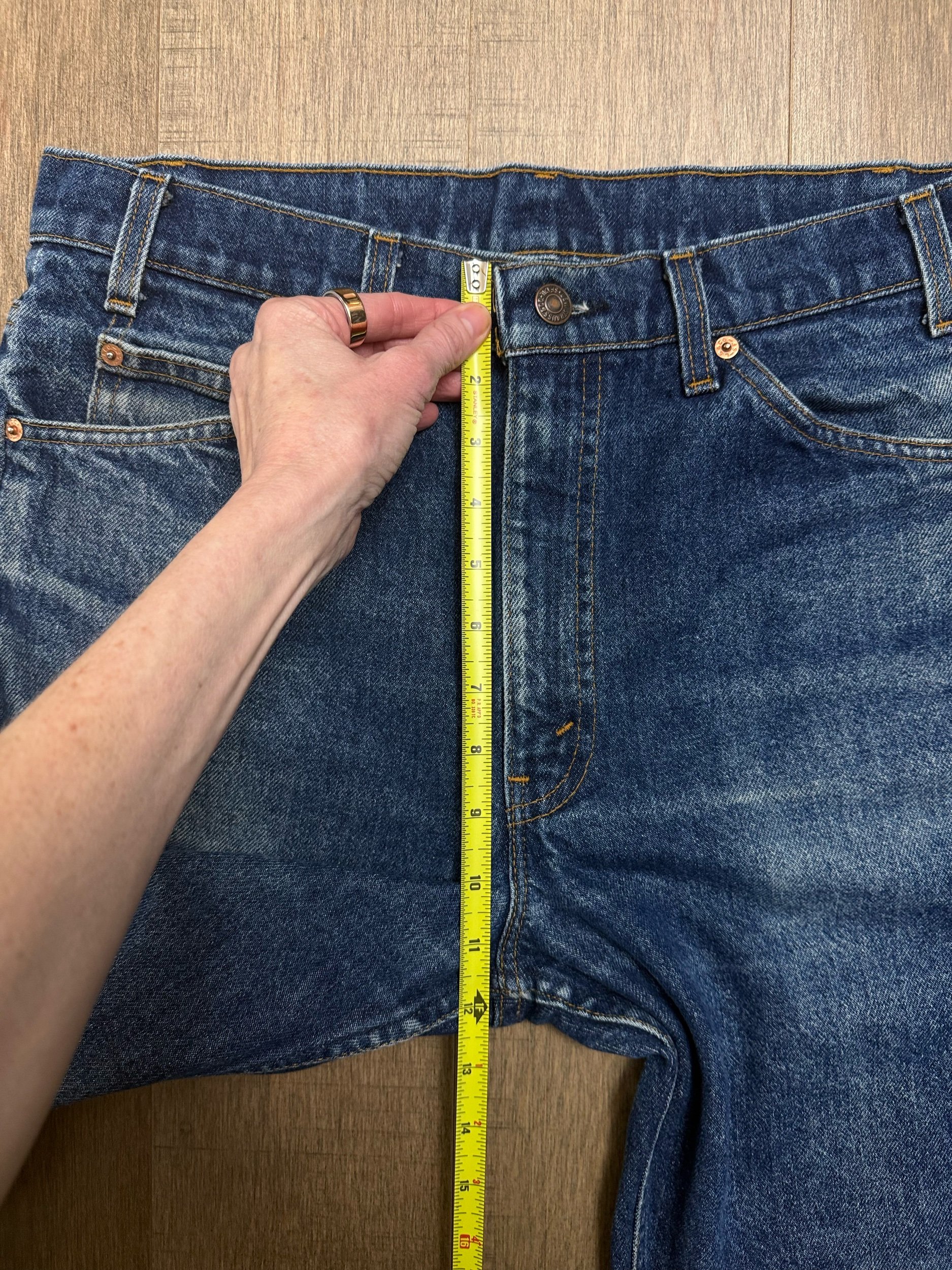 Keep in mind, vintage jeans are not new jeans. Every pair is at least 20 years old, most are older. This means they’ve been worn and likely have signs of wear - i.e. thinning areas, loose threads, signs of previous repair work, discolorations, faint (or not so faint stains), organic distressing, wear at the rivets, wear at the button holes. I do my best to describe these areas/signs of wear&tear, so please - before you buy - understand that you may receive your jeans and there will be signs of aging. Most buy vintage jeans wanting this, but if you want pristine new looking jeans, vintage likely isn’t for you. And that’s A-OK! Also note, the word “vintage” is not synonymous with super worn & faded. Vintage means over 20 years old. An item can be both vintage and still be new or like new condition.