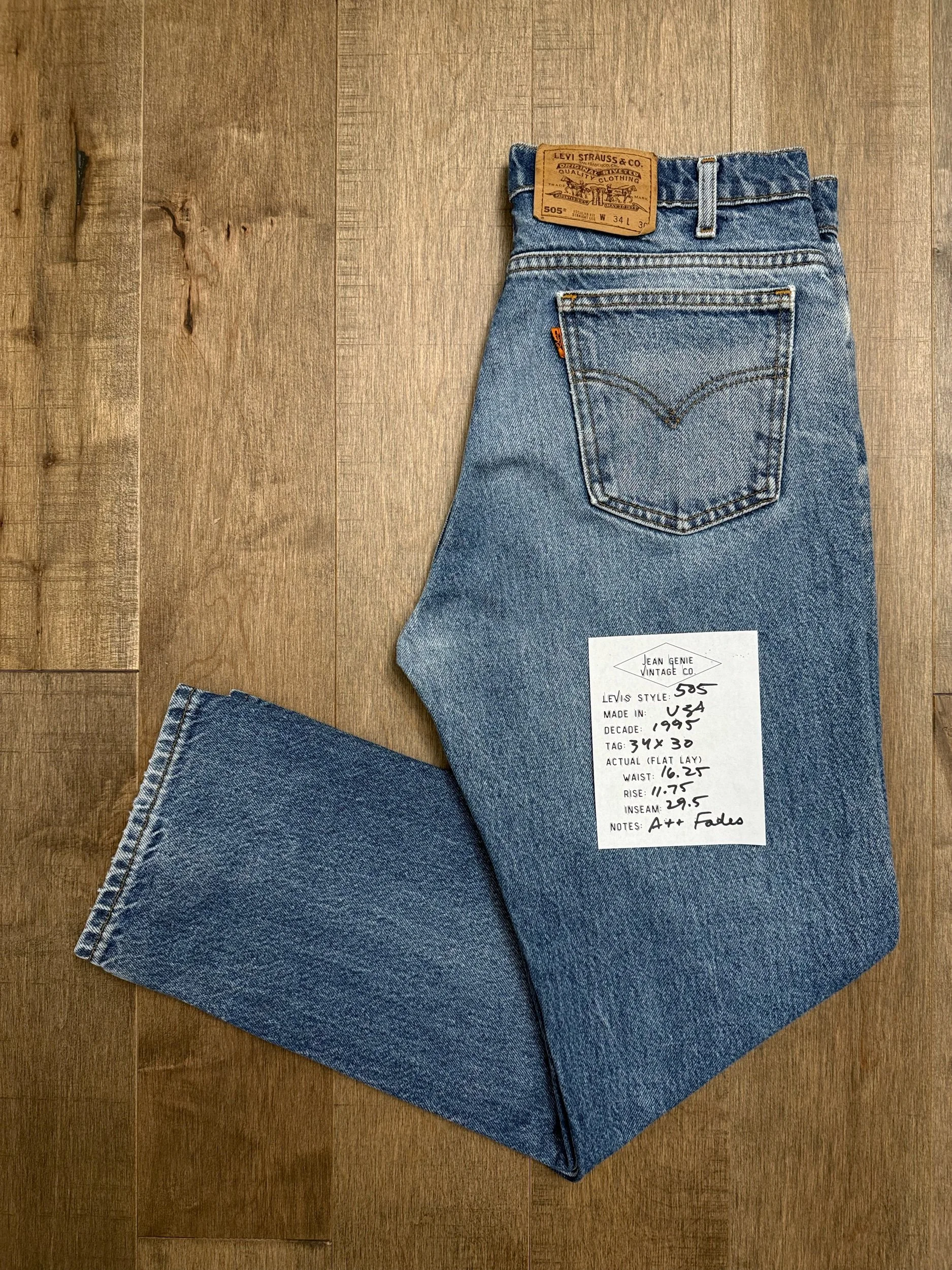 Keep in mind, vintage jeans are not new jeans. Every pair is at least 20 years old, most are older. This means they’ve been worn and likely have signs of wear - i.e. thinning areas, loose threads, signs of previous repair work, discolorations, faint (or not so faint stains), organic distressing, wear at the rivets, wear at the button holes. I do my best to describe these areas/signs of wear&tear, so please - before you buy - understand that you may receive your jeans and there will be signs of aging. Most buy vintage jeans wanting this, but if you want pristine new looking jeans, vintage likely isn’t for you. And that’s A-OK! Also note, the word “vintage” is not synonymous with super worn & faded. Vintage means over 20 years old. An item can be both vintage and still be new or like new condition.