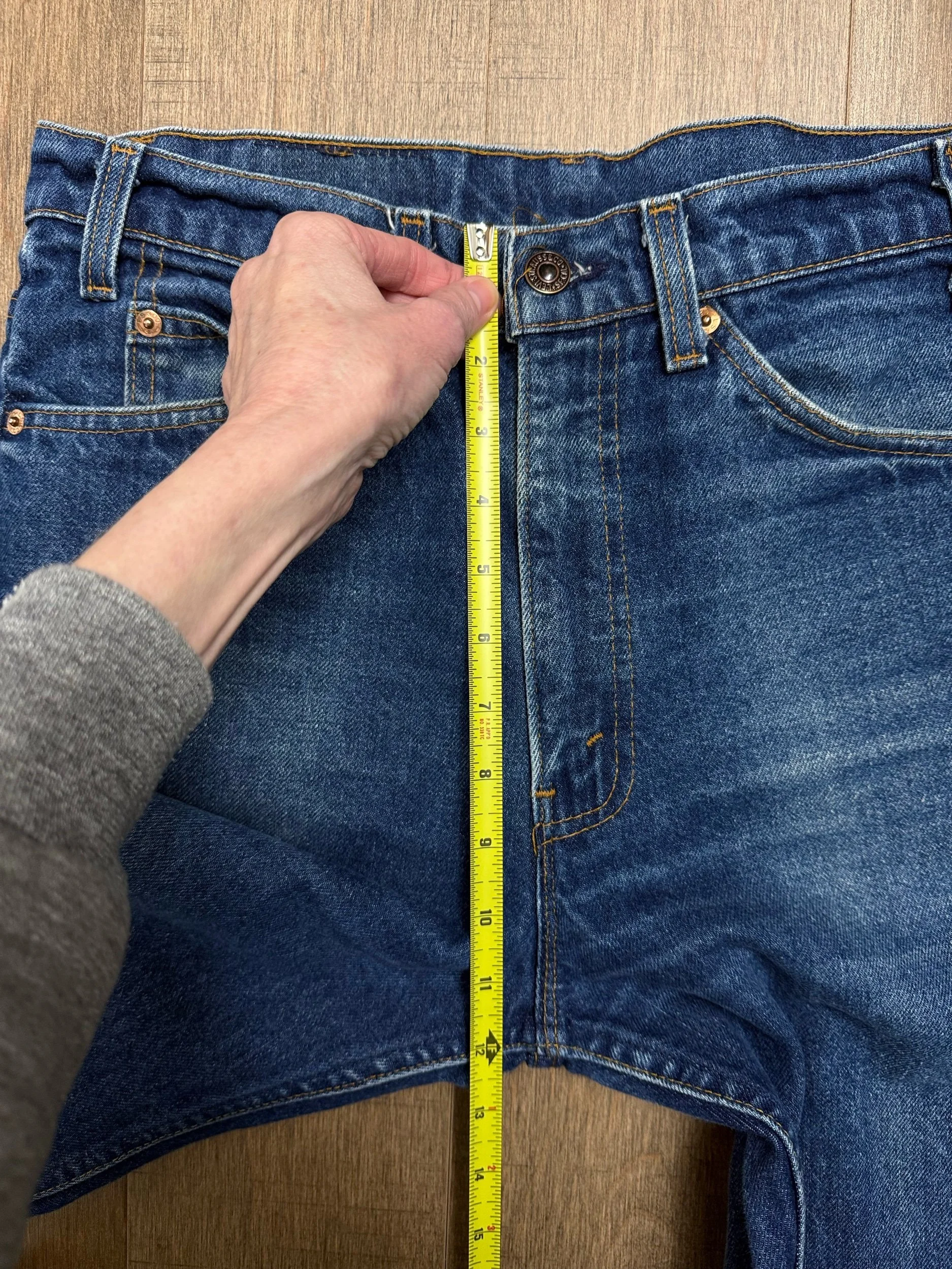 Keep in mind, vintage jeans are not new jeans. Every pair is at least 20 years old, most are older. This means they’ve been worn and likely have signs of wear - i.e. thinning areas, loose threads, signs of previous repair work, discolorations, faint (or not so faint stains), organic distressing, wear at the rivets, wear at the button holes. I do my best to describe these areas/signs of wear&tear, so please - before you buy - understand that you may receive your jeans and there will be signs of aging. Most buy vintage jeans wanting this, but if you want pristine new looking jeans, vintage likely isn’t for you. And that’s A-OK! Also note, the word “vintage” is not synonymous with super worn & faded. Vintage means over 20 years old. An item can be both vintage and still be new or like new condition.