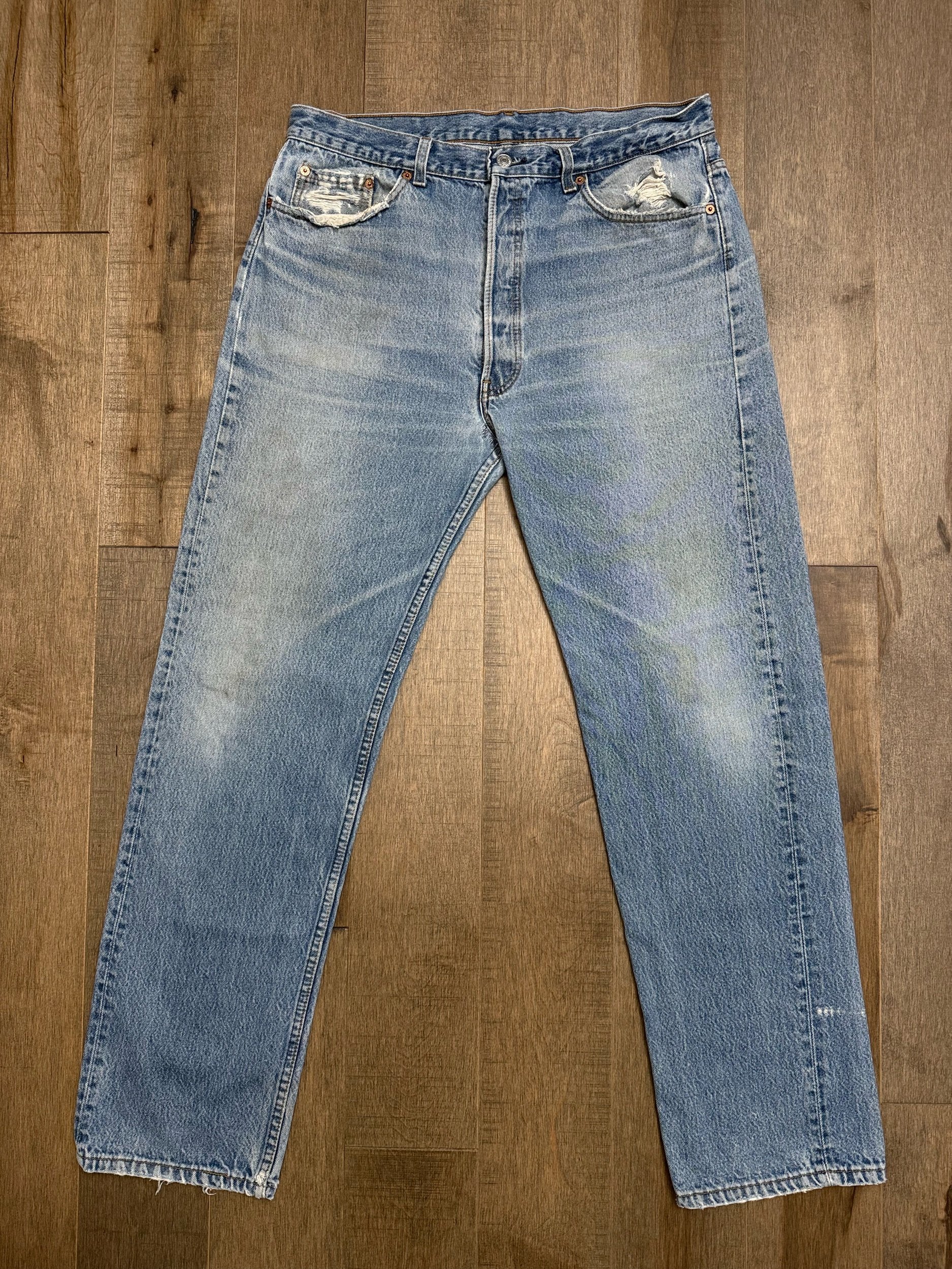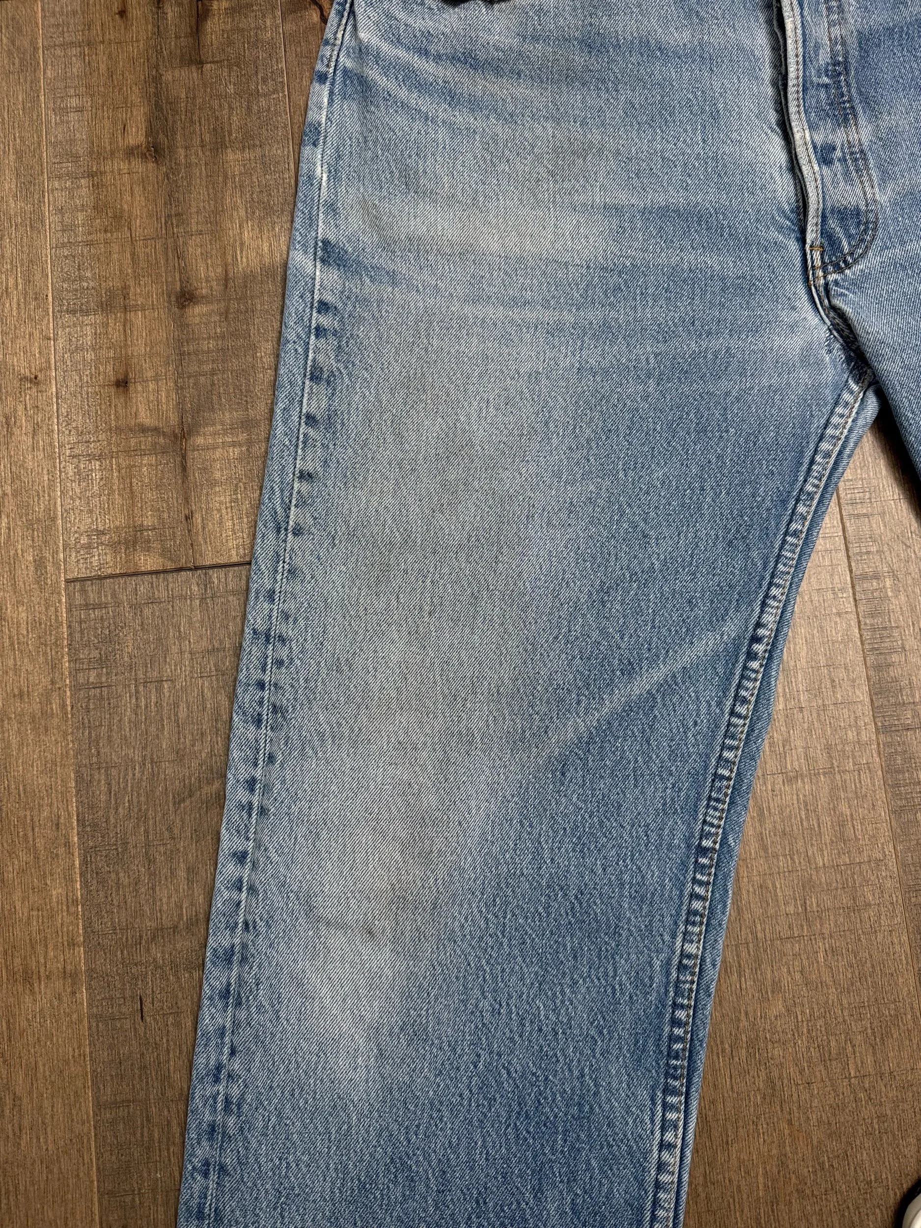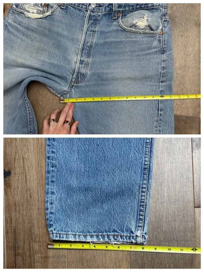 Sold as is. Keep in mind, vintage jeans are not new jeans. Every pair is at least 20 years old, most are older. This means they’ve been worn and likely have signs of wear - i.e. thinning areas, loose threads, signs of previous repair work, discolorations, faint (or not so faint stains), organic distressing, wear at the rivets, wear at the button holes. I do my best to describe these areas/signs of wear&tear, so please - before you buy - understand that you may receive your jeans and there will be signs of aging. Most buy vintage jeans wanting this, but if you want pristine new looking jeans, vintage likely isn’t for you. And that’s A-OK! Also note, the word “vintage” is not synonymous with super worn & faded. Vintage means over 20 years old. An item can be both vintage and still be new or like new condition.