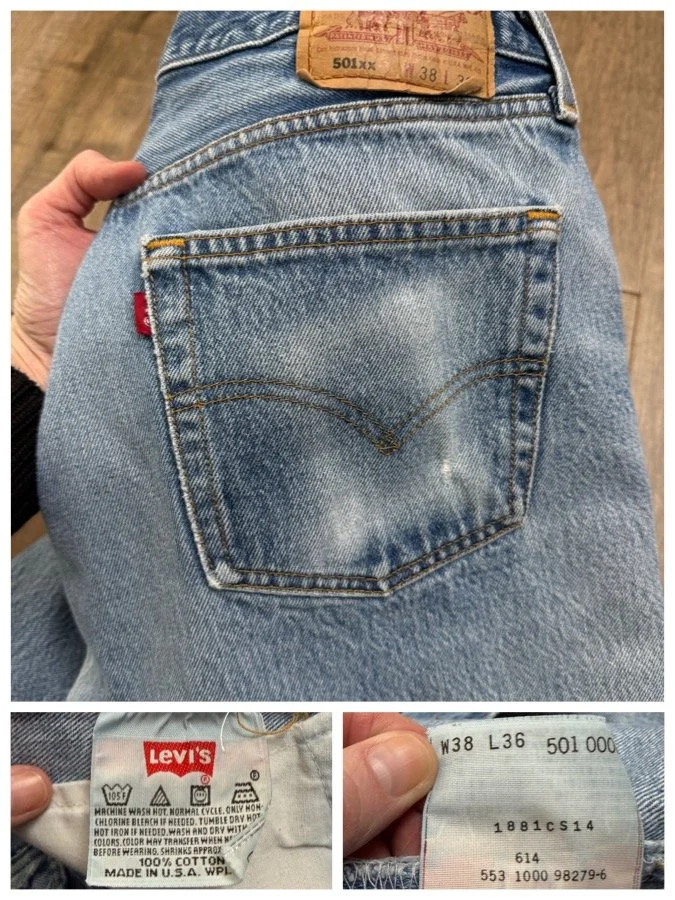 Sold as is. Keep in mind, vintage jeans are not new jeans. Every pair is at least 20 years old, most are older. This means they’ve been worn and likely have signs of wear - i.e. thinning areas, loose threads, signs of previous repair work, discolorations, faint (or not so faint stains), organic distressing, wear at the rivets, wear at the button holes. I do my best to describe these areas/signs of wear&tear, so please - before you buy - understand that you may receive your jeans and there will be signs of aging. Most buy vintage jeans wanting this, but if you want pristine new looking jeans, vintage likely isn’t for you. And that’s A-OK! Also note, the word “vintage” is not synonymous with super worn & faded. Vintage means over 20 years old. An item can be both vintage and still be new or like new condition.