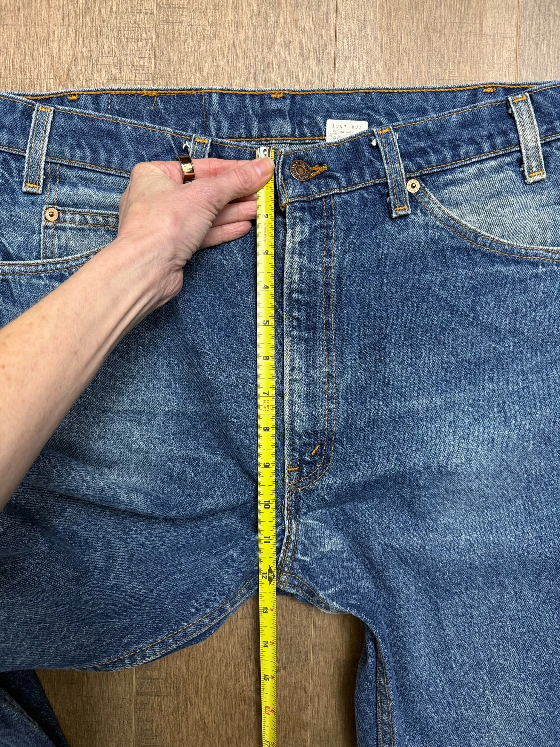 Keep in mind, vintage jeans are not new jeans. Every pair is at least 20 years old, most are older. This means they’ve been worn and likely have signs of wear - i.e. thinning areas, loose threads, signs of previous repair work, discolorations, faint (or not so faint stains), organic distressing, wear at the rivets, wear at the button holes. I do my best to describe these areas/signs of wear&tear, so please - before you buy - understand that you may receive your jeans and there will be signs of aging. Most buy vintage jeans wanting this, but if you want pristine new looking jeans, vintage likely isn’t for you. And that’s A-OK! Also note, the word “vintage” is not synonymous with super worn & faded. Vintage means over 20 years old. An item can be both vintage and still be new or like new condition.