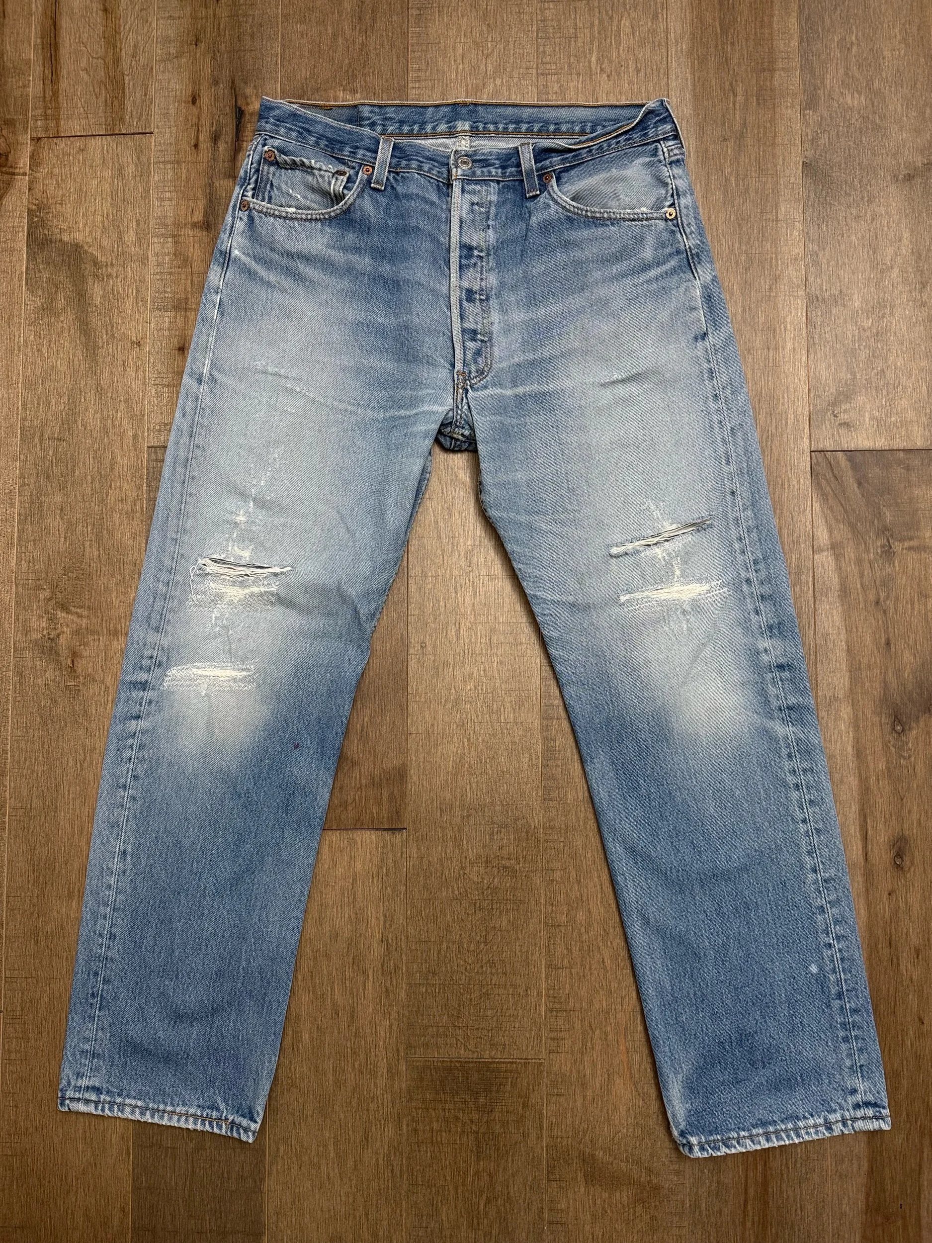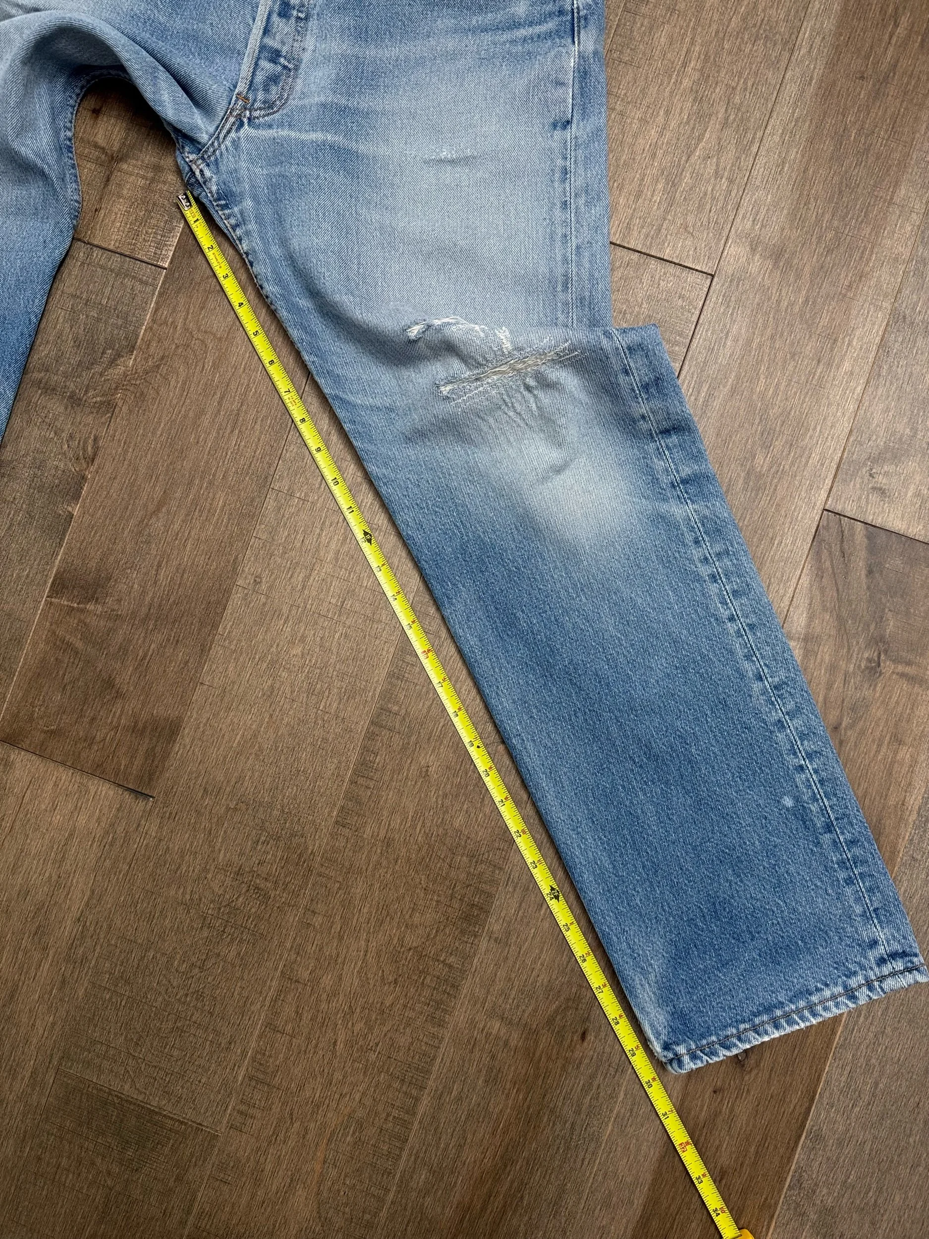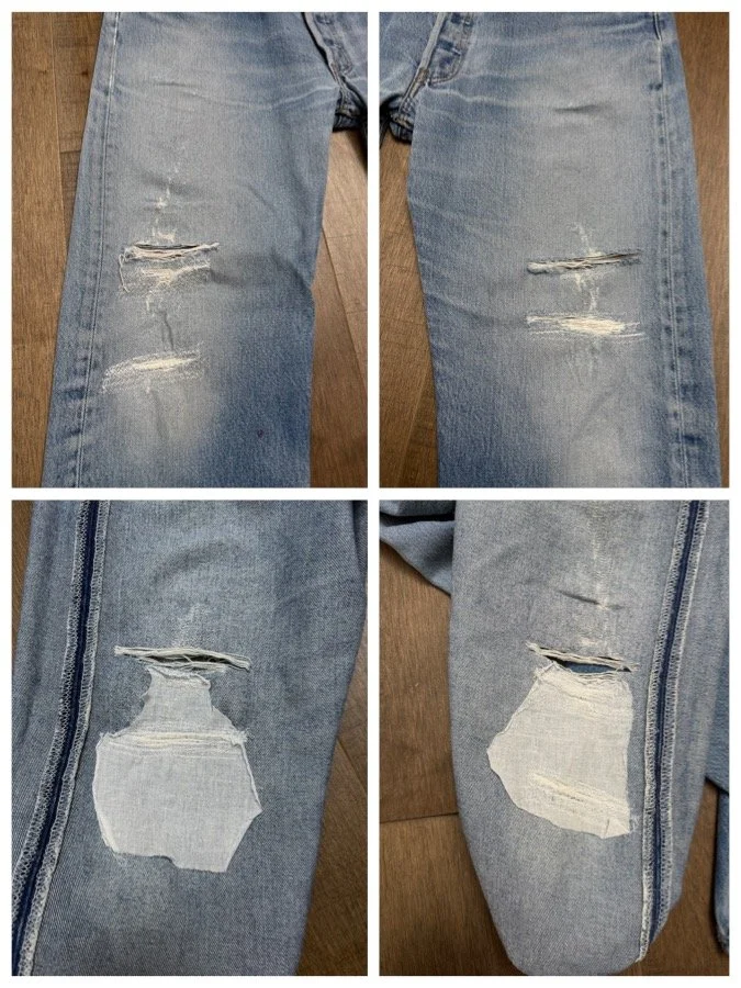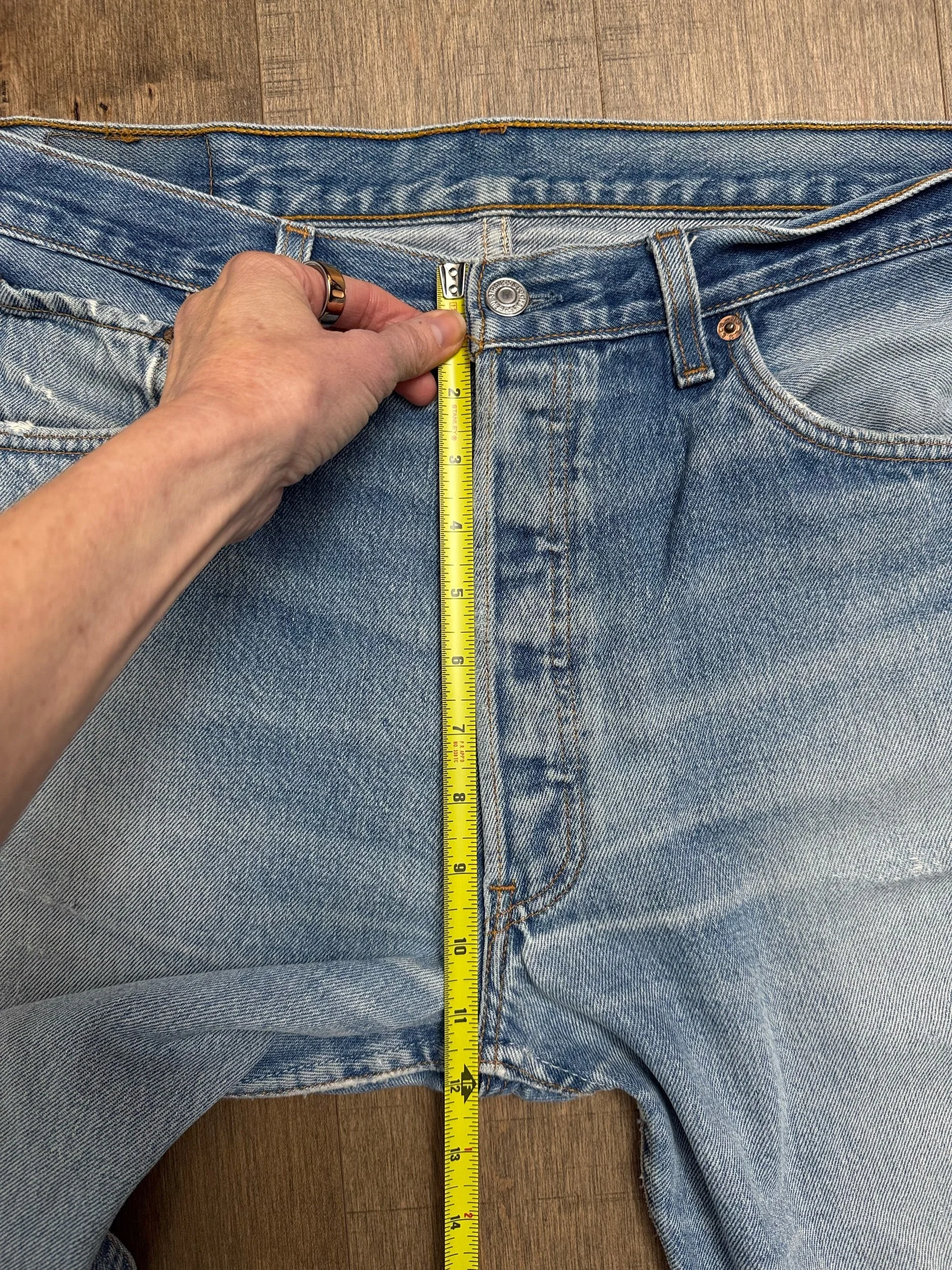 Sold as is. Keep in mind, vintage jeans are not new jeans. Every pair is at least 20 years old, most are older. This means they’ve been worn and likely have signs of wear - i.e. thinning areas, loose threads, signs of previous repair work, discolorations, faint (or not so faint stains), organic distressing, wear at the rivets, wear at the button holes. I do my best to describe these areas/signs of wear&tear, so please - before you buy - understand that you may receive your jeans and there will be signs of aging. Most buy vintage jeans wanting this, but if you want pristine new looking jeans, vintage likely isn’t for you. And that’s A-OK! Also note, the word “vintage” is not synonymous with super worn & faded. Vintage means over 20 years old. An item can be both vintage and still be new or like new condition.