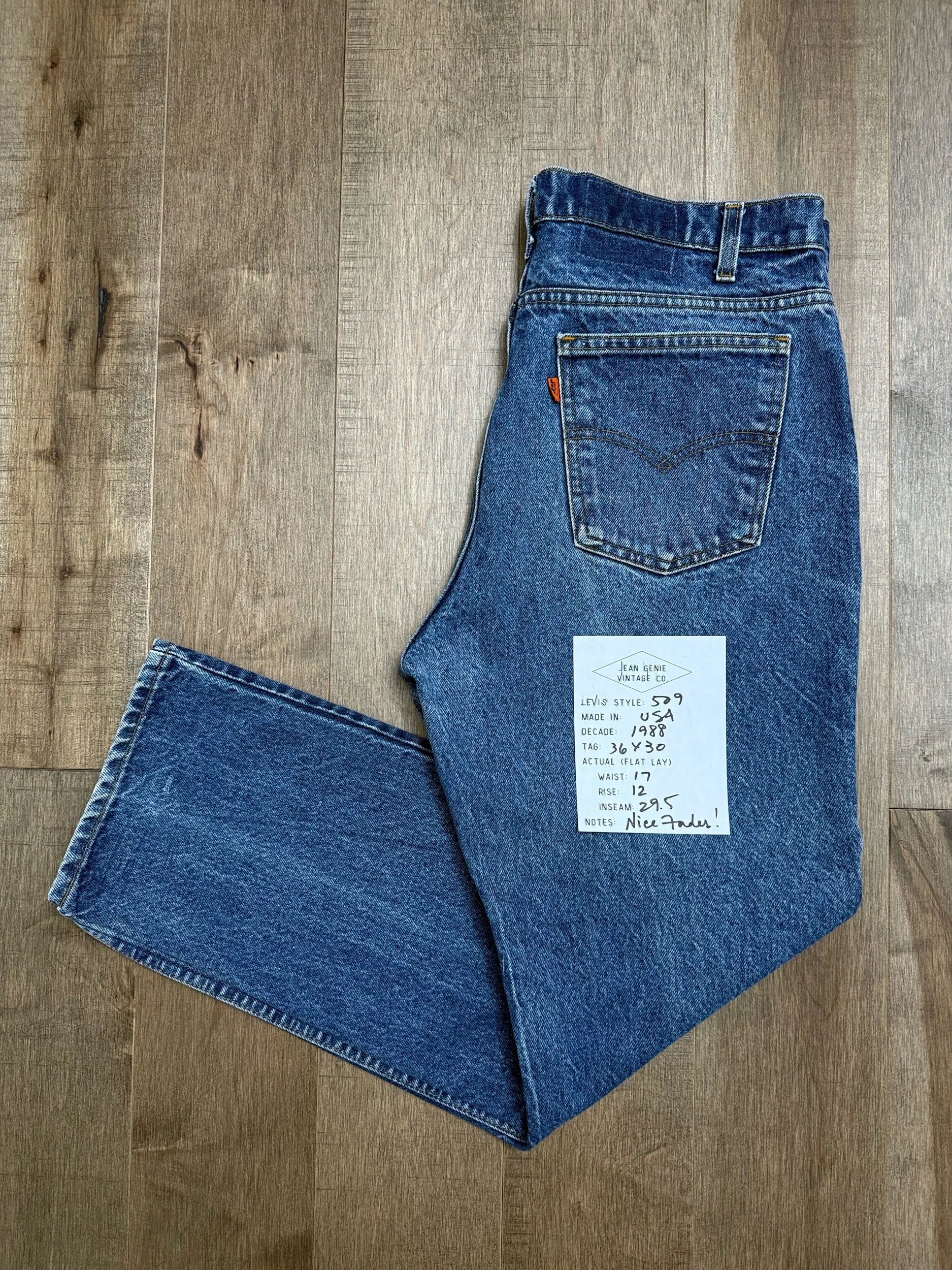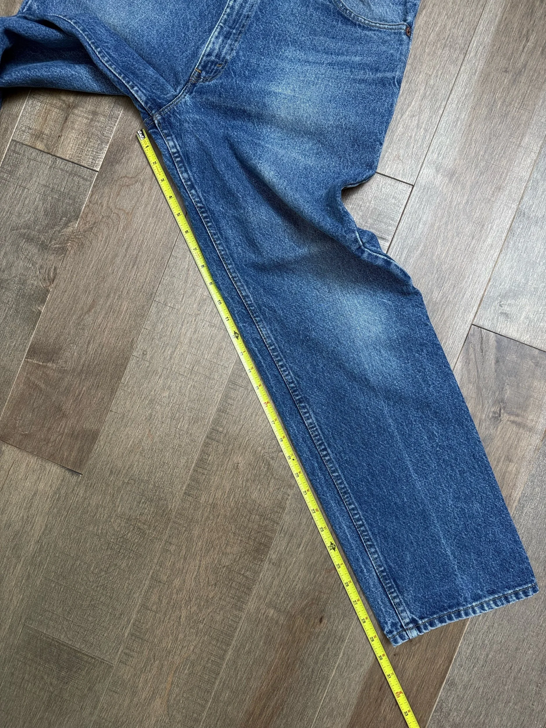 Keep in mind, vintage jeans are not new jeans. Every pair is at least 20 years old, most are older. This means they’ve been worn and likely have signs of wear - i.e. thinning areas, loose threads, signs of previous repair work, discolorations, faint (or not so faint stains), organic distressing, wear at the rivets, wear at the button holes. I do my best to describe these areas/signs of wear&tear, so please - before you buy - understand that you may receive your jeans and there will be signs of aging. Most buy vintage jeans wanting this, but if you want pristine new looking jeans, vintage likely isn’t for you. And that’s A-OK! Also note, the word “vintage” is not synonymous with super worn & faded. Vintage means over 20 years old. An item can be both vintage and still be new or like new condition.