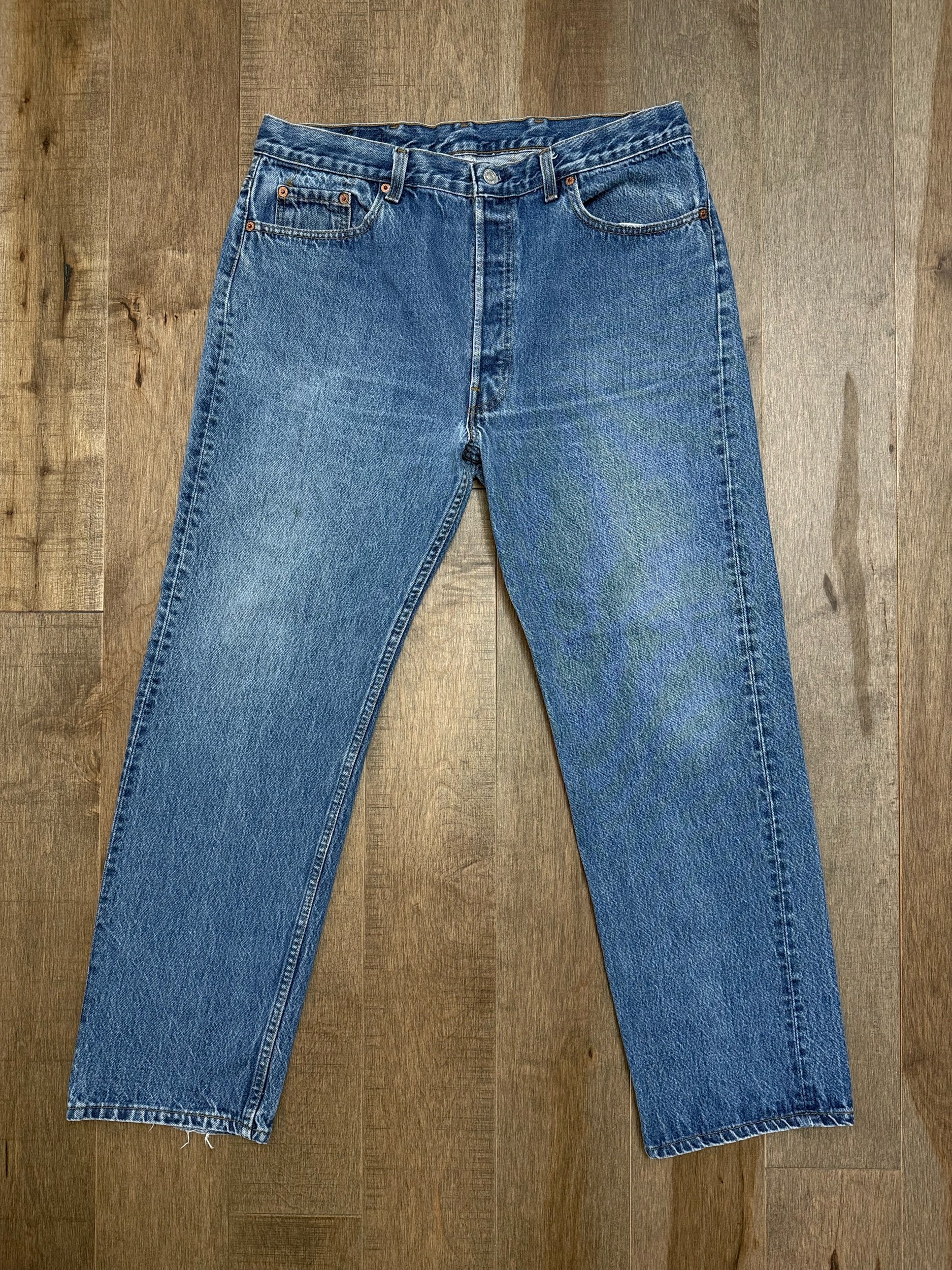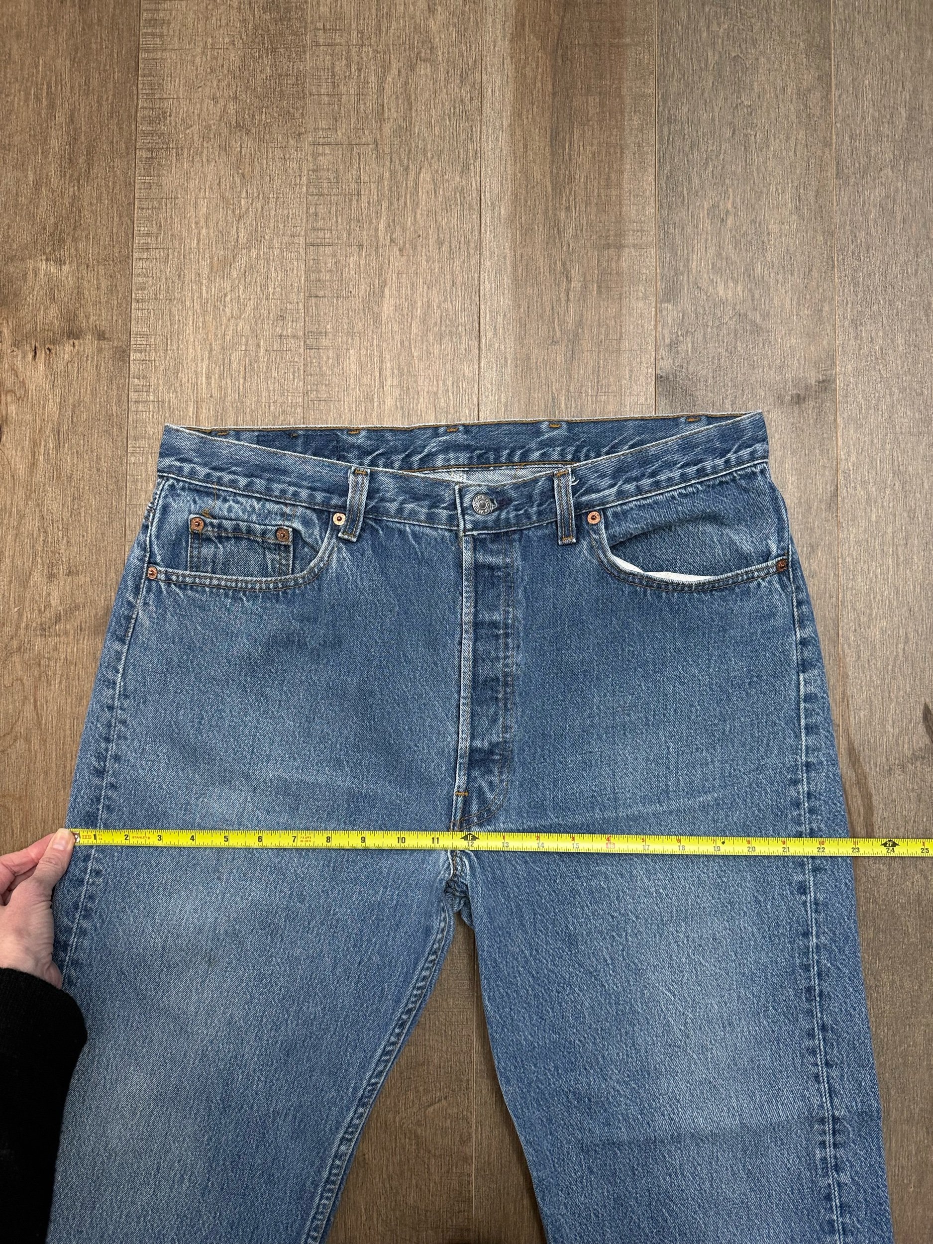Sold as is. Keep in mind, vintage jeans are not new jeans. Every pair is at least 20 years old, most are older. This means they’ve been worn and likely have signs of wear - i.e. thinning areas, loose threads, signs of previous repair work, discolorations, faint (or not so faint stains), organic distressing, wear at the rivets, wear at the button holes. I do my best to describe these areas/signs of wear&tear, so please - before you buy - understand that you may receive your jeans and there will be signs of aging. Most buy vintage jeans wanting this, but if you want pristine new looking jeans, vintage likely isn’t for you. And that’s A-OK! Also note, the word “vintage” is not synonymous with super worn & faded. Vintage means over 20 years old. An item can be both vintage and still be new or like new condition.