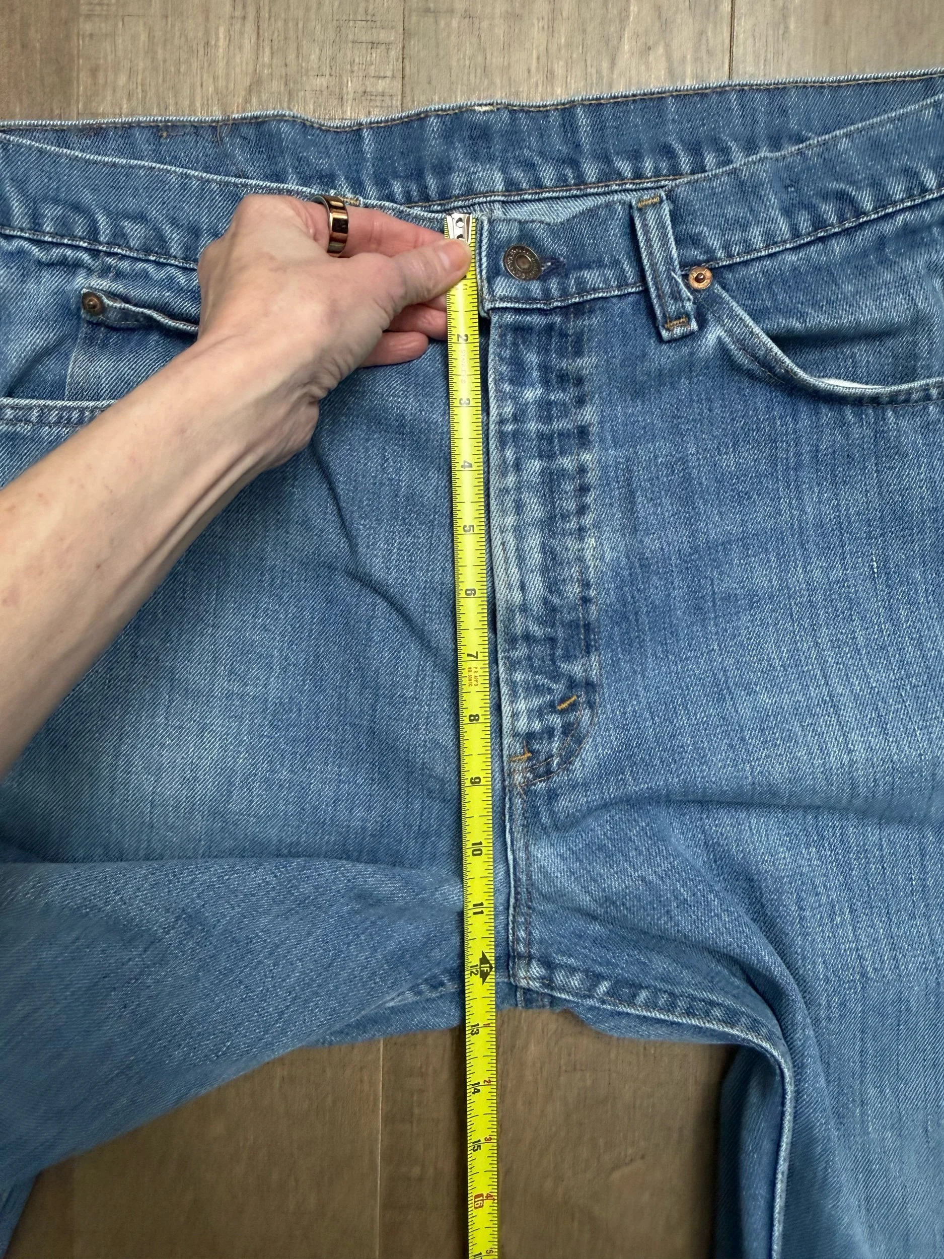 Keep in mind, vintage jeans are not new jeans. Every pair is at least 20 years old, most are older. This means they’ve been worn and likely have signs of wear - i.e. thinning areas, loose threads, signs of previous repair work, discolorations, faint (or not so faint stains), organic distressing, wear at the rivets, wear at the button holes. I do my best to describe these areas/signs of wear&tear, so please - before you buy - understand that you may receive your jeans and there will be signs of aging. Most buy vintage jeans wanting this, but if you want pristine new looking jeans, vintage likely isn’t for you. And that’s A-OK! Also note, the word “vintage” is not synonymous with super worn & faded. Vintage means over 20 years old. An item can be both vintage and still be new or like new condition.