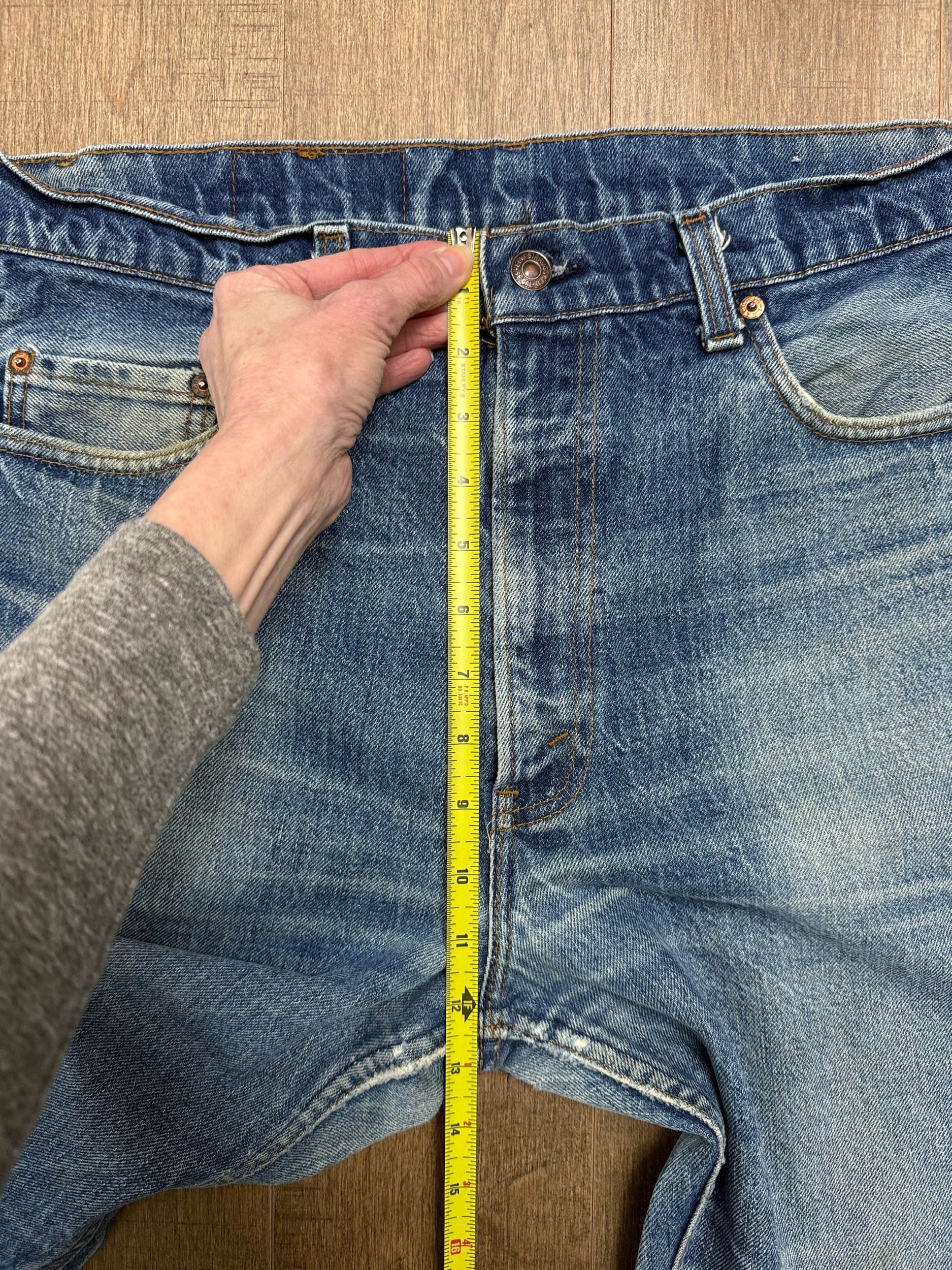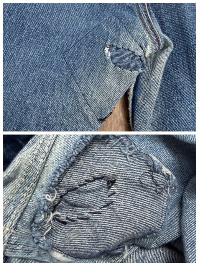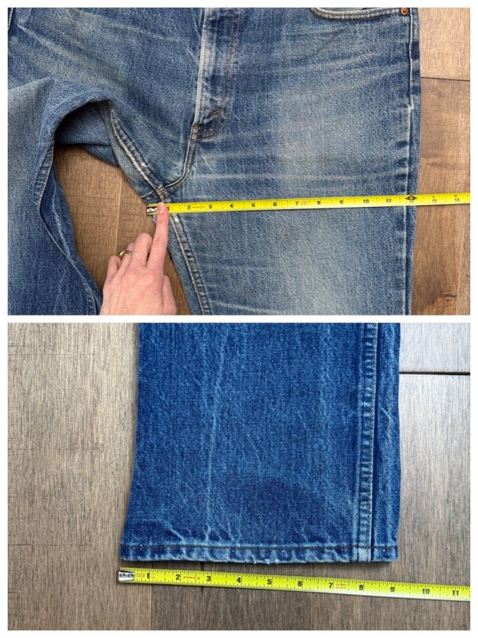 Keep in mind, vintage jeans are not new jeans. Every pair is at least 20 years old, most are older. This means they’ve been worn and likely have signs of wear - i.e. thinning areas, loose threads, signs of previous repair work, discolorations, faint (or not so faint stains), organic distressing, wear at the rivets, wear at the button holes. I do my best to describe these areas/signs of wear&tear, so please - before you buy - understand that you may receive your jeans and there will be signs of aging. Most buy vintage jeans wanting this, but if you want pristine new looking jeans, vintage likely isn’t for you. And that’s A-OK! Also note, the word “vintage” is not synonymous with super worn & faded. Vintage means over 20 years old. An item can be both vintage and still be new or like new condition.